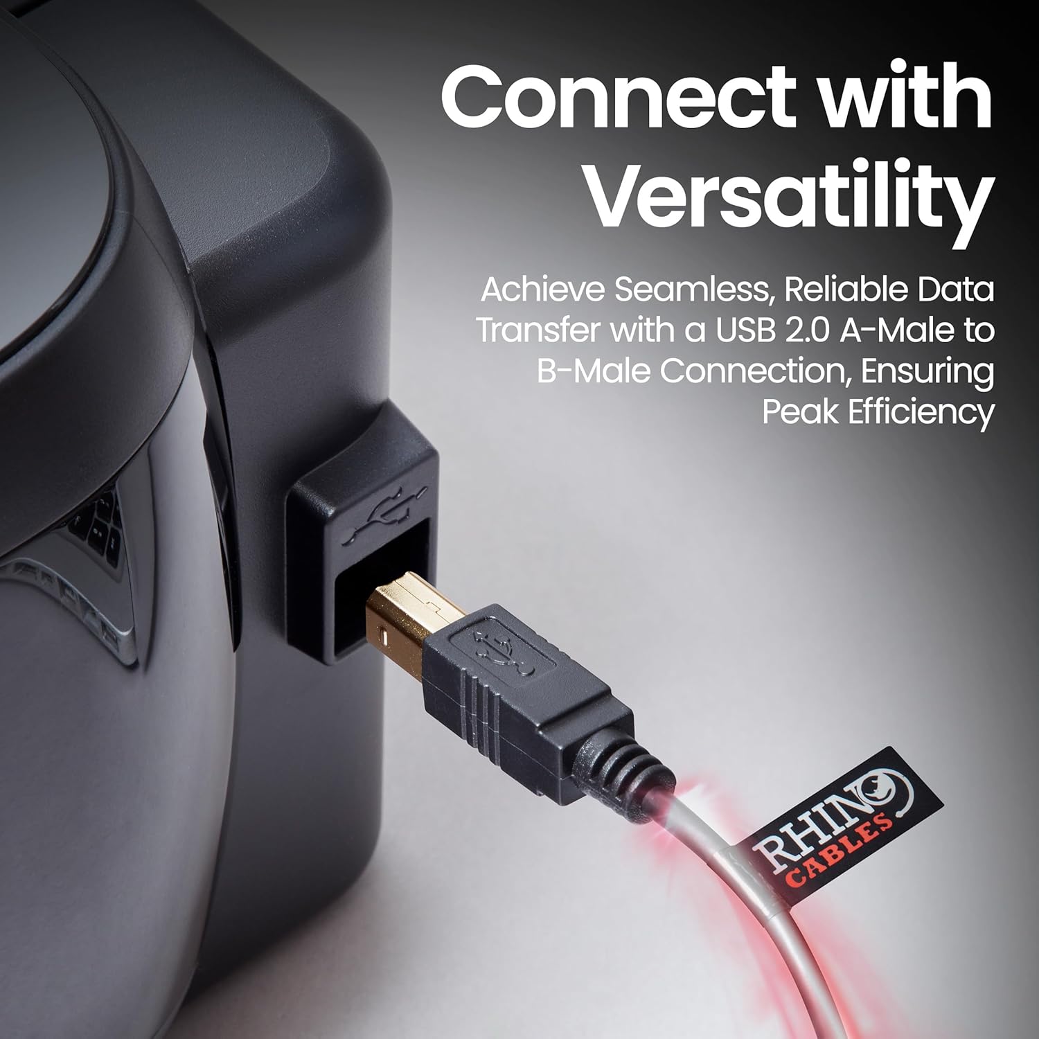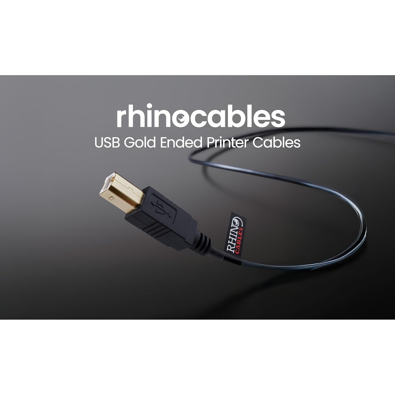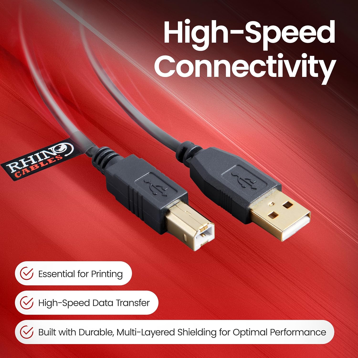 rhinocables USB 2.0 Printer Cable | Gold Connectors, High-Speed 480 Mbps Data Transfer | Multi-Shielded A-Male to B-Male | Universal Compatibility for Printers & External Hard Drives (50cm,Black)