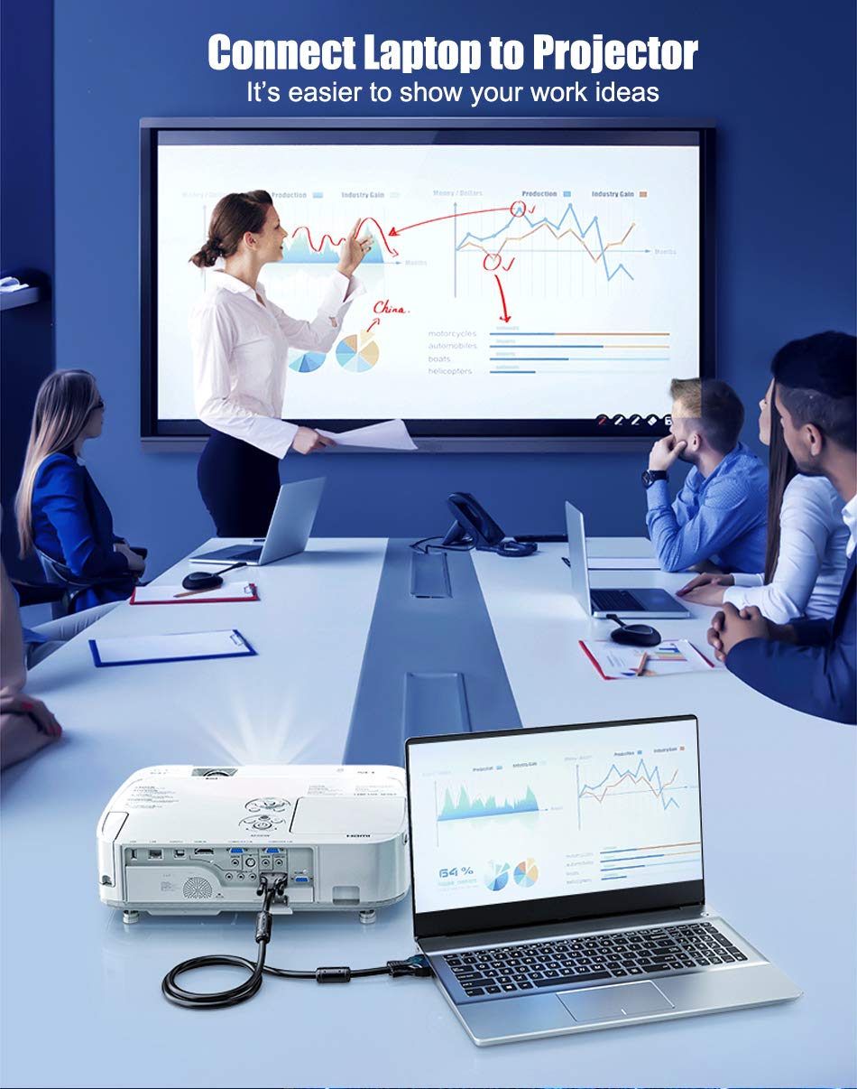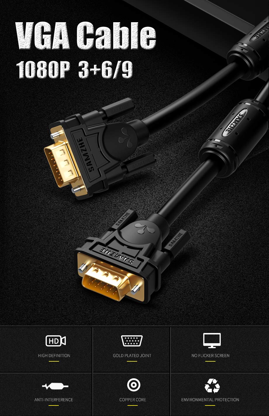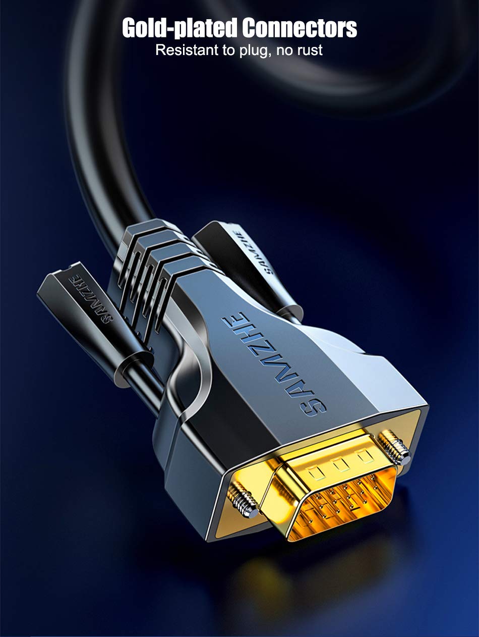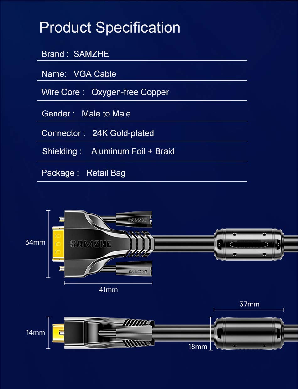 SAMZHE VGA Cable, VGA to VGA Cable Male to Male Gold Plated Connector HD 1080P Video Coaxial Monitor Lead with Ferrite Cores Compatible for PC, Projectors, HDTVs, Displays Laptop, DVD