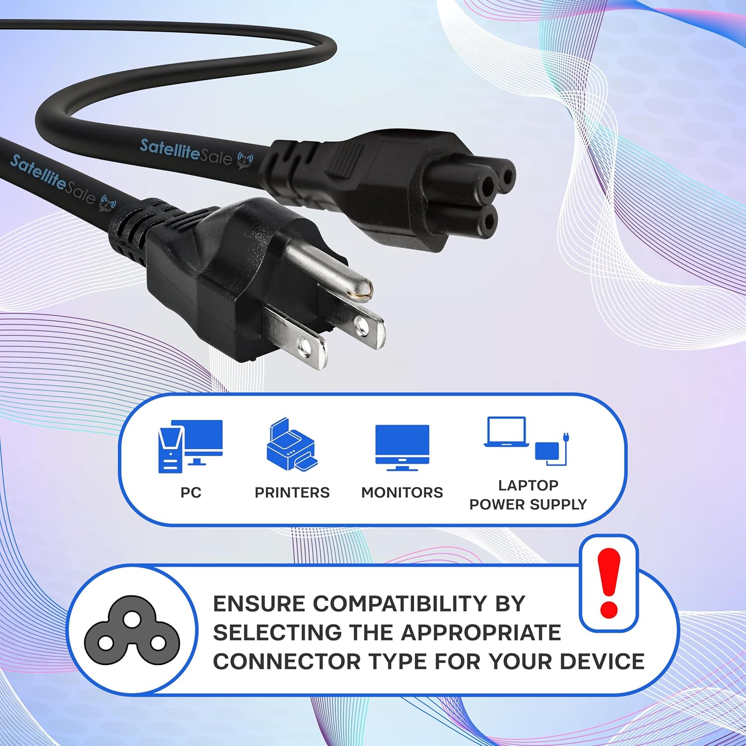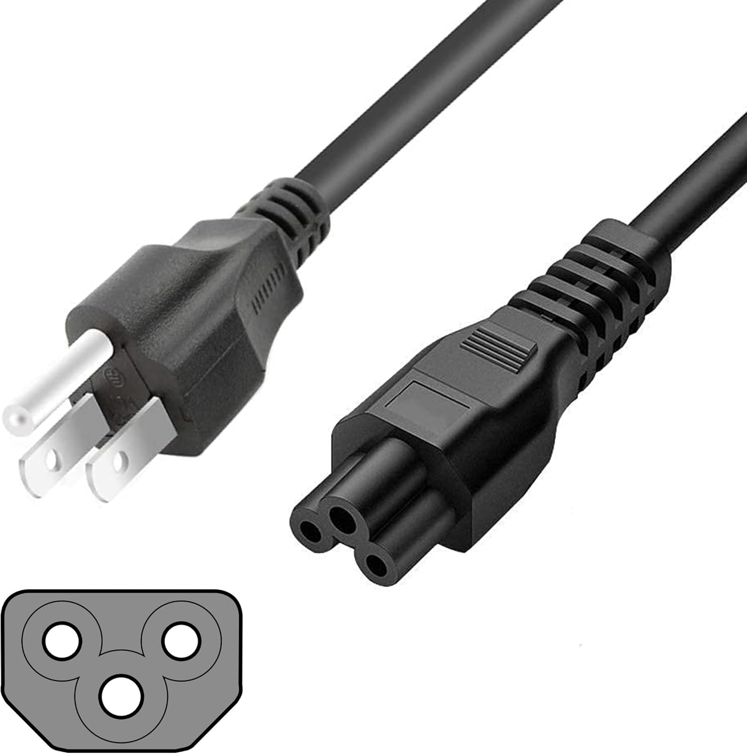 SatelliteSale Universal Heavy Duty Computer Power Cable Male NEMA 5-15P to Female IEC C5 Black PVC Cord 6 feet