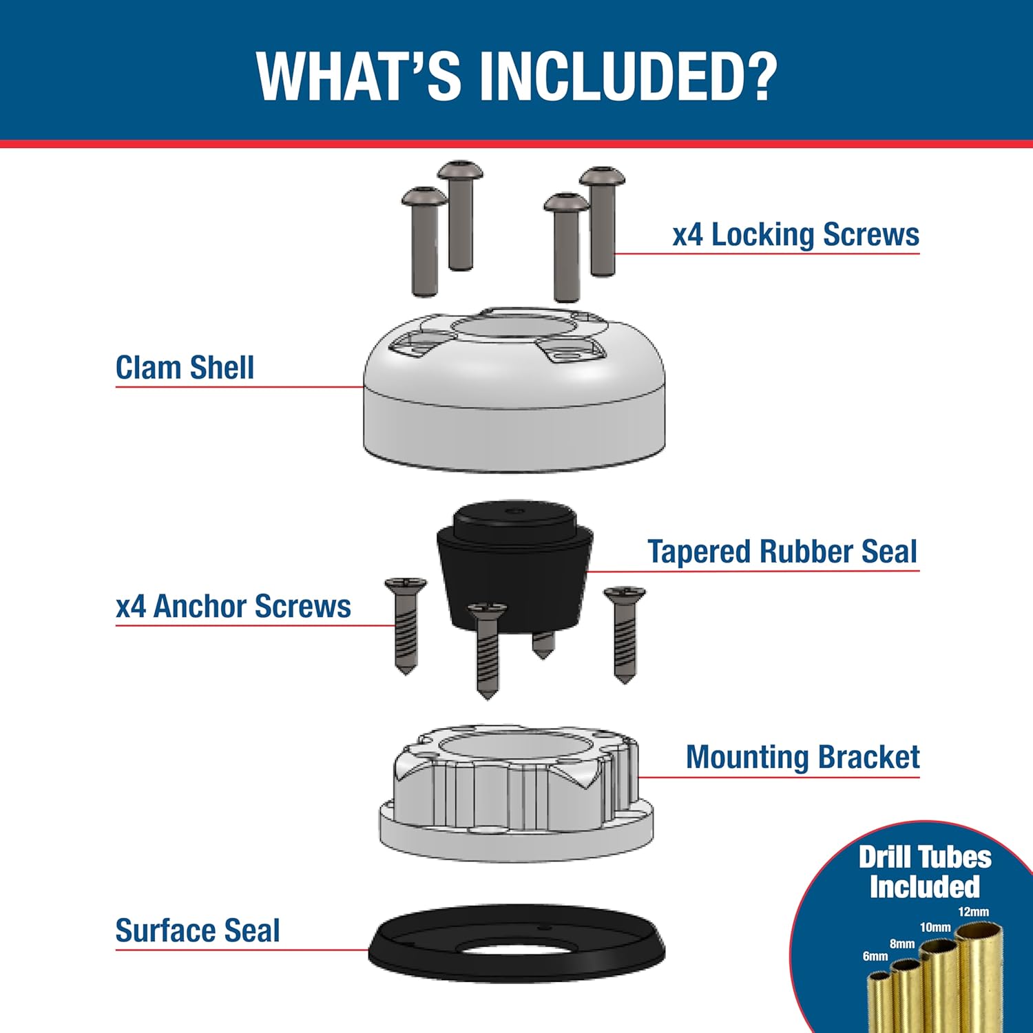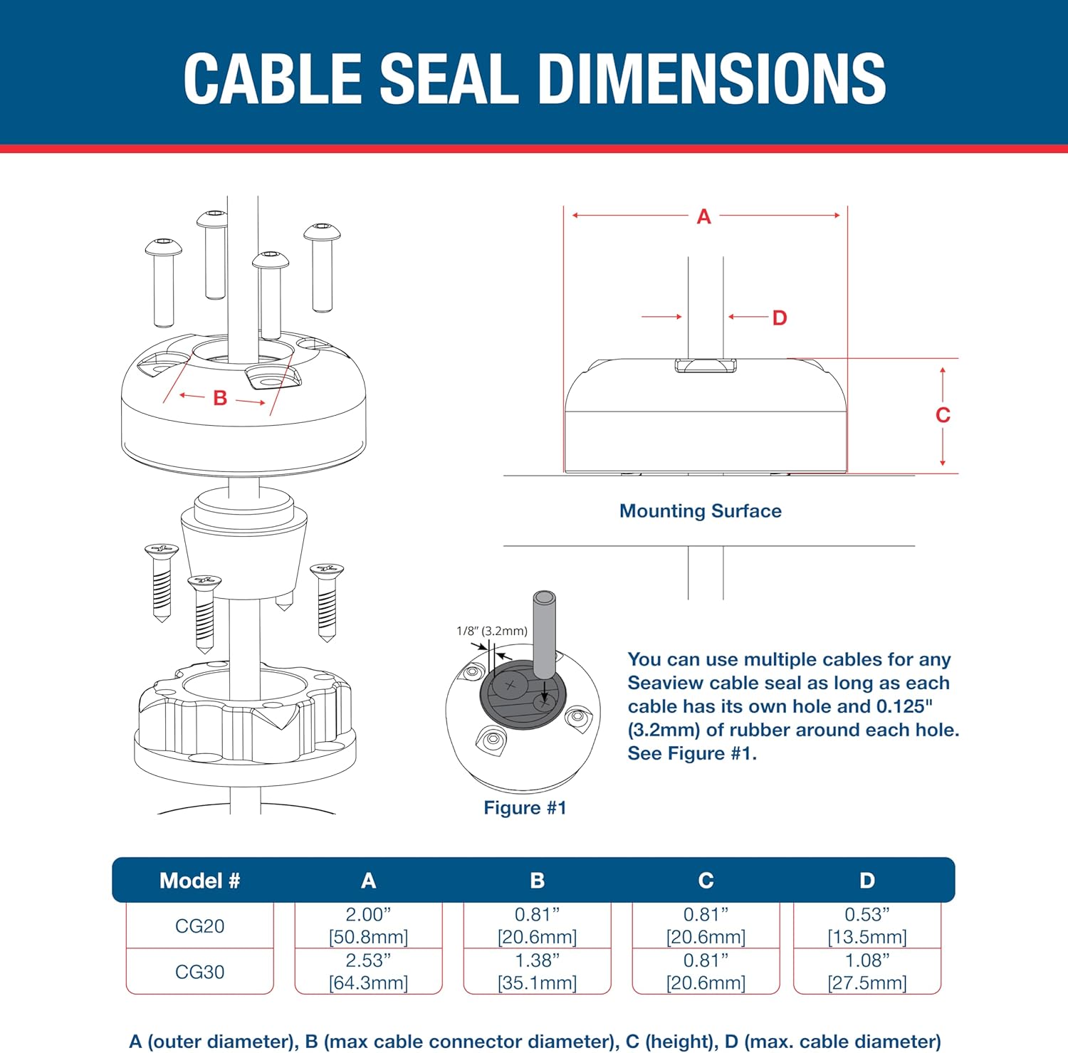 SEAVIEW | Round Cable Gland | Marine Grade Waterproof Cable Pass Through Cable Seal | CG20PG – Grey Plastic