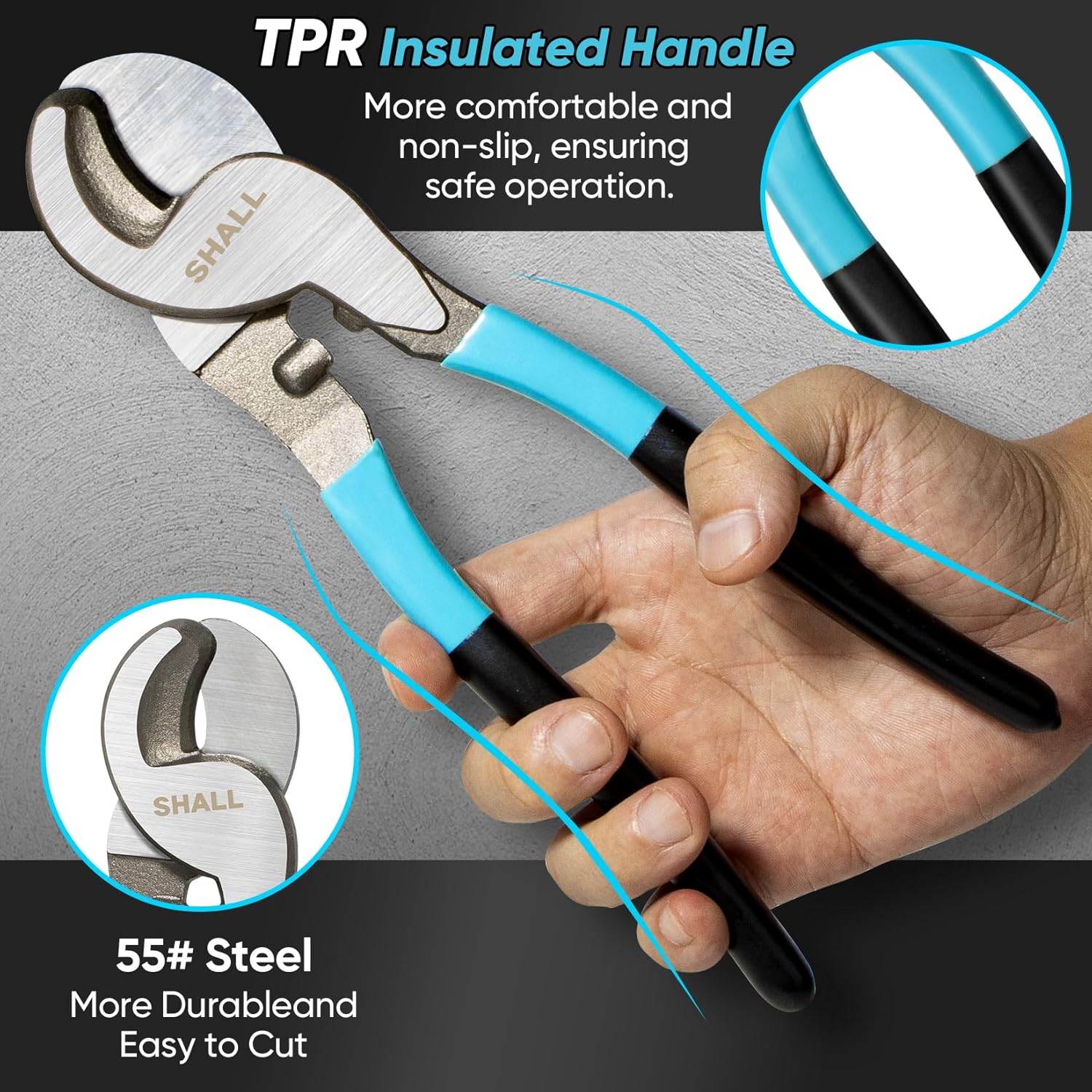 SHALL Cable Wire Cutters,9.44 inches/240 mm,High Hardness Wire Cable Cutting Tools with Anti-Slip Handle,Ideal for Clean Copper Wire Cable Cutting and Stripping