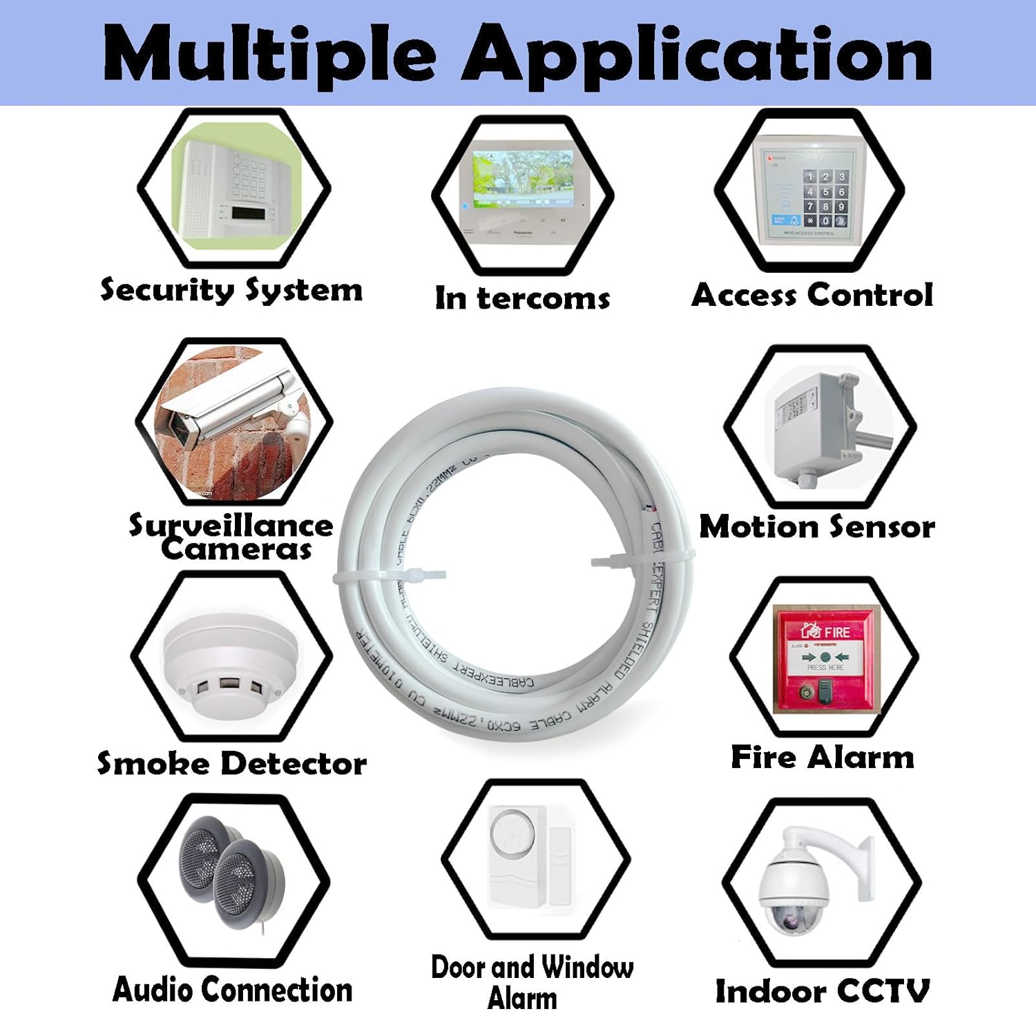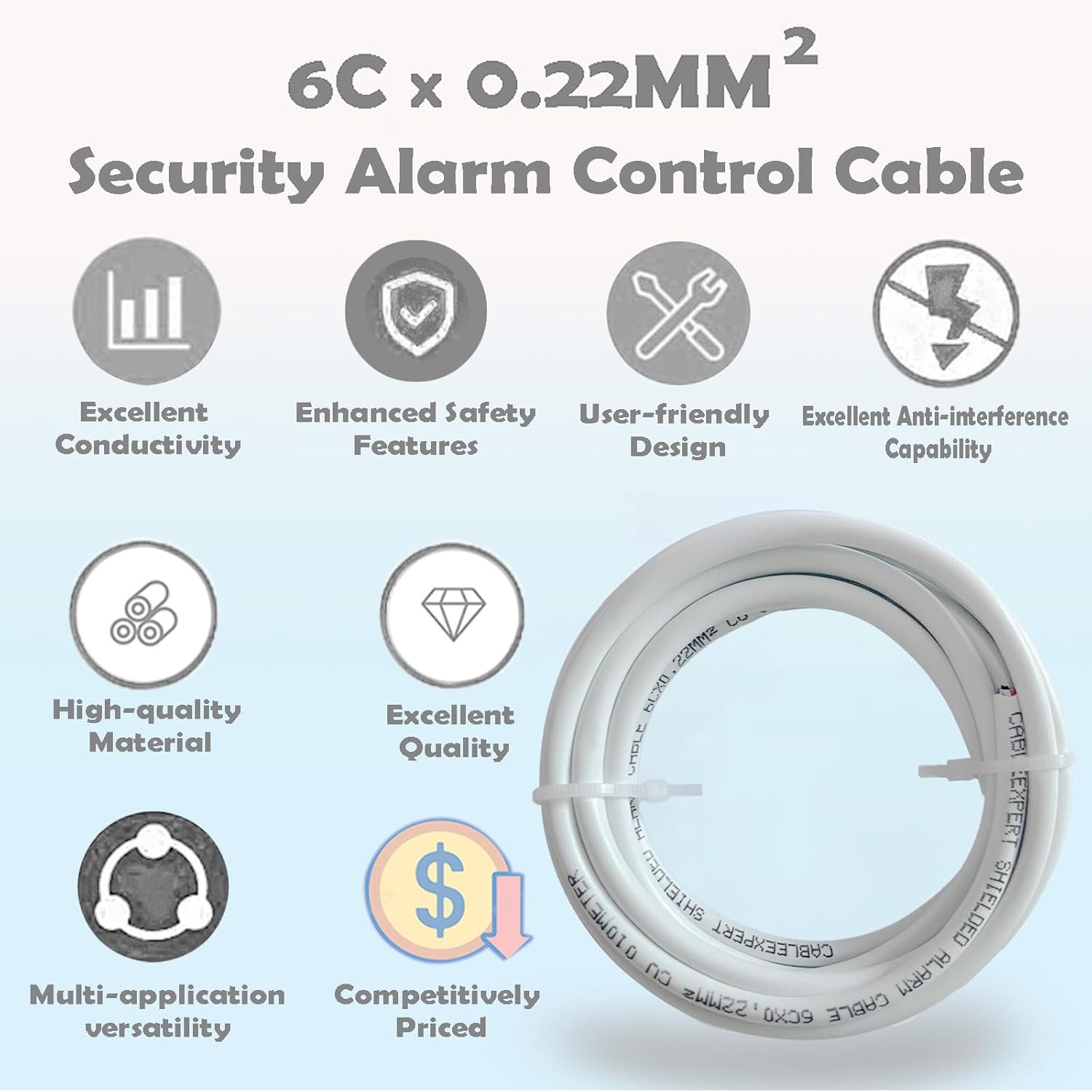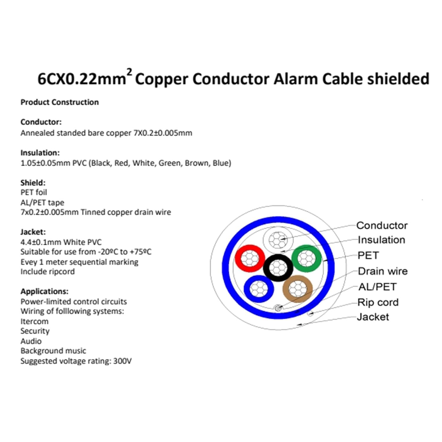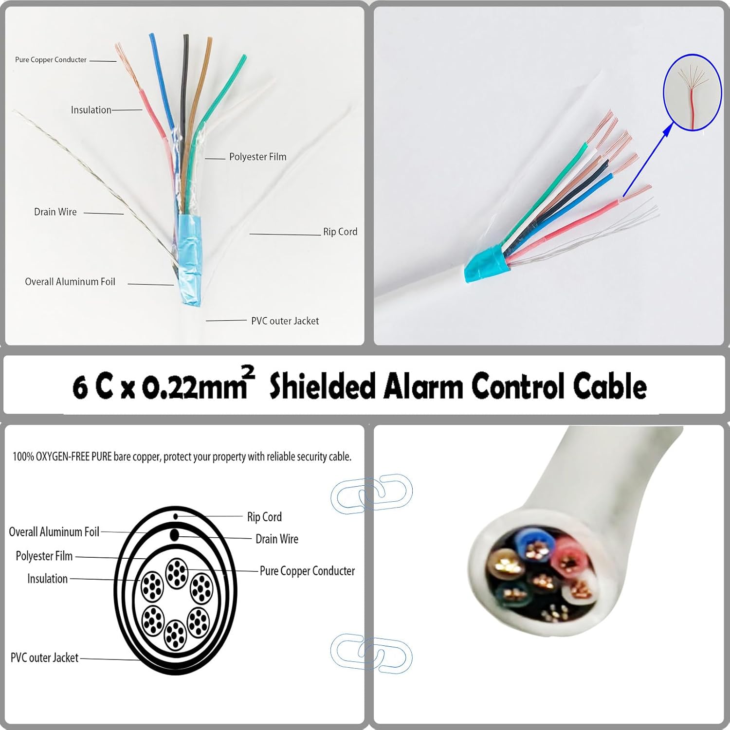 Shielded Alarm Cable, 6C×0.22sqmm, Pure Copper Alarm Control Cable, Security Wire, Full Copper, for Fire/Sound/Security Burglar Station Wire (2 metre)