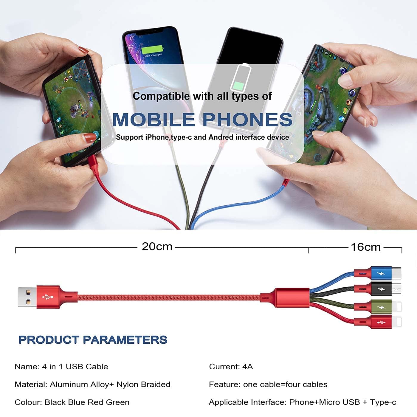 Short Multi Charger Cable [3.5A 35CM] 4 in 1 Charging Cable, Multiple Fast USB Charging Cable Nylon Braided with Micro USB/Type C/iP for Phone 17/16/15/14/13/12/11/Xs/Android Galaxy/Huawei/Nokia/Sony