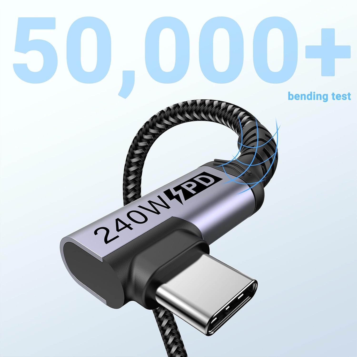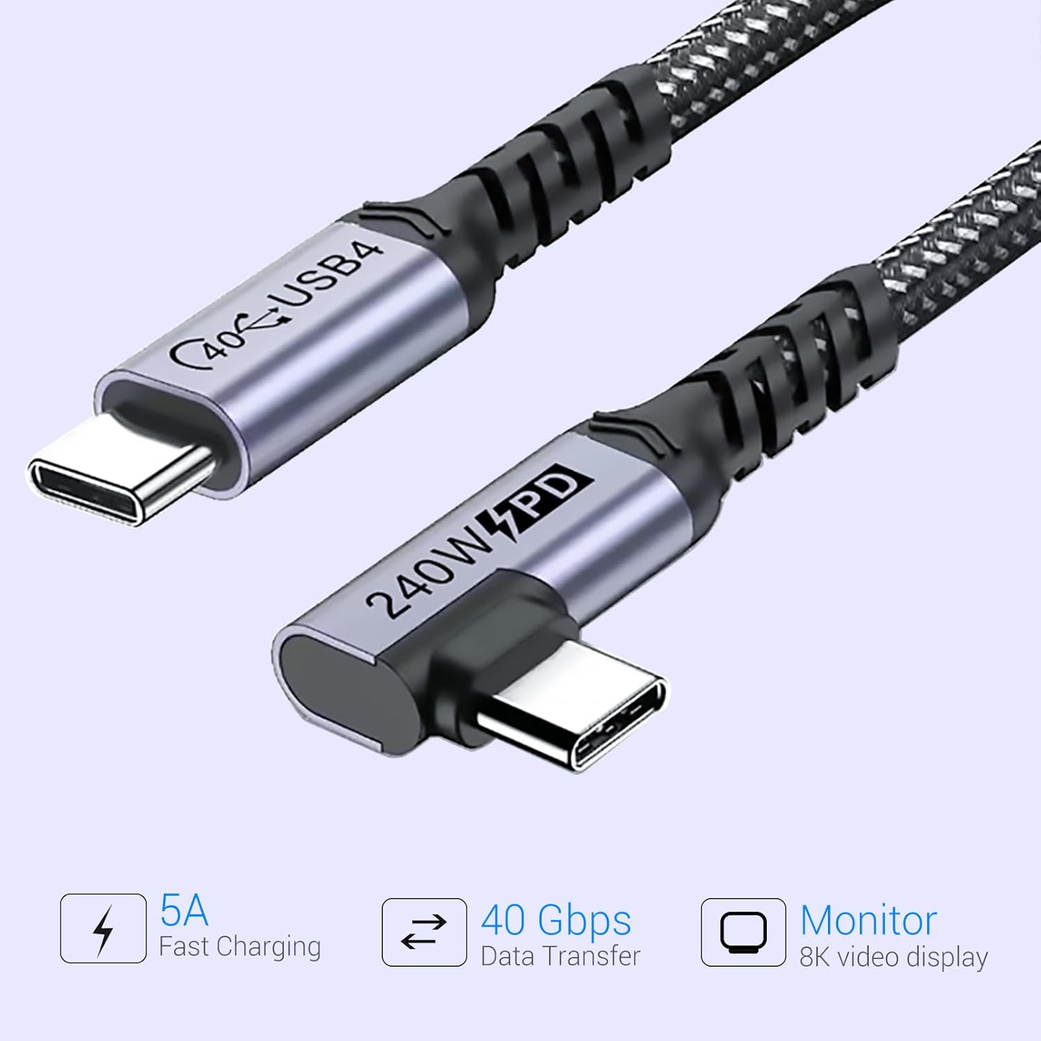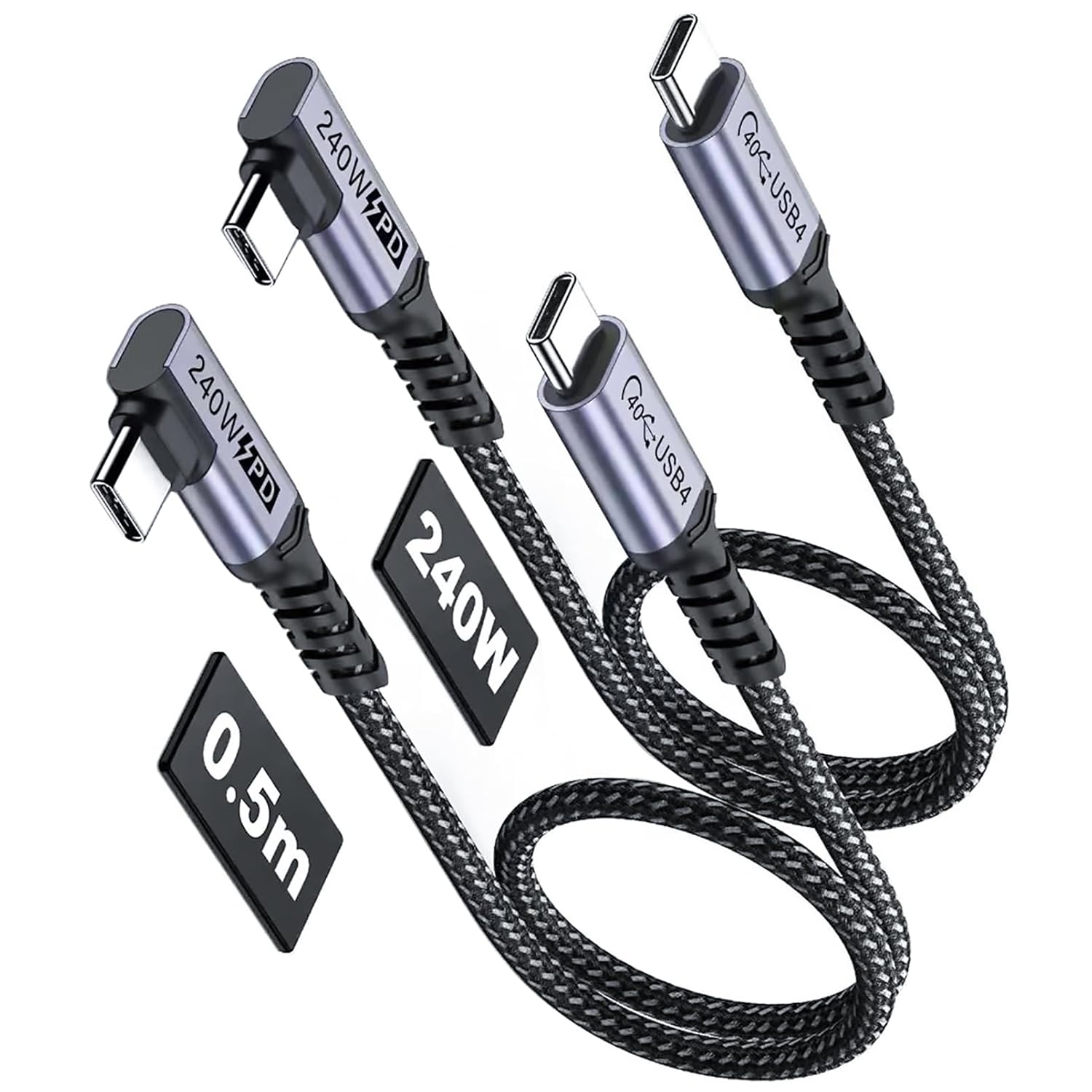 Short USB 4 Cable Right Angle [50cm 2 packs], 240W Fast Charging with High Speed 40Gbps Data Transfer and 8K Video Display Compatible with iPhone 15/15 Plus/15 Pro/15 Pro Max