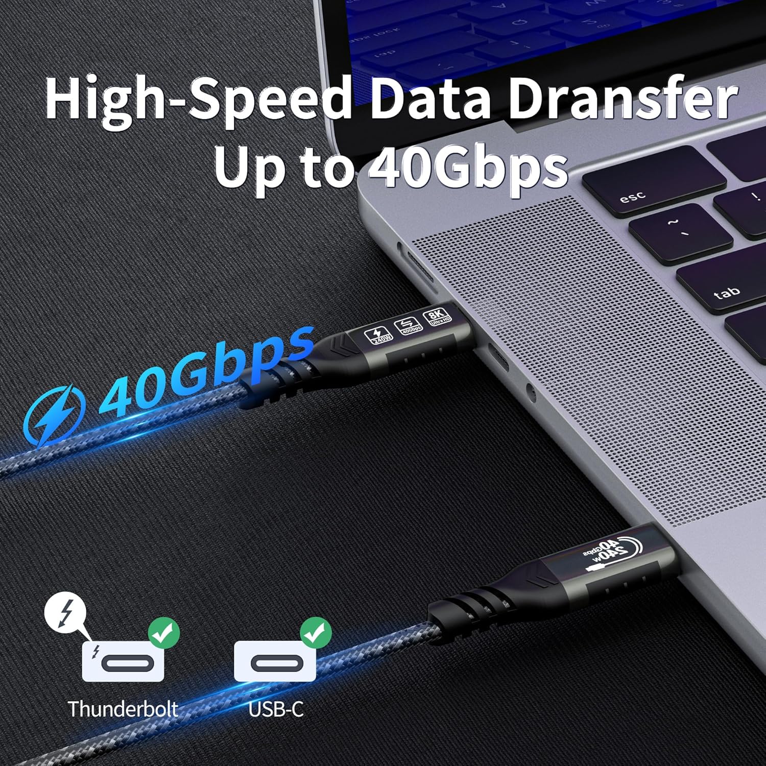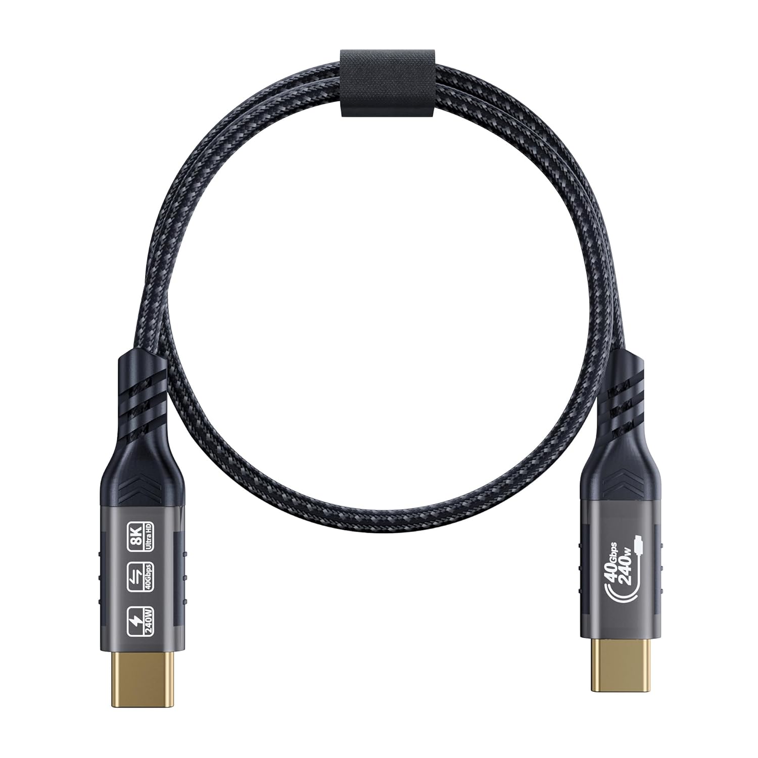 Short USB C Thunderbolt 4 Cable 1.65ft, USB4 Braided Cables 40Gbps, 8K 60Hz PD 240W Compatible with Thunderbolt 4/3, USB4/3, Type C, for Mac MacBook Pro, SSD eGPU, 0.5 Meter