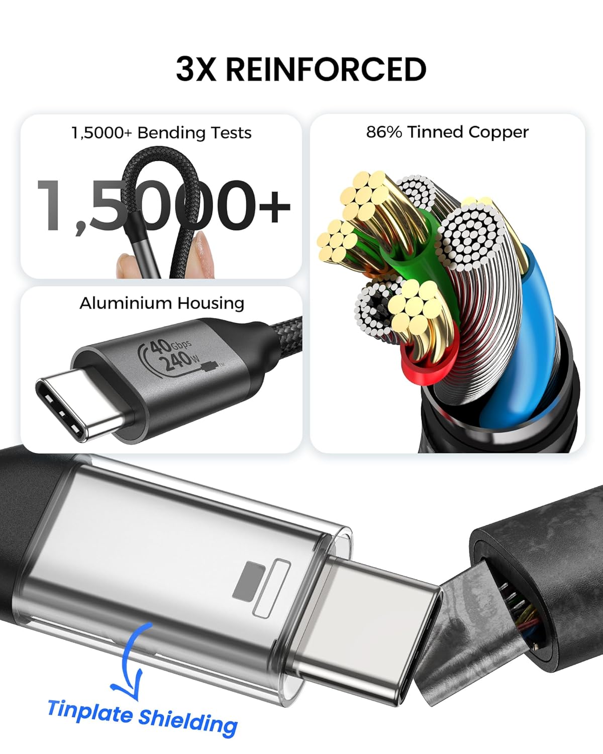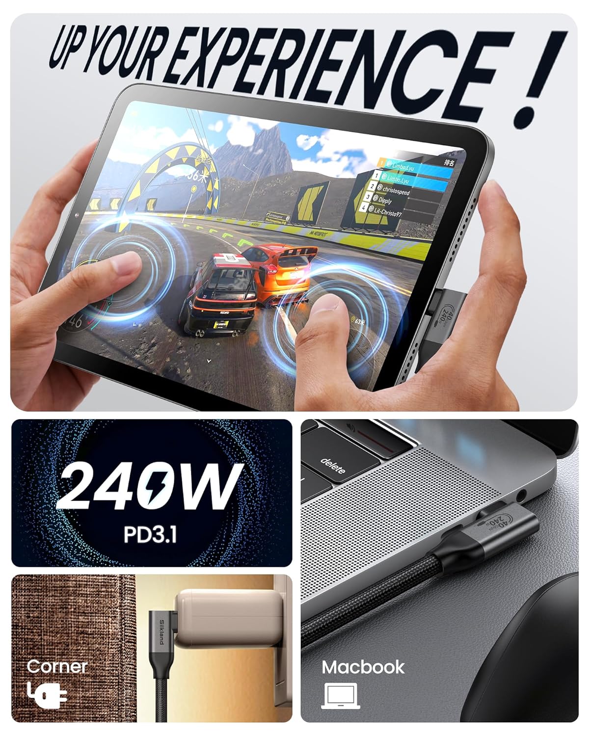 Silkland 240W USB4 Cable for Thunderbolt 4 Cable Right Angle 1.5M, 90 Degree 40Gbps Data Sync 8k@60Hz Display, Compatible with MacBook Pro, iPhone 16 Pro, iPad Pro