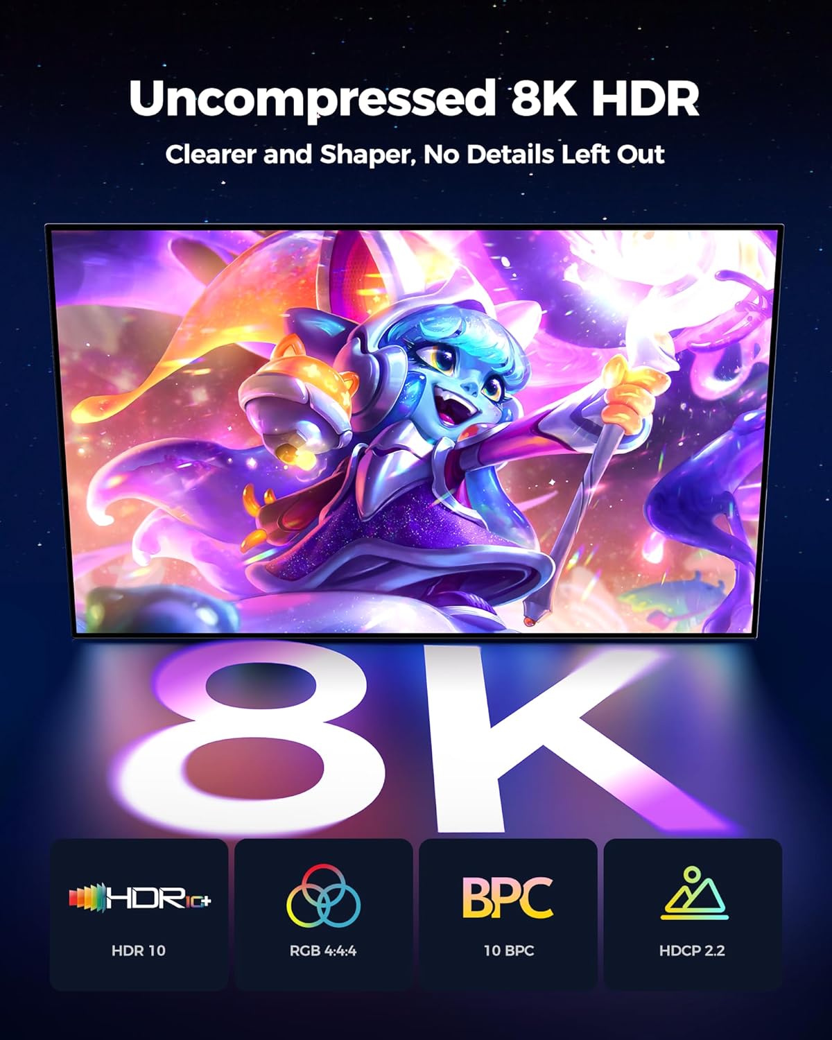 - Supports high resolutions up to 8K@60Hz