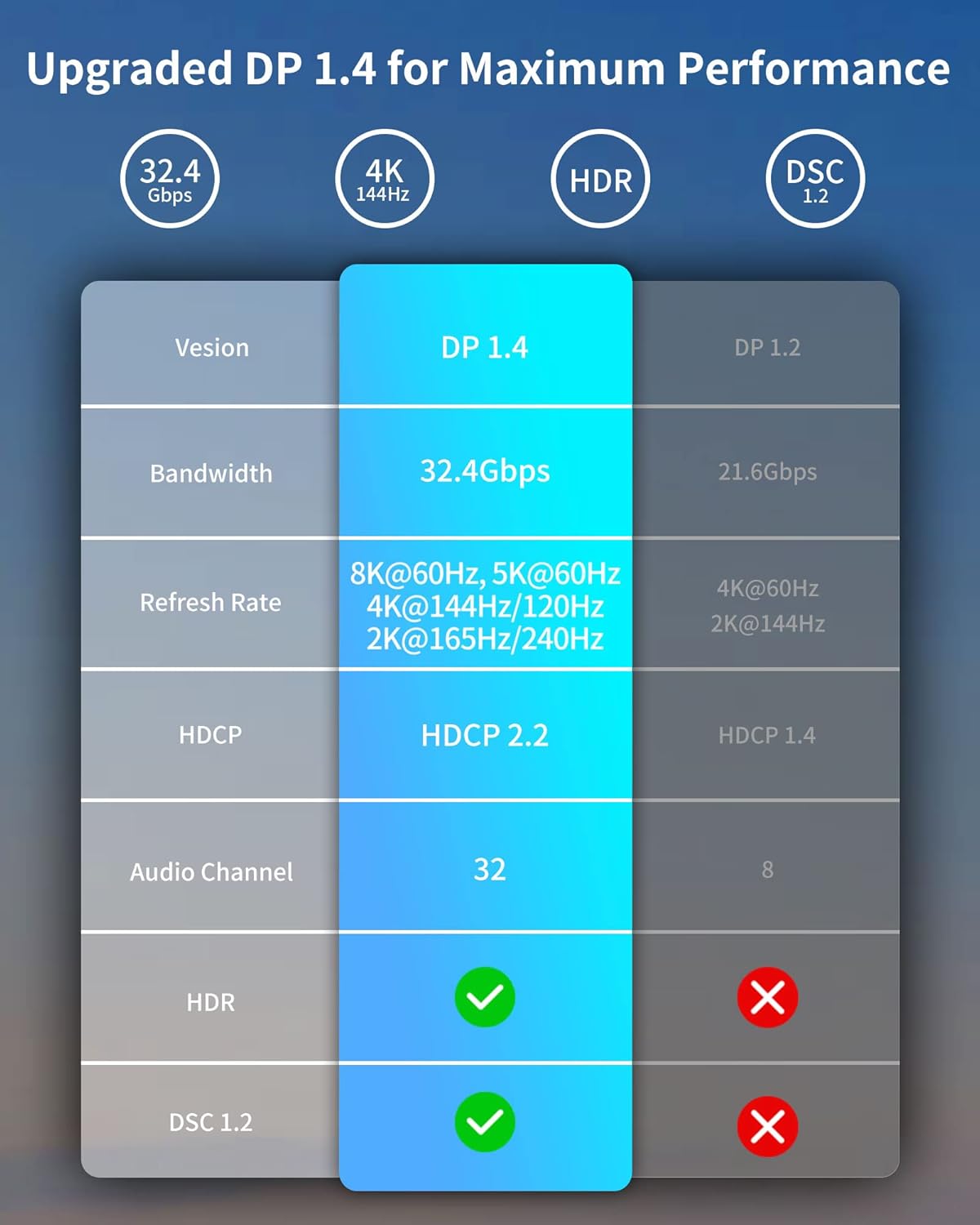 The Silkland VESA Certified DisplayPort Cable 1.4 is designed for high-performance gaming and multimedia use. It supports resolutions up to 8K at 60Hz and is compatible with 4K at 144Hz and 2K at 240Hz. With a bandwidth of 32.4Gbps, this cable ensures smooth and high-quality video output. It also supports HDR and DSC 1.2 technology, making it ideal for vibrant visuals.