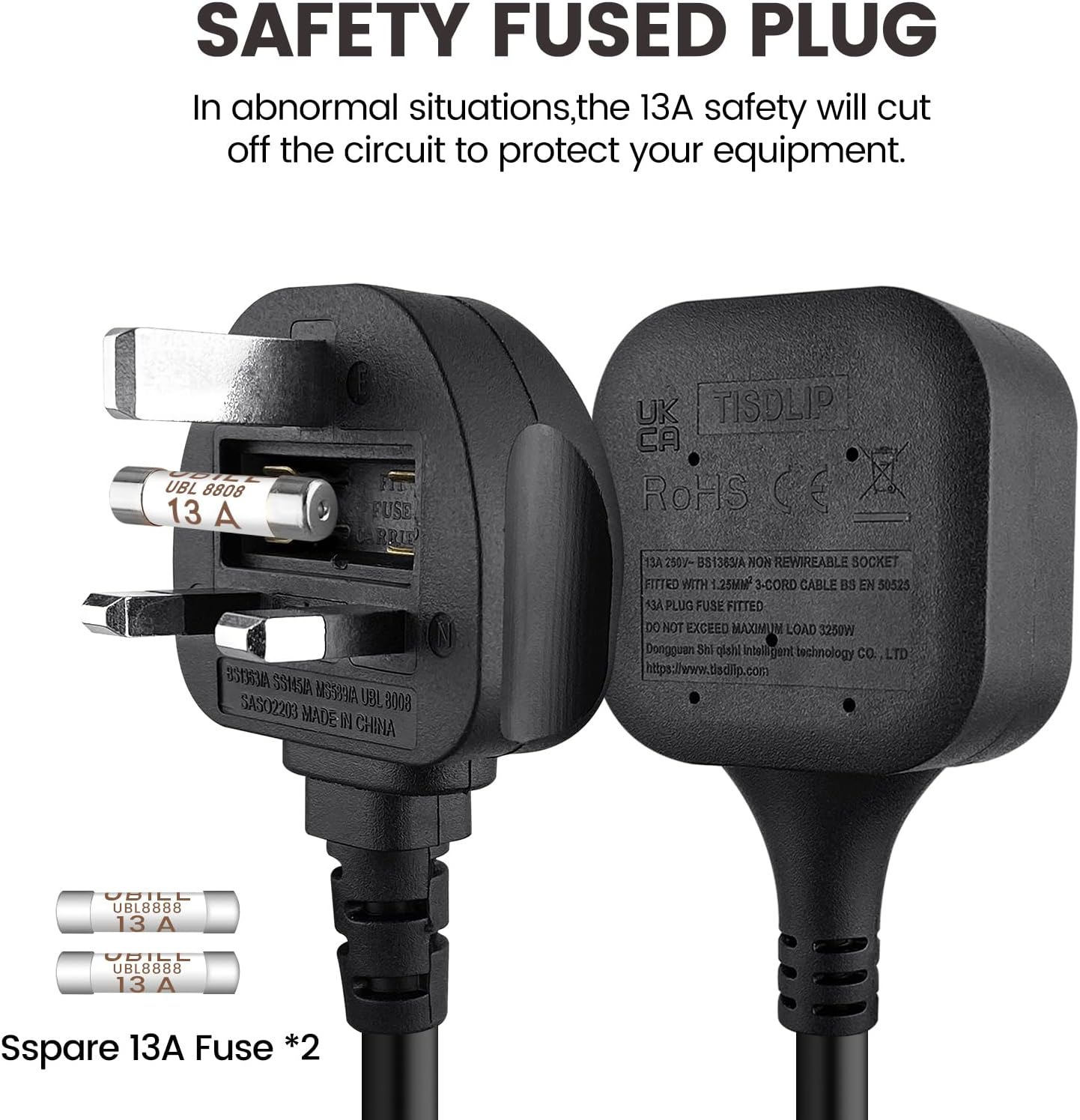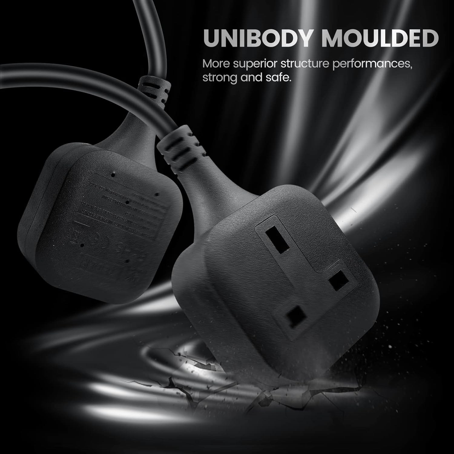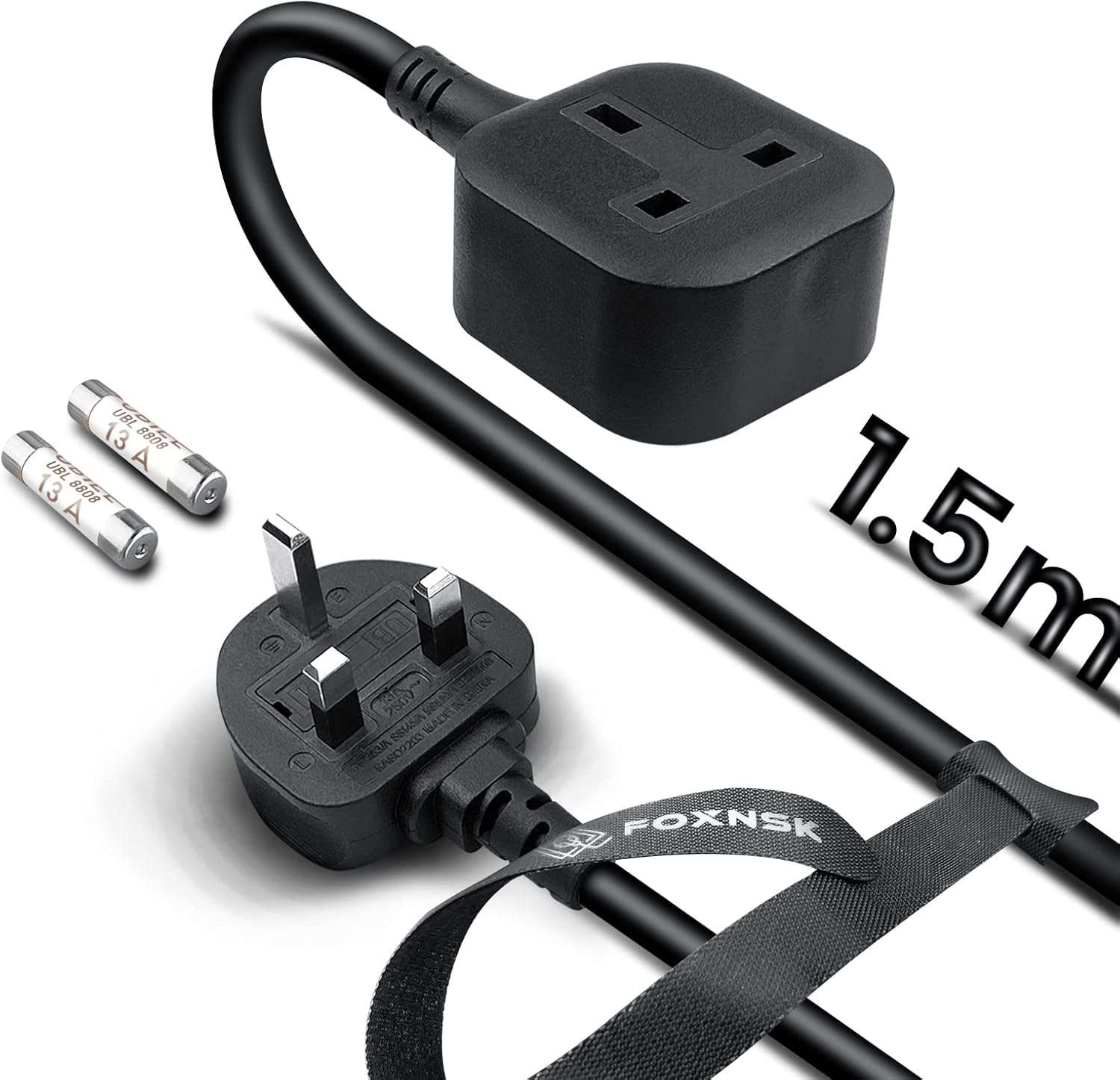 Single Plug Extension Lead 1.5M, 1 Way Gang Single Socket Extension Lead Surge Protected, 13amp 250V 3kw UK 3 Pin Fused Mains, Rubber, Tough and Fireproof, Black