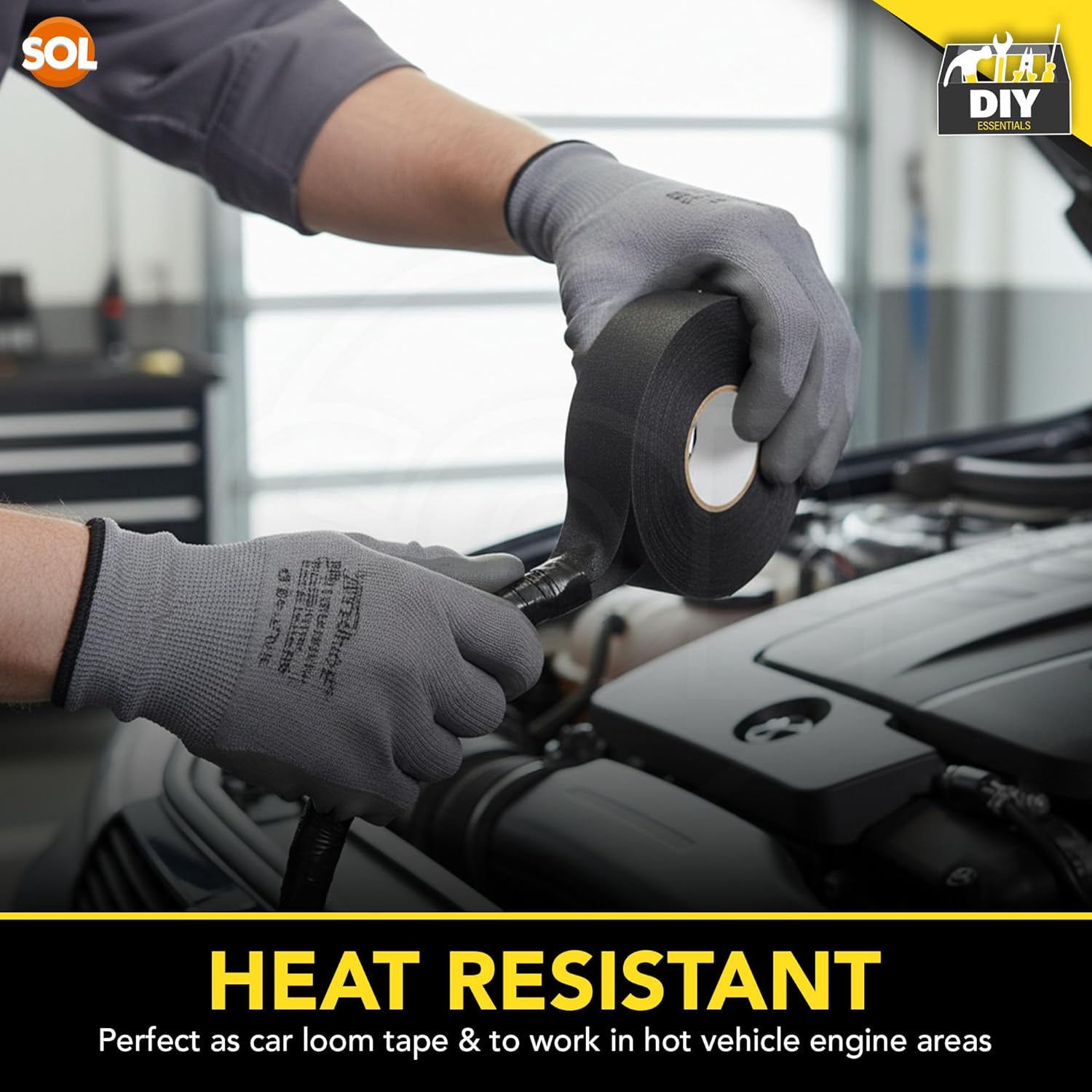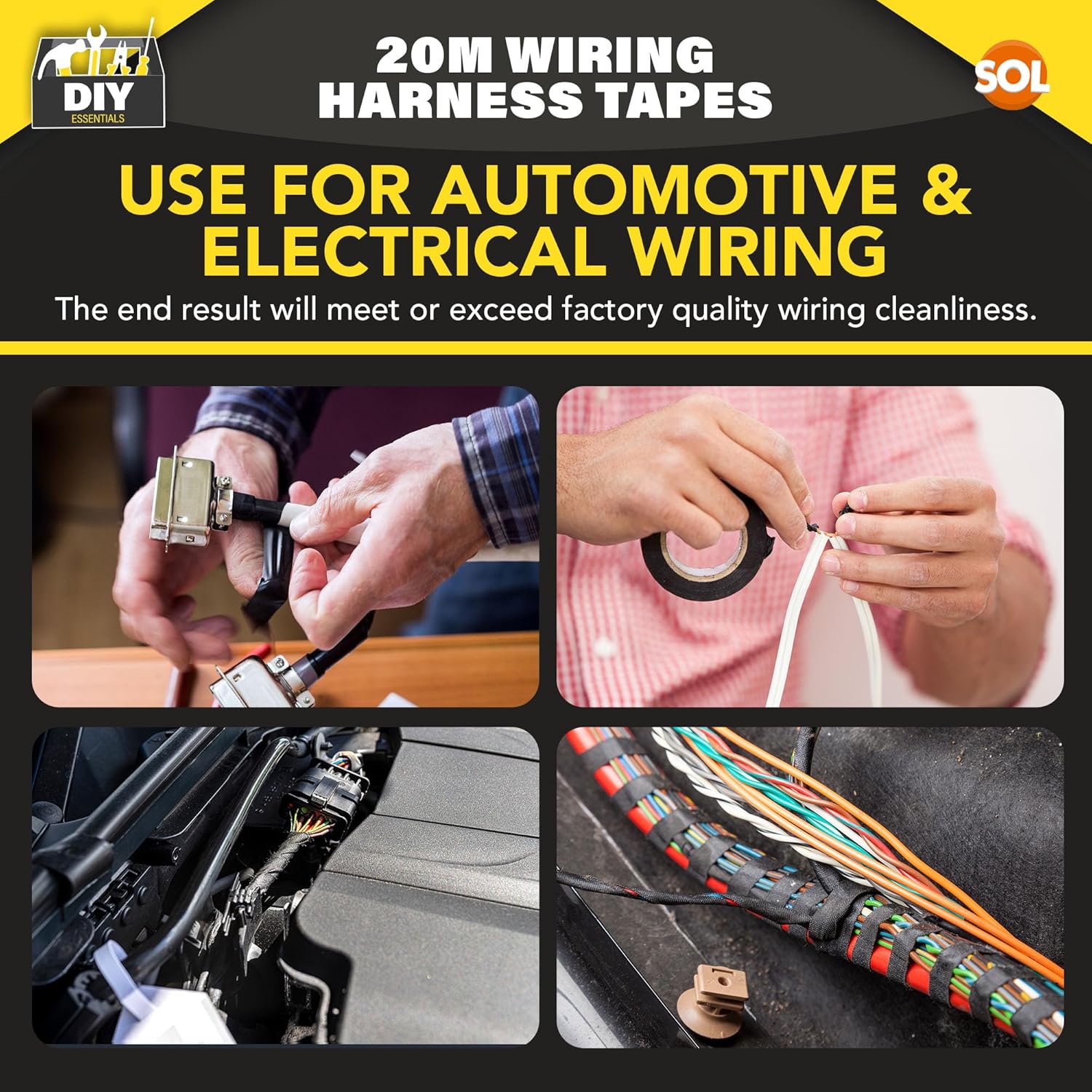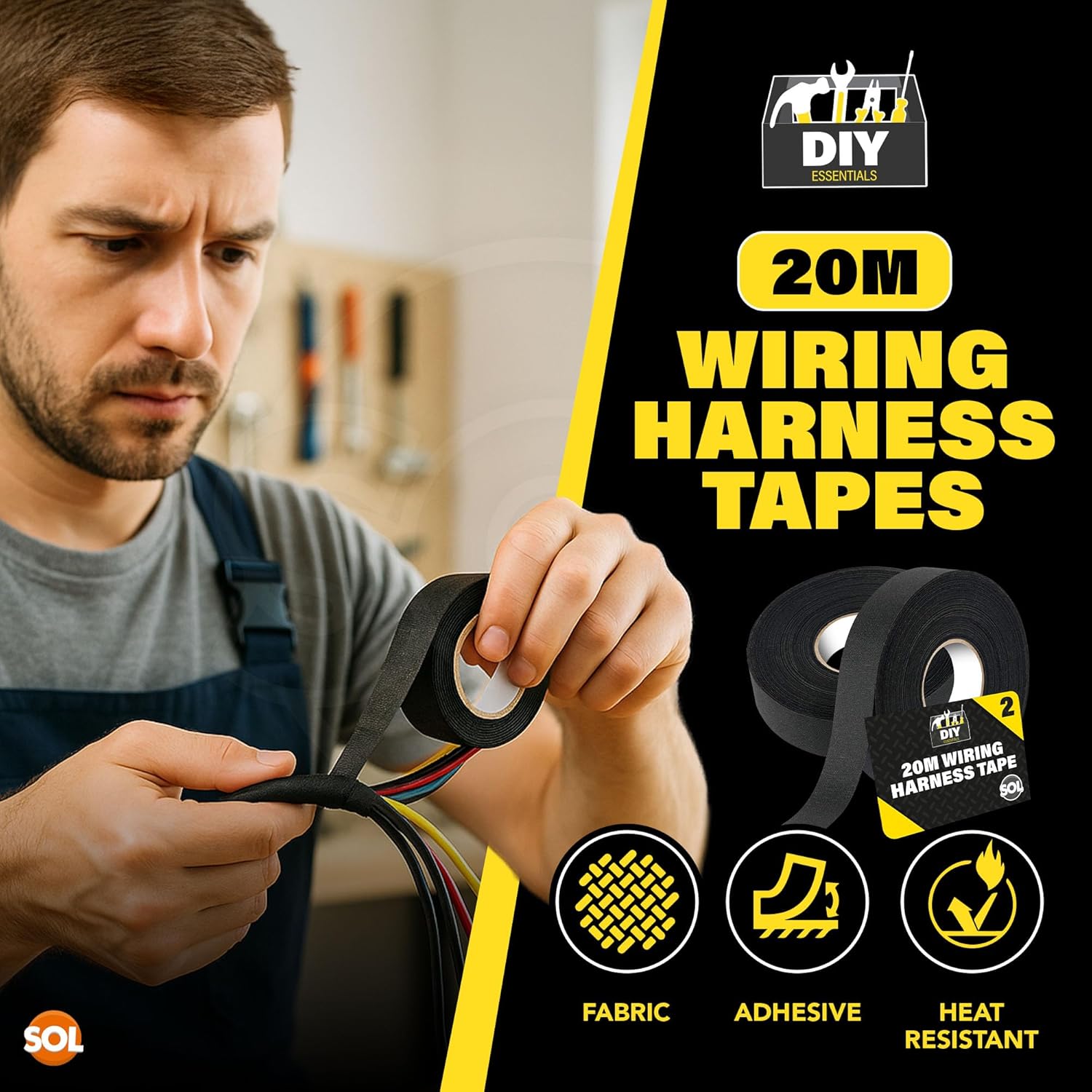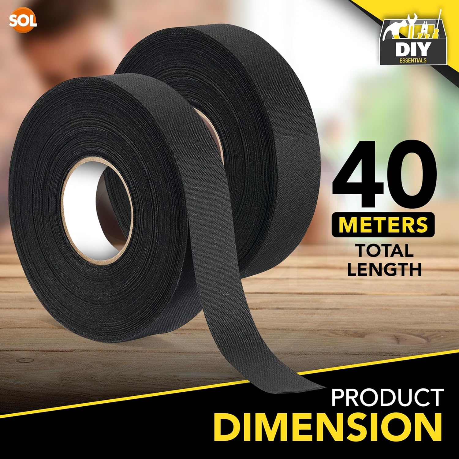 SOL 2pk 20m Wiring Cloth Tape, Black Loom Harness Binding Felt for Cars, Motorcycle, Durable and Flexible, Heat-Resistant Adhesive Fabric Strip, Ideal for Automotive Electrical Wire Cable Management
