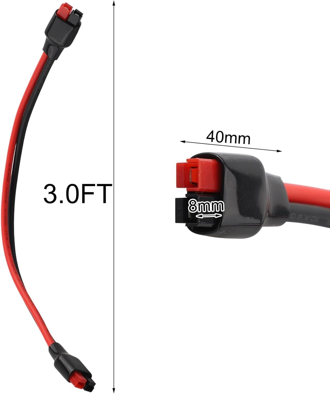 Solar Battery Extension Cord 10AWG | for Anderson 30A Connectors, Waterproof & UV Resistant | Tinned Copper for RV & Battery Power Systems(30cm)