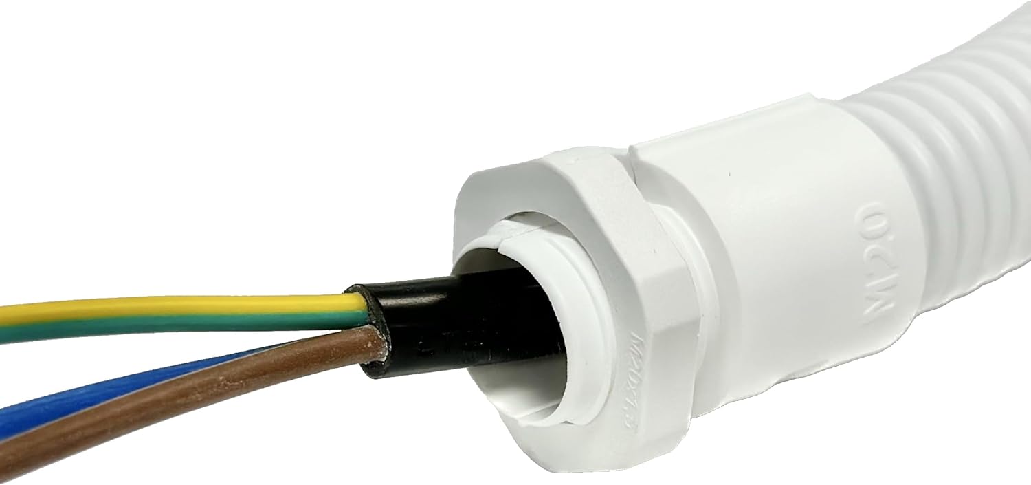 SoliFlex Flexible Conduit Outdoor Cable Contractor Pack IP40-10M Coil – Underground Burial, External Trunking, Electrical Ducting, Hose Pipe Wire Protection. w/Fittings – 10 Glands and Locknuts