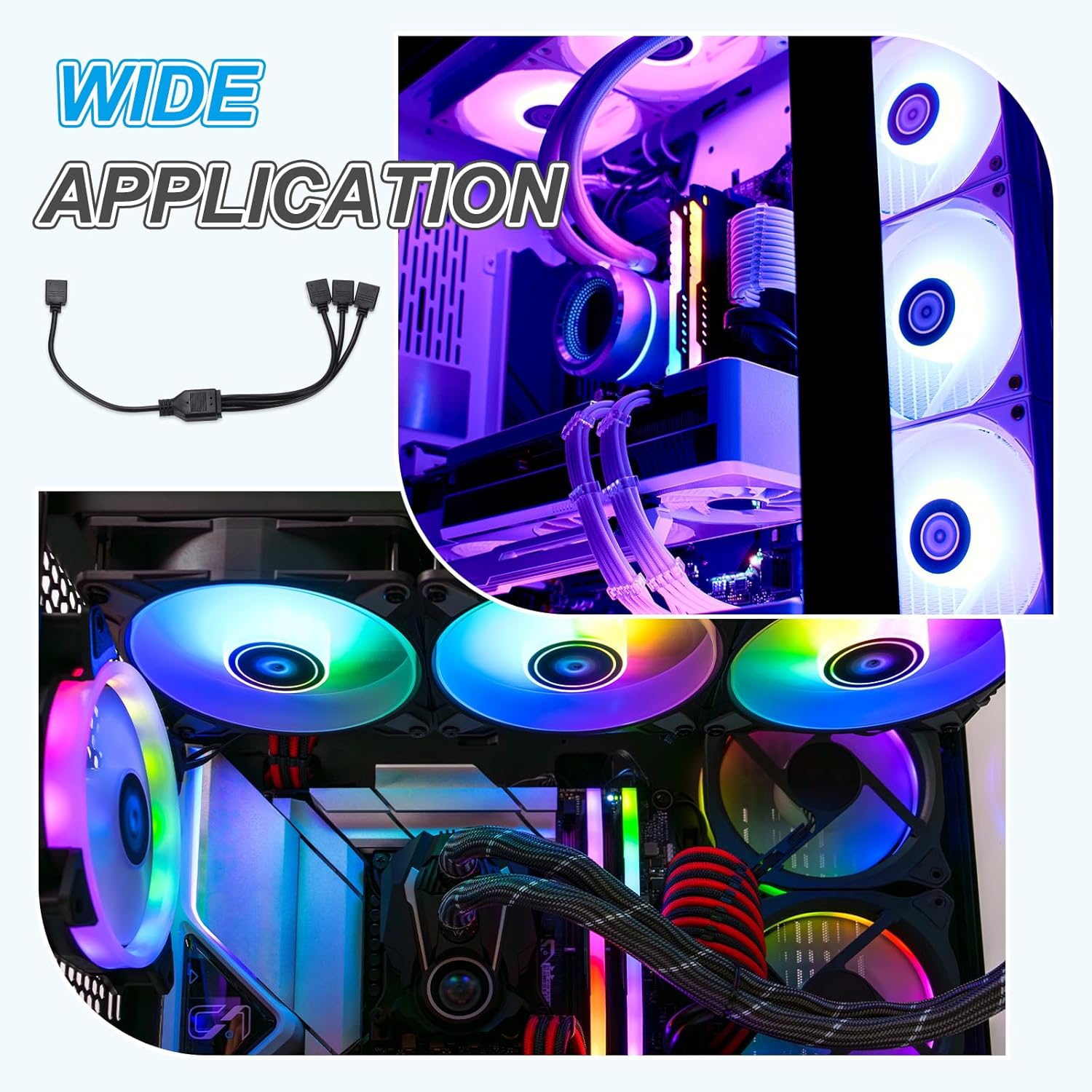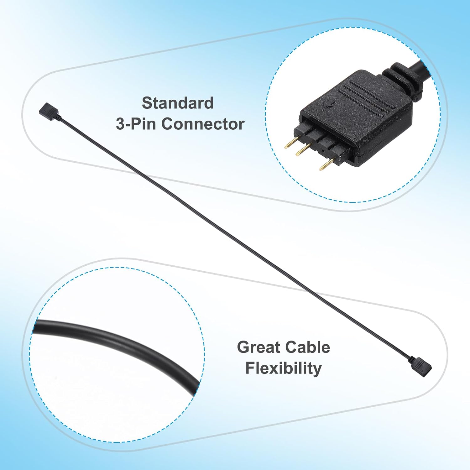 sourcing map 2 Pcs ARGB Extension Cable, 5V 20″ 3 Pin 1 to 1 Female to Female ARGB Adapter Cable with 3 Pin Male Connectors for PC Computer ARGB Fan/LED Lights, Black