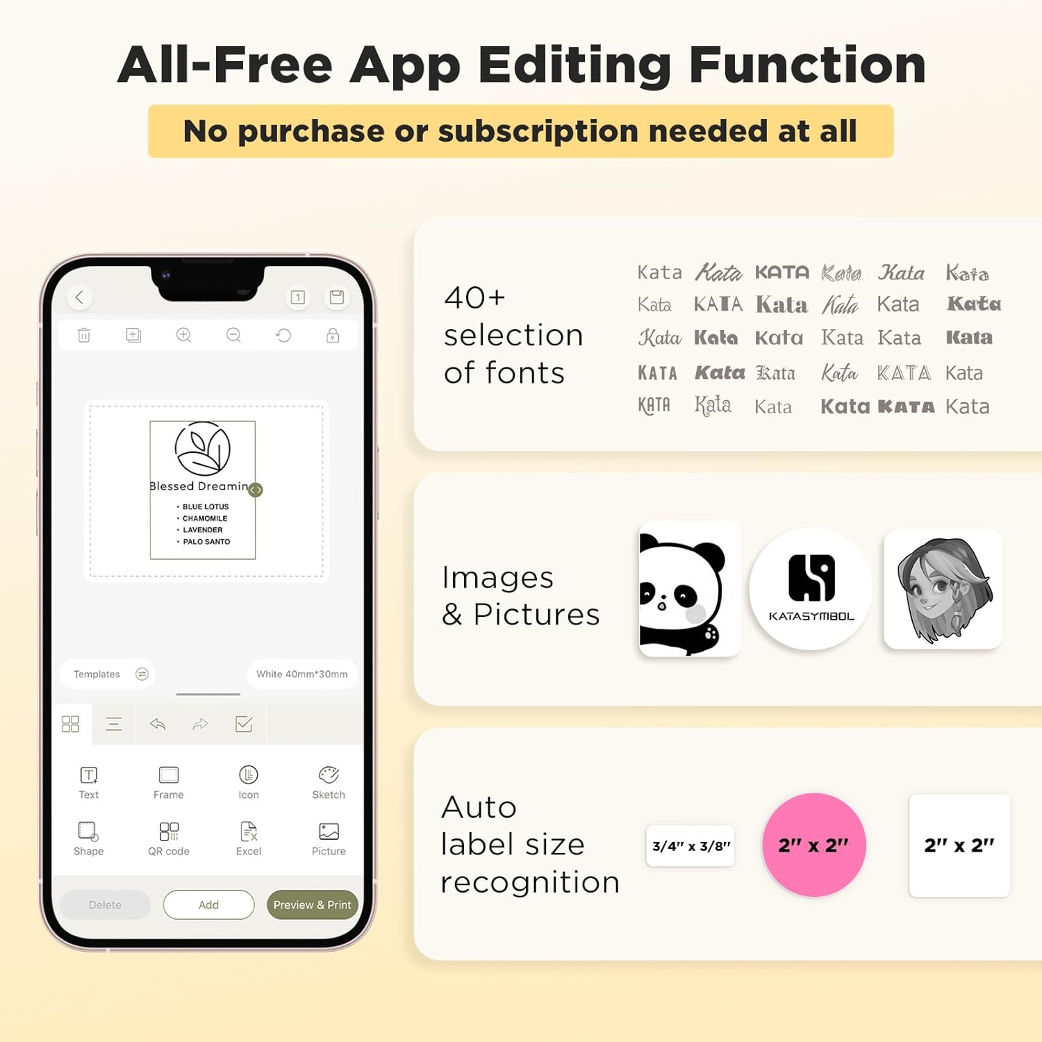 SUPVAN T50M Pro Bluetooth Label Maker Machine with Tape, Wide Waterproof Label, Versatile App with 40 Fonts and 450+ Icons, Inkless Labeler for Home, Kitchen, School, Office Organization, Black