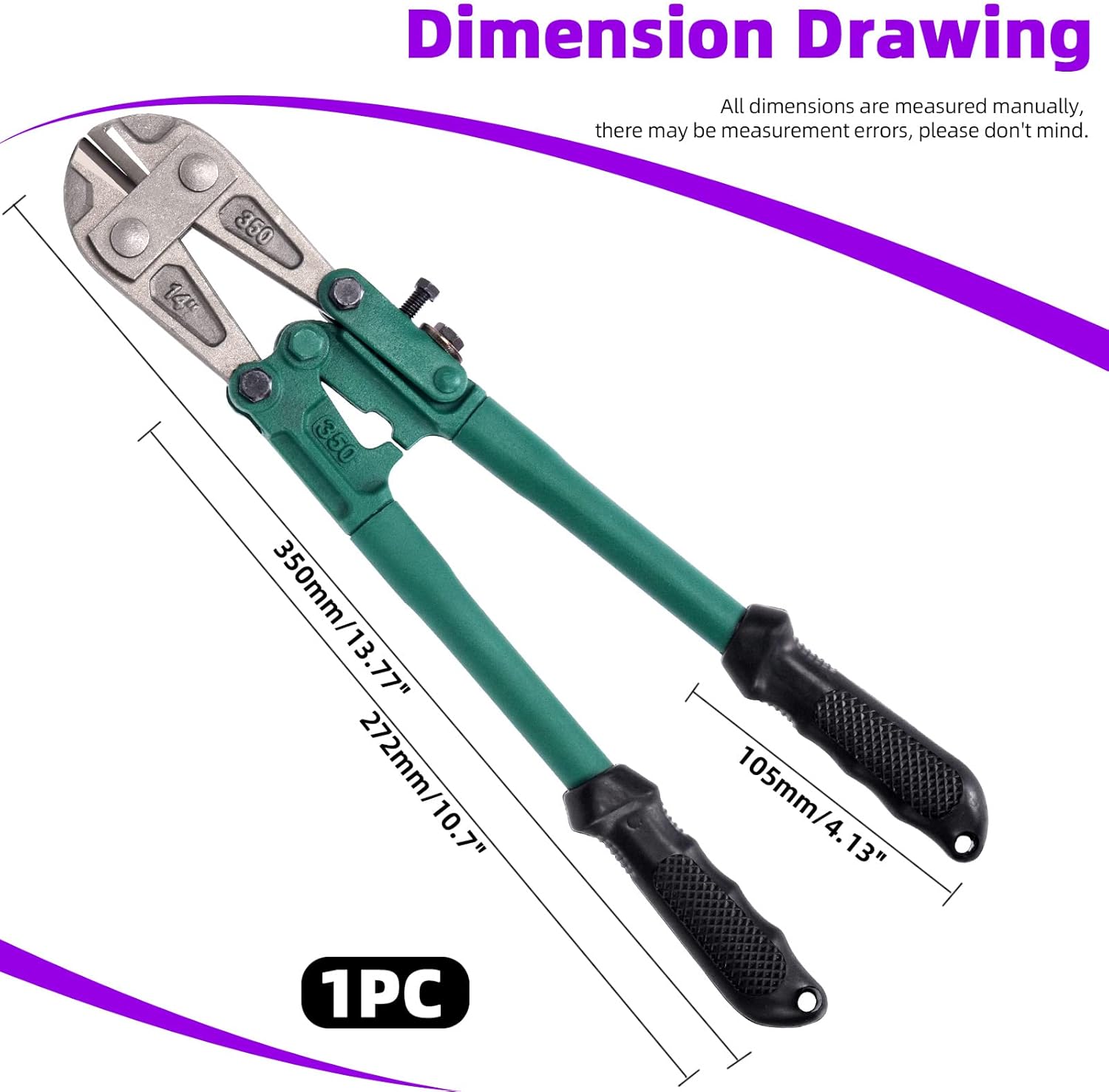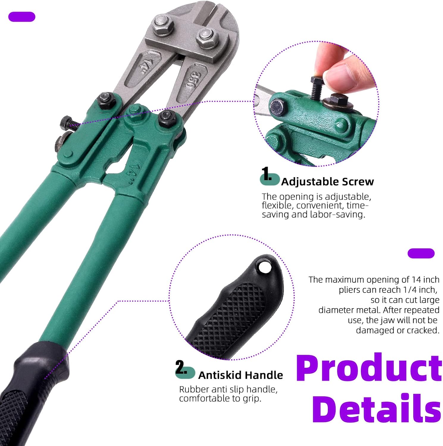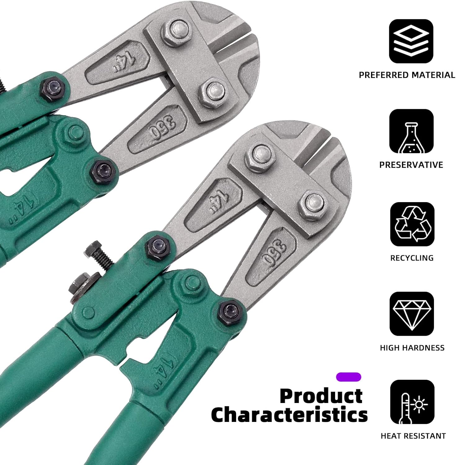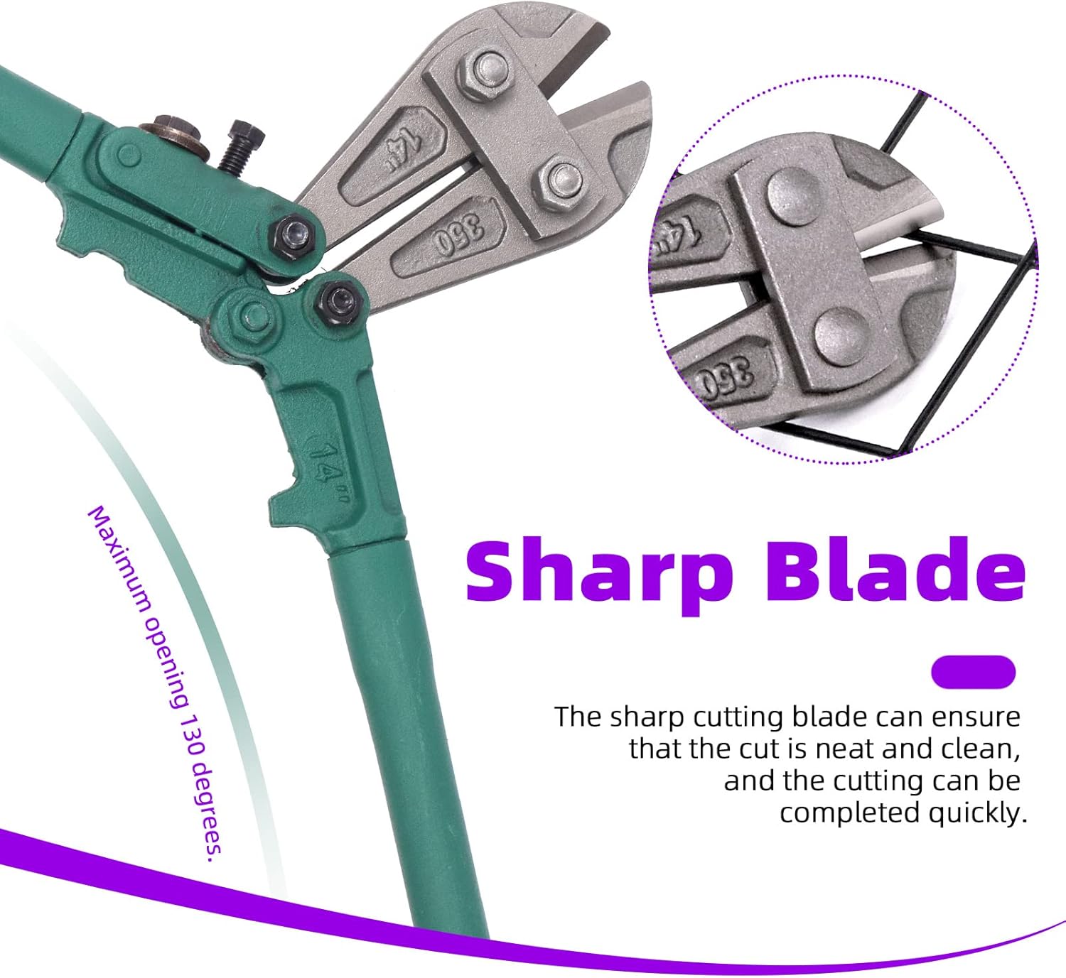 Swpeet 1Pcs 14 Inch Heavy Duty Bolt Cutter Pliers, Wire Breaking Plier with Rubber Black-Green Ergonomic Nonslip Handles, Lock Cutter for Cutting Chain Lock, Cable and Wire Mesh