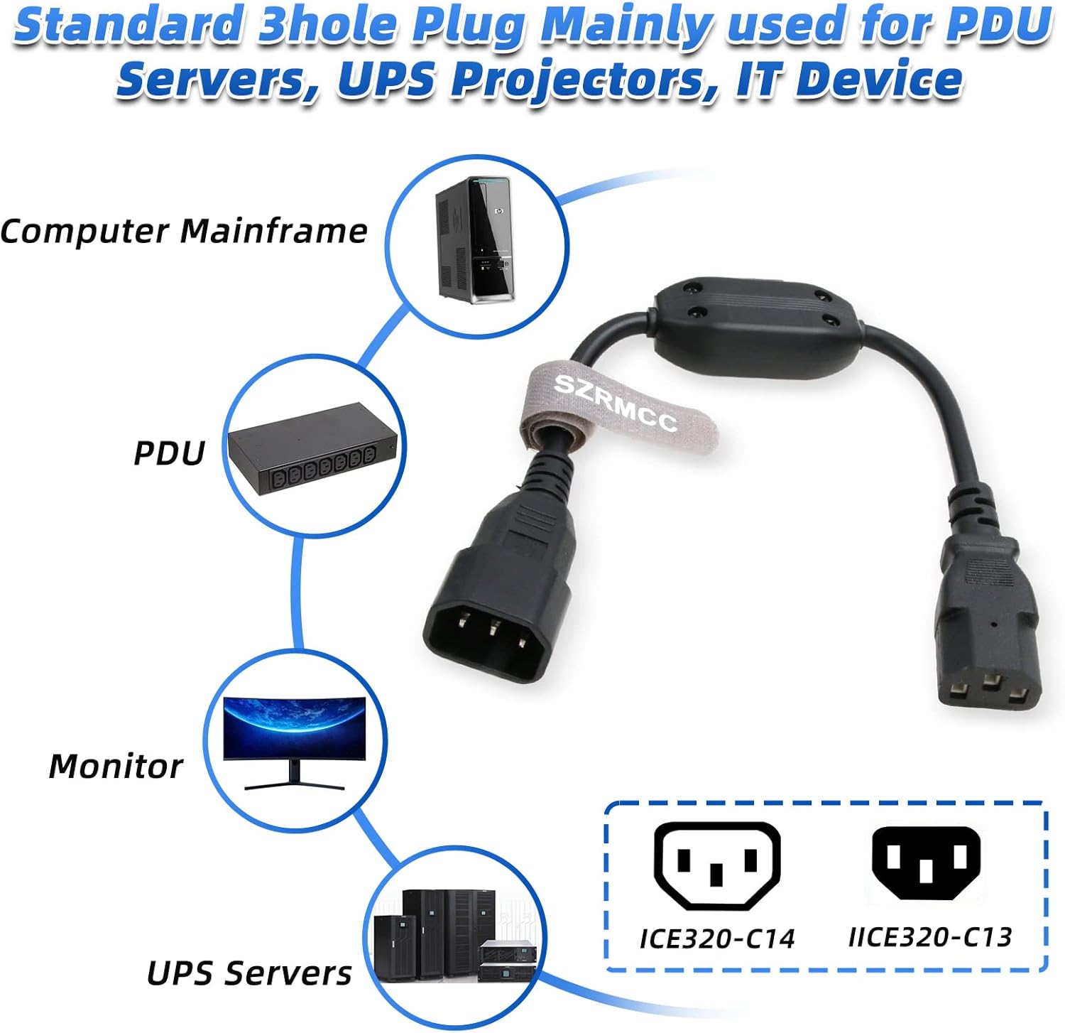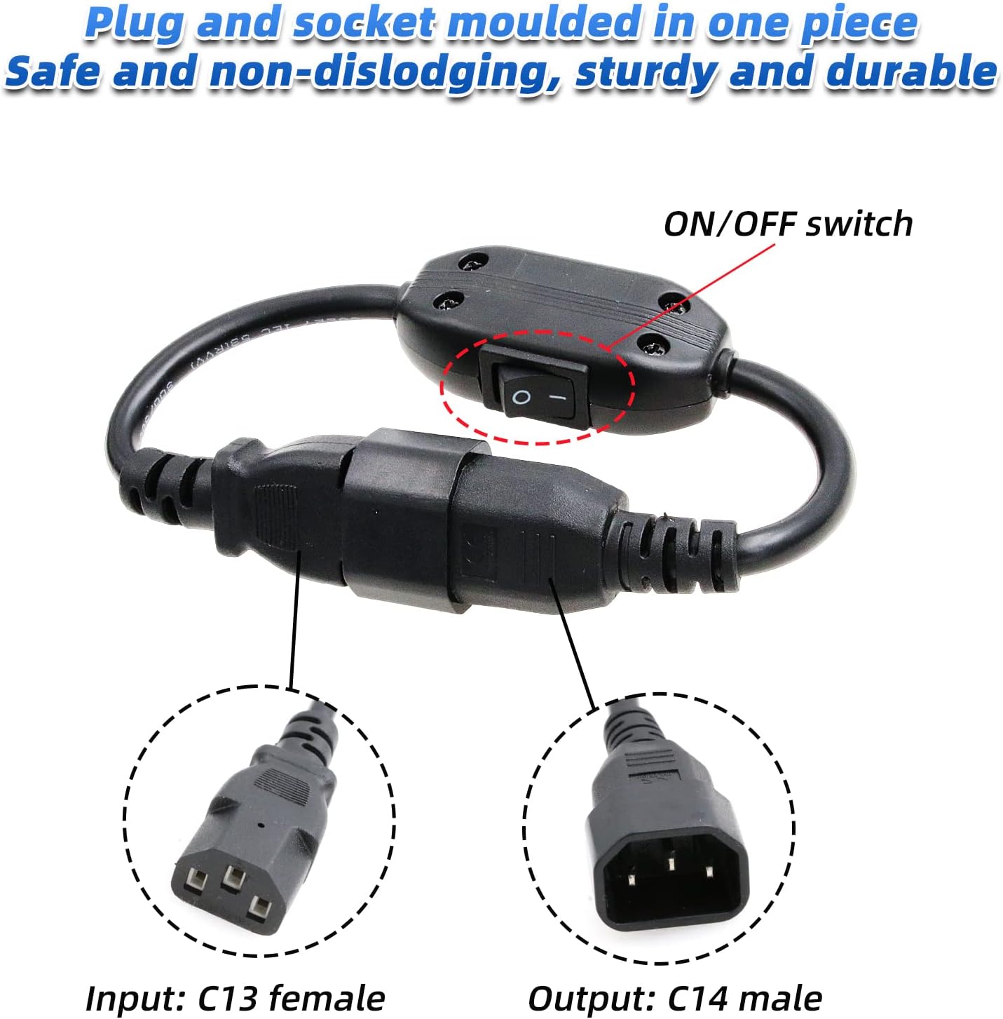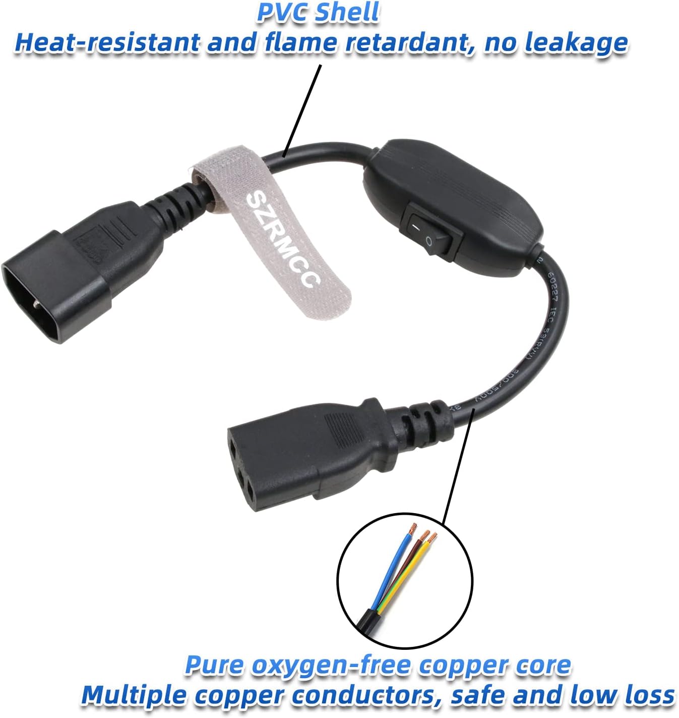 SZRMCC Power Cord Cable IEC 320 C14 to C13 PDU UPS Power Extension Cable with On Off Switch 10A (1pcs)