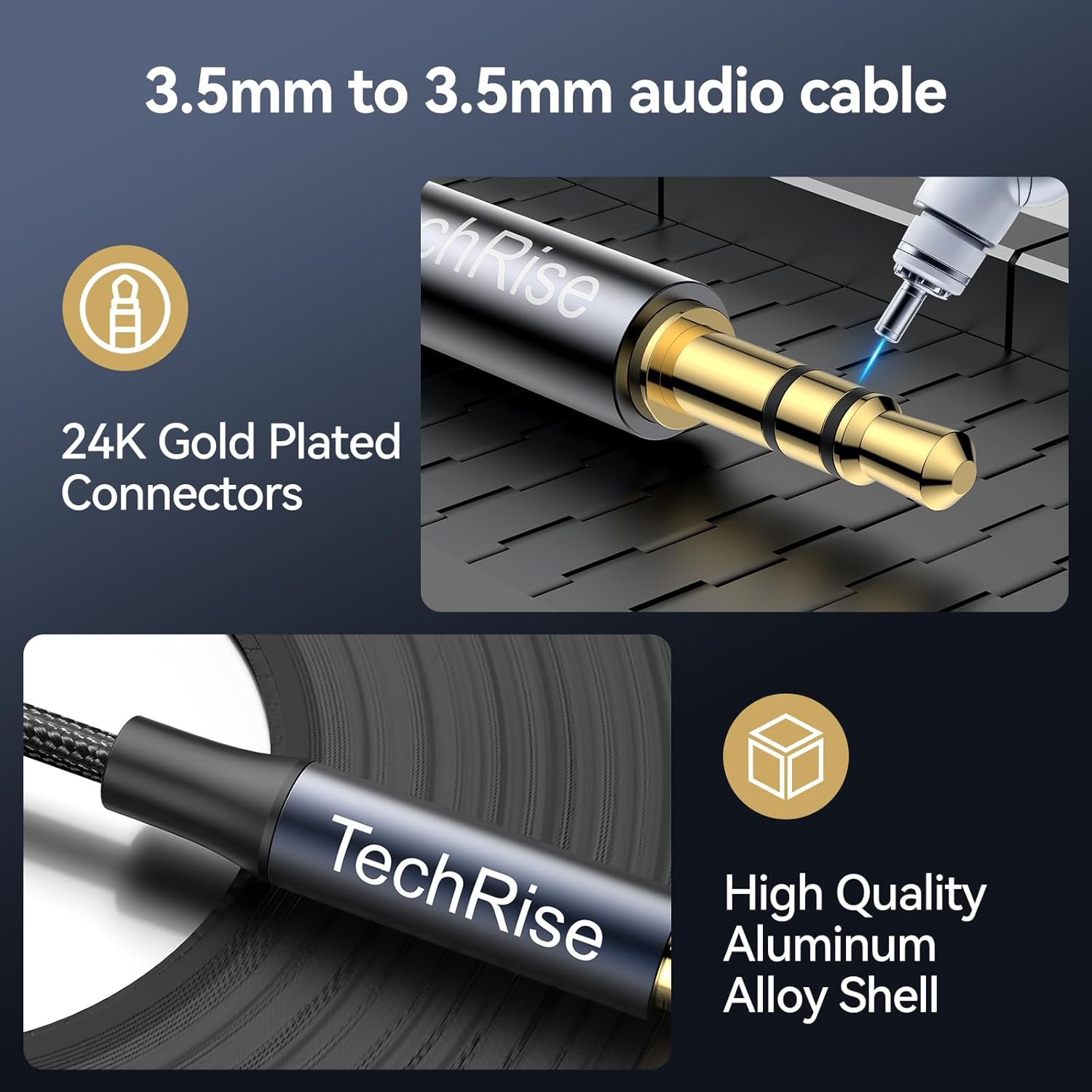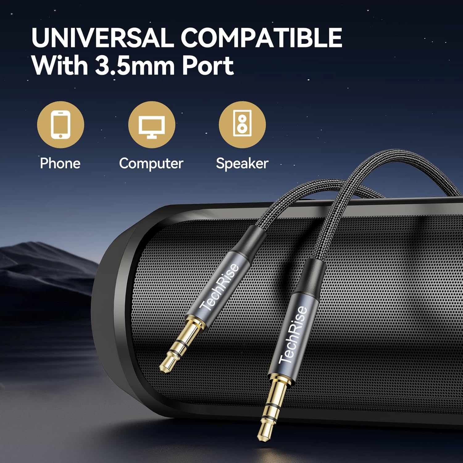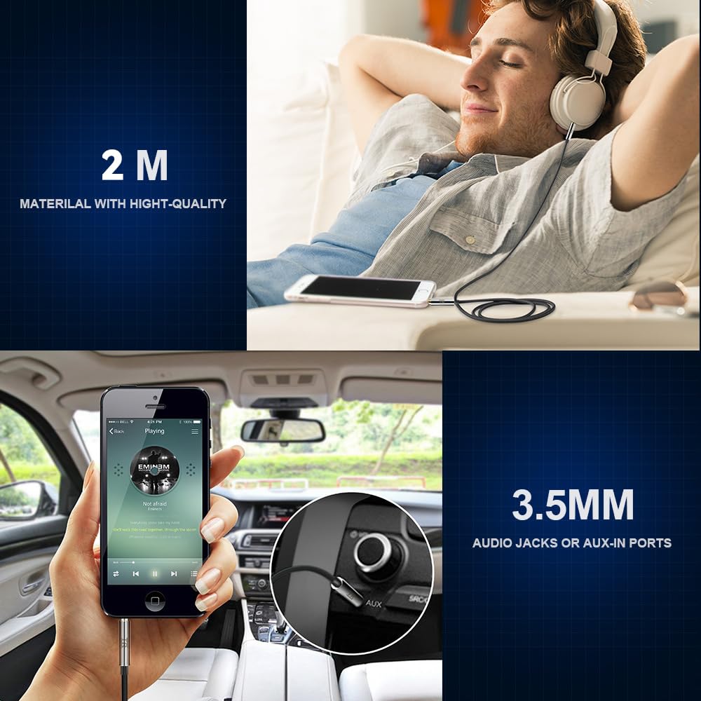 The TechRise 3.5mm Aux Cable is designed for seamless connectivity between your audio devices. This 2-meter cable is perfect for connecting headphones, iPods, iPhones, iPads, and various audio systems including cars, soundbars, TVs, PCs, and speakers. Its nylon braided design ensures durability while preventing tangling, making it easy to store and transport.