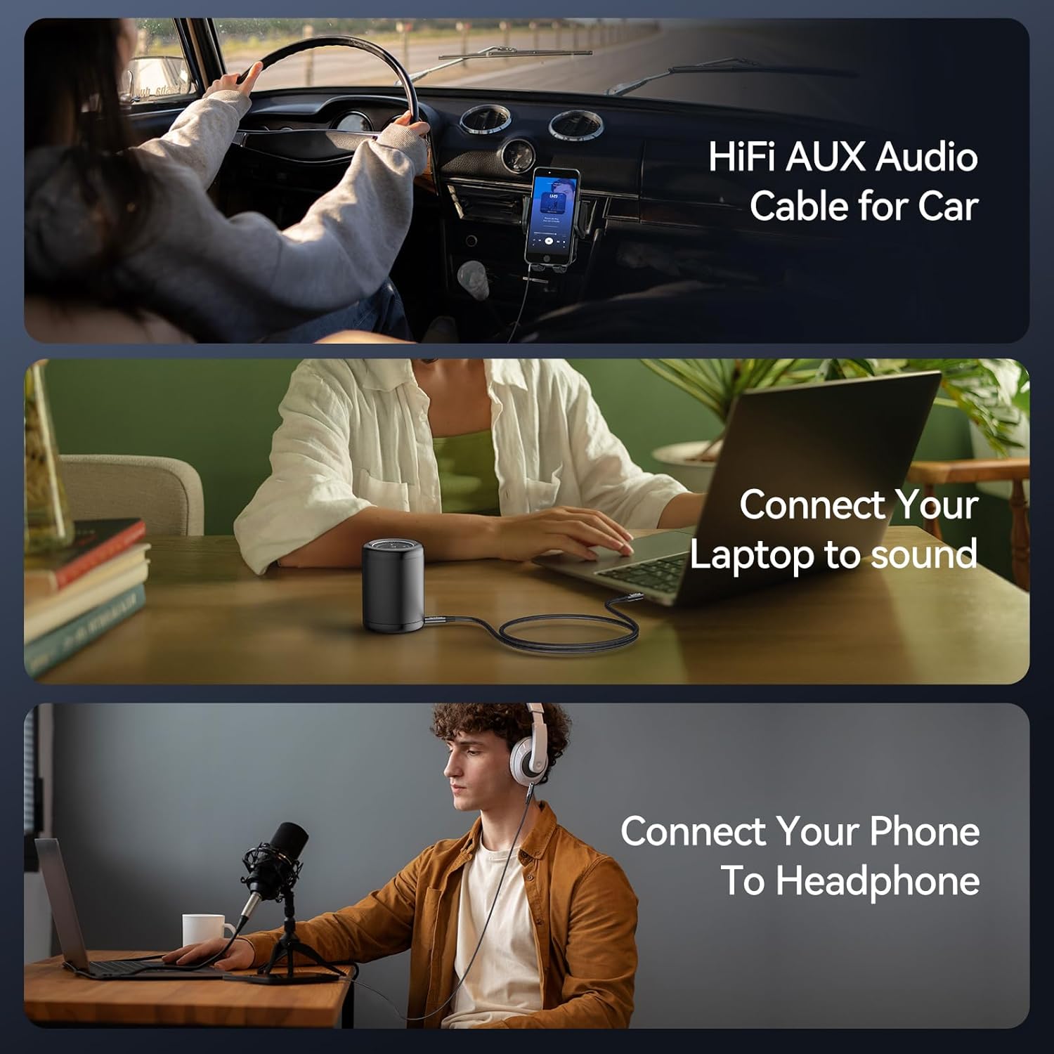 TechRise Aux Cable 3.5mm to 3.5mm Audio Cable 2m,Headphone Cable, Nylon Braided Stereo Jack for Headphones, iPod, iPhone, iPad, Car, Soundbar, TV, PC, Speaker – Superior Sound TRS Cord (Black, 2M)