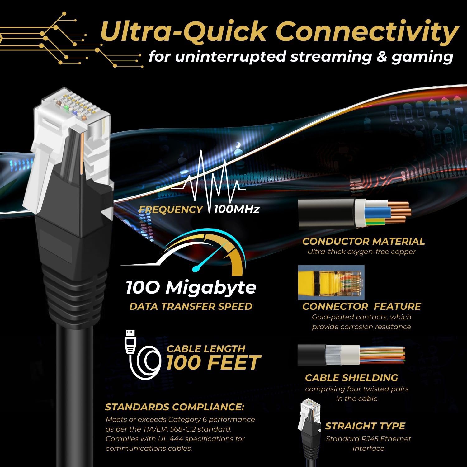 TNP Cat 5e Ethernet Cable 100ft, Cat 5 Internet Patch Cable Cat5e Cable RJ45 Connector LAN Network Cable Cat5 Wire Patch Cord Snagless Computer Ether Wire (100 Foot Black)