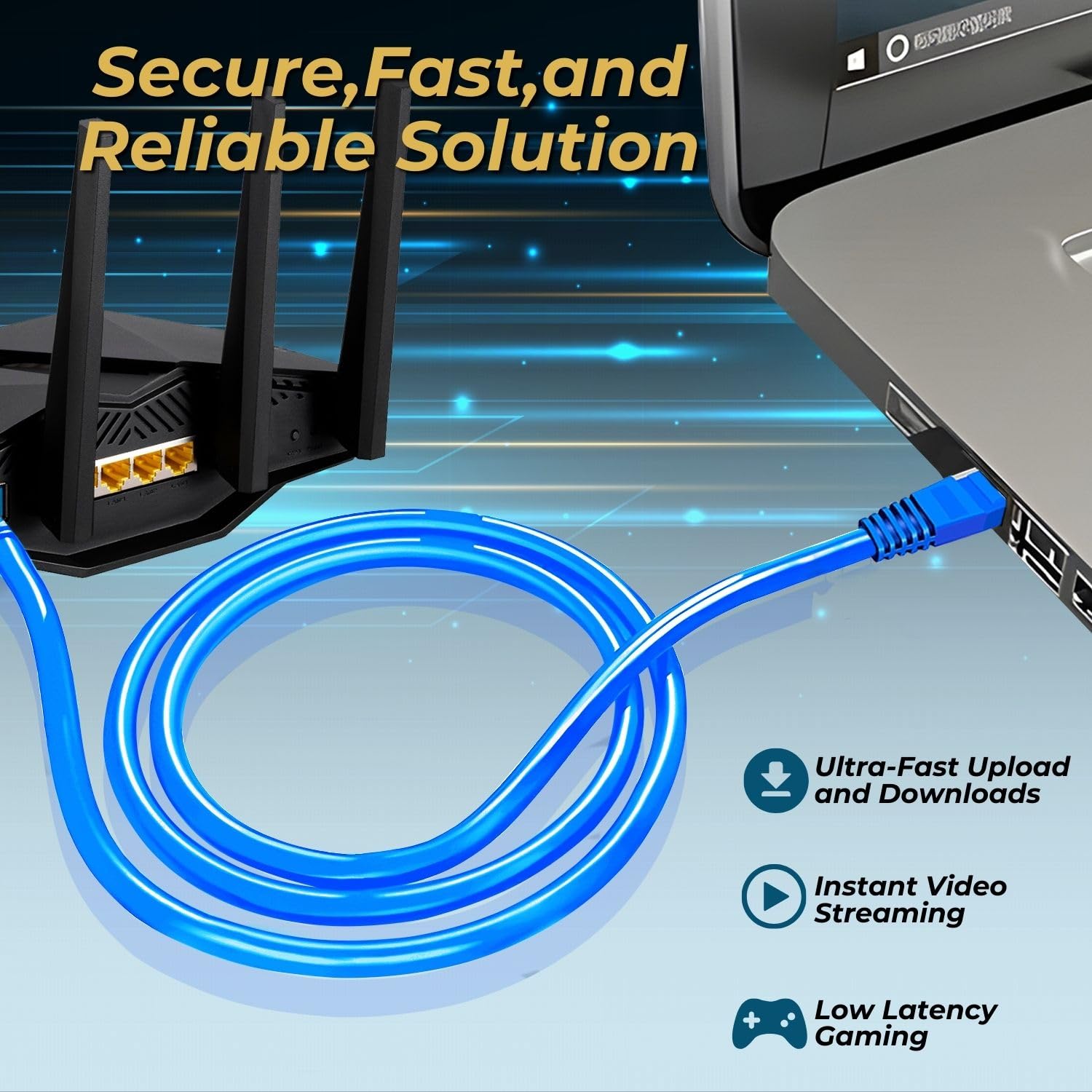 TNP Cat 5e Ethernet Cable 10ft, Cat 5 Internet Patch Cable Cat5e Cable RJ45 Connector LAN Network Cable Cat5 Wire Patch Cord Snagless Computer Ether Wire (10 Foot Blue)