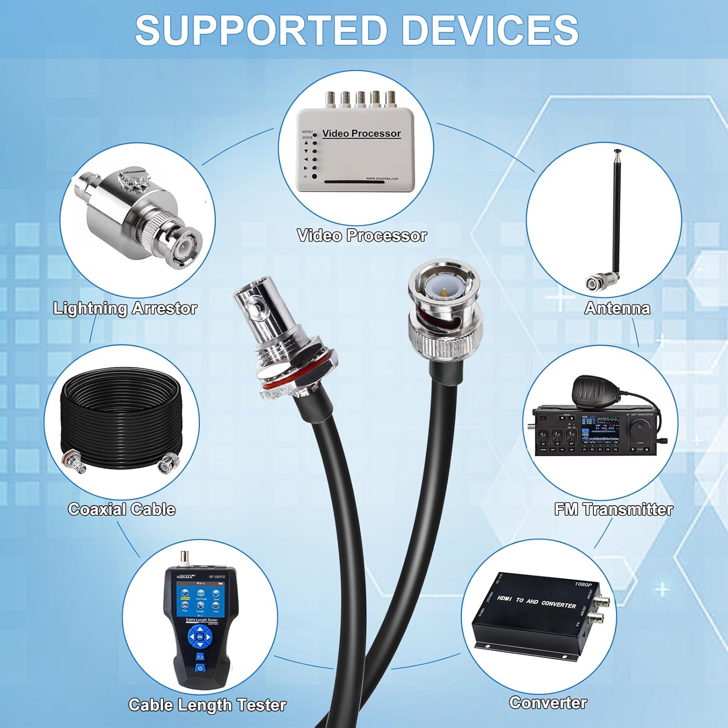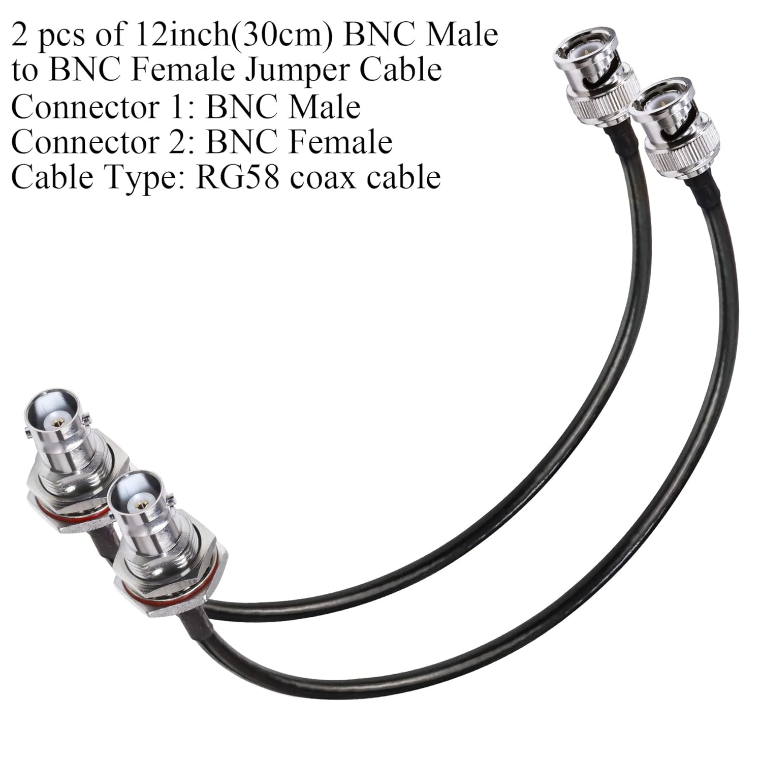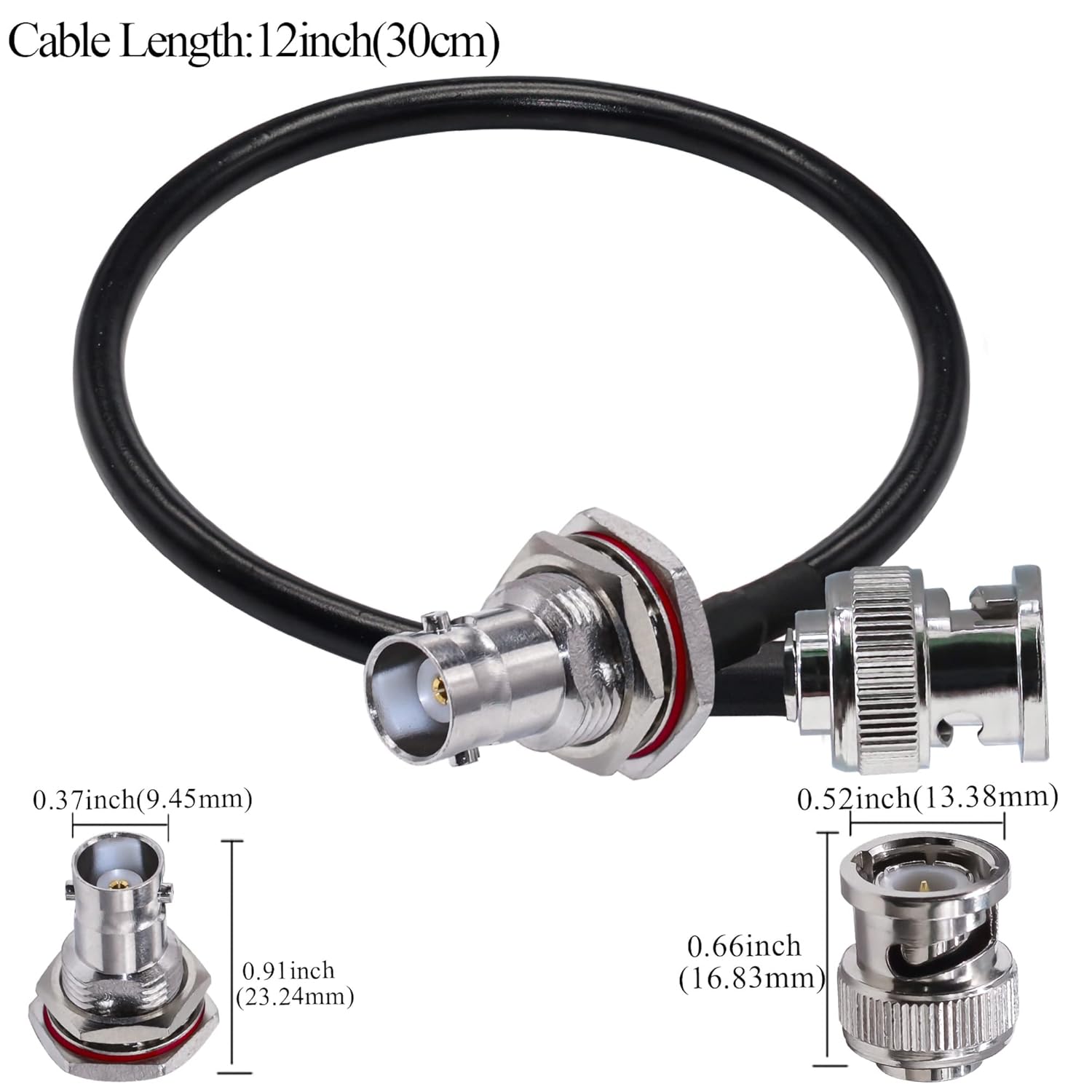 TUOLNK BNC Jumper Cable RG58 BNC Male to BNC Female Bulkhead Low Loss 50 ohm CB Radio Coax Cable 12inch (30cm) Wifi Antenna Extension Cable for HAM Radio Antenna 2 Pack