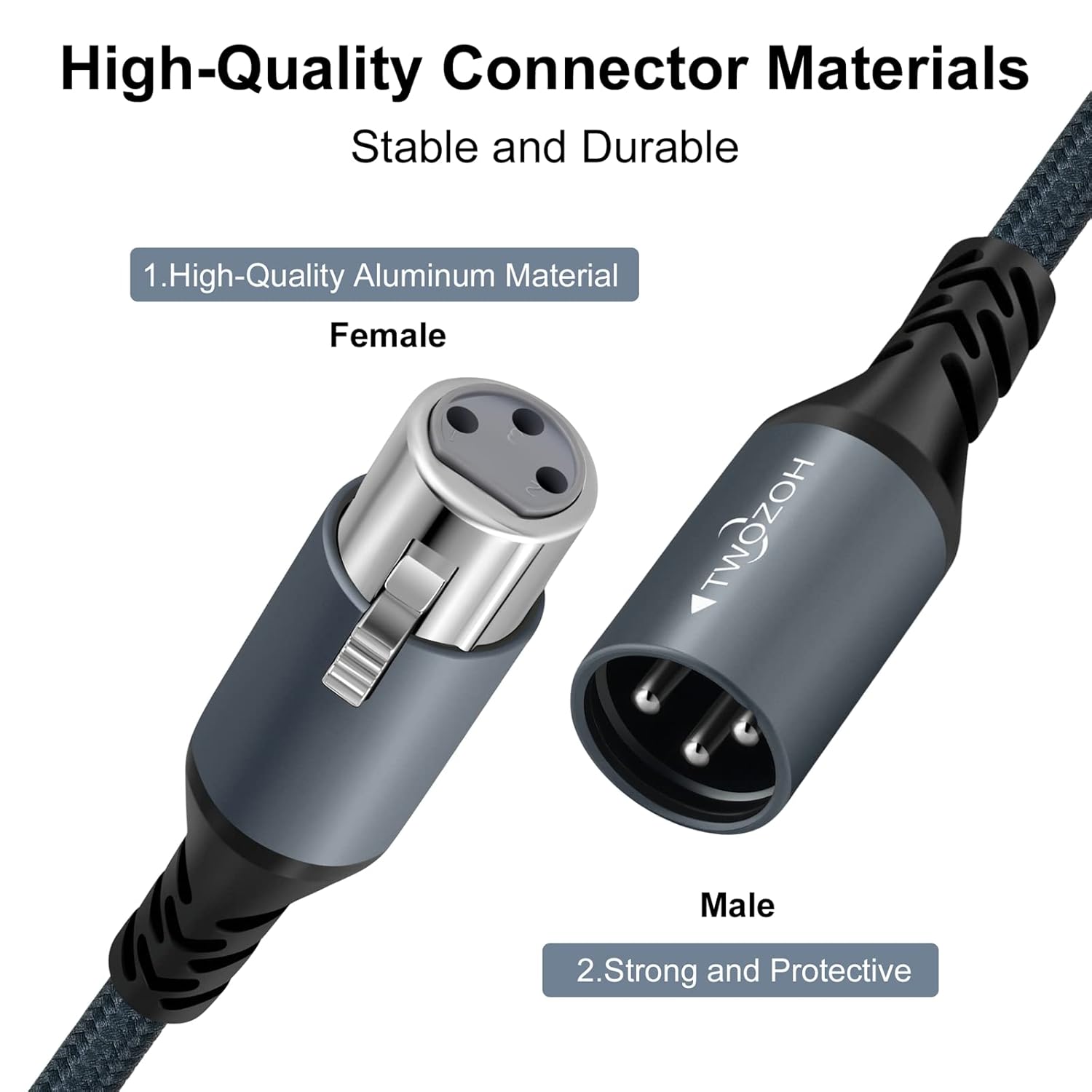 Twozoh XLR Male to Female Audio Cable 5M 2 Pack, Braided Balanced 3Pin XLR Microphone Cable (Professional/HIFI)