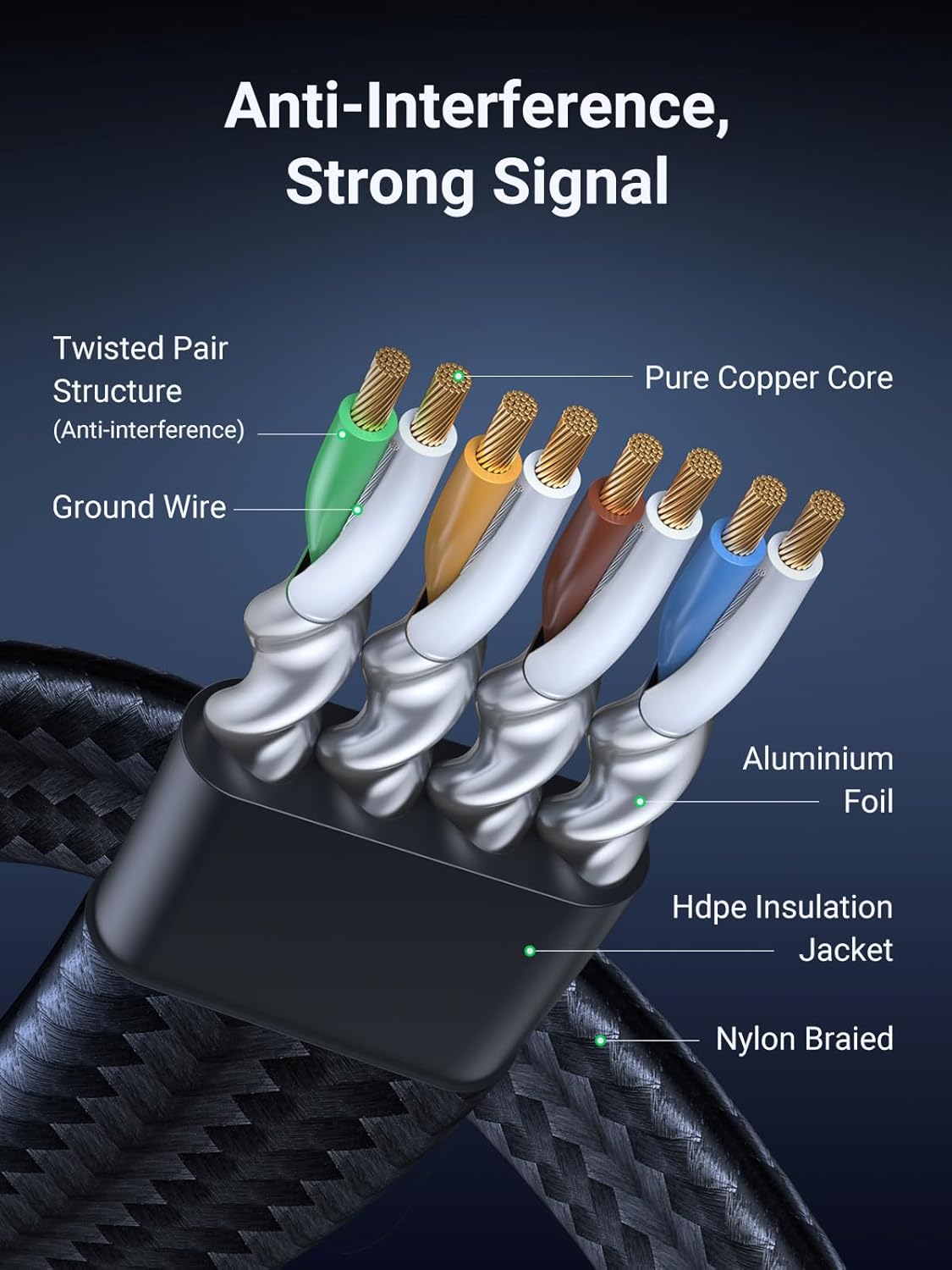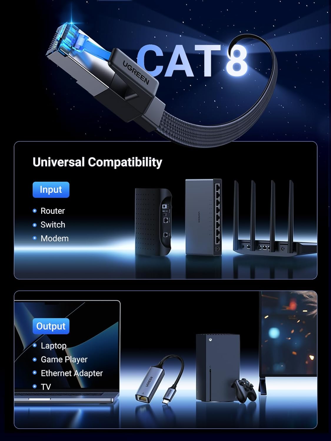 UGREEN Ethernet Cable 2M, Cat 8 Internet Cable Flat High-Speed 40Gbps 2000Mhz Network Cable, Gigabit Braided RJ45 LAN Cable Patch Cord Compatible for PC/Laptop, PS5, Xbox, Modem, Router, Switch, TV