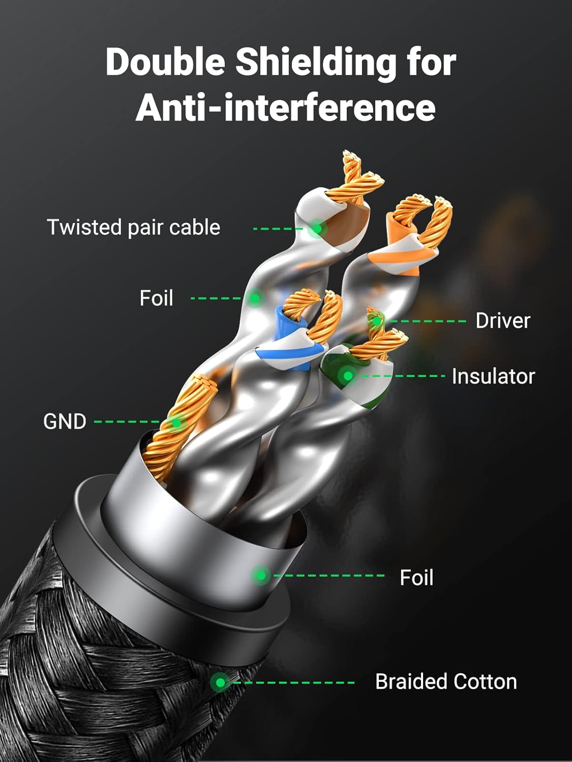 UGREEN Ethernet Cable 3M, Cat 8 Internet Cable High-Speed 40Gbps 2000MHz RJ45 LAN Cable, F/FTP POE Braided Gigabit Network Cable Compatible with Xbox/Switch/PS5/WiFi Extender/Router/Modem Patch Panel