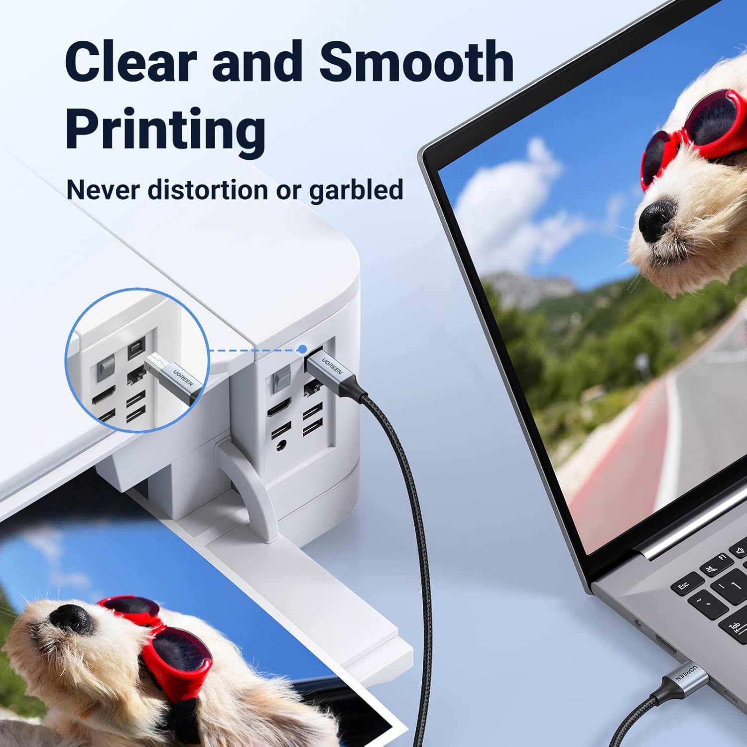 UGREEN USB A to B Printer Cable,Braided USB 2.0 Type A to USB B Male Lead,High Speed Data Cable Compatible with All USB Type B Devices Epson/HP/DeskJet/Envy/Lexmark/3D/Dell/Brother/DAC/Scanner (1M)