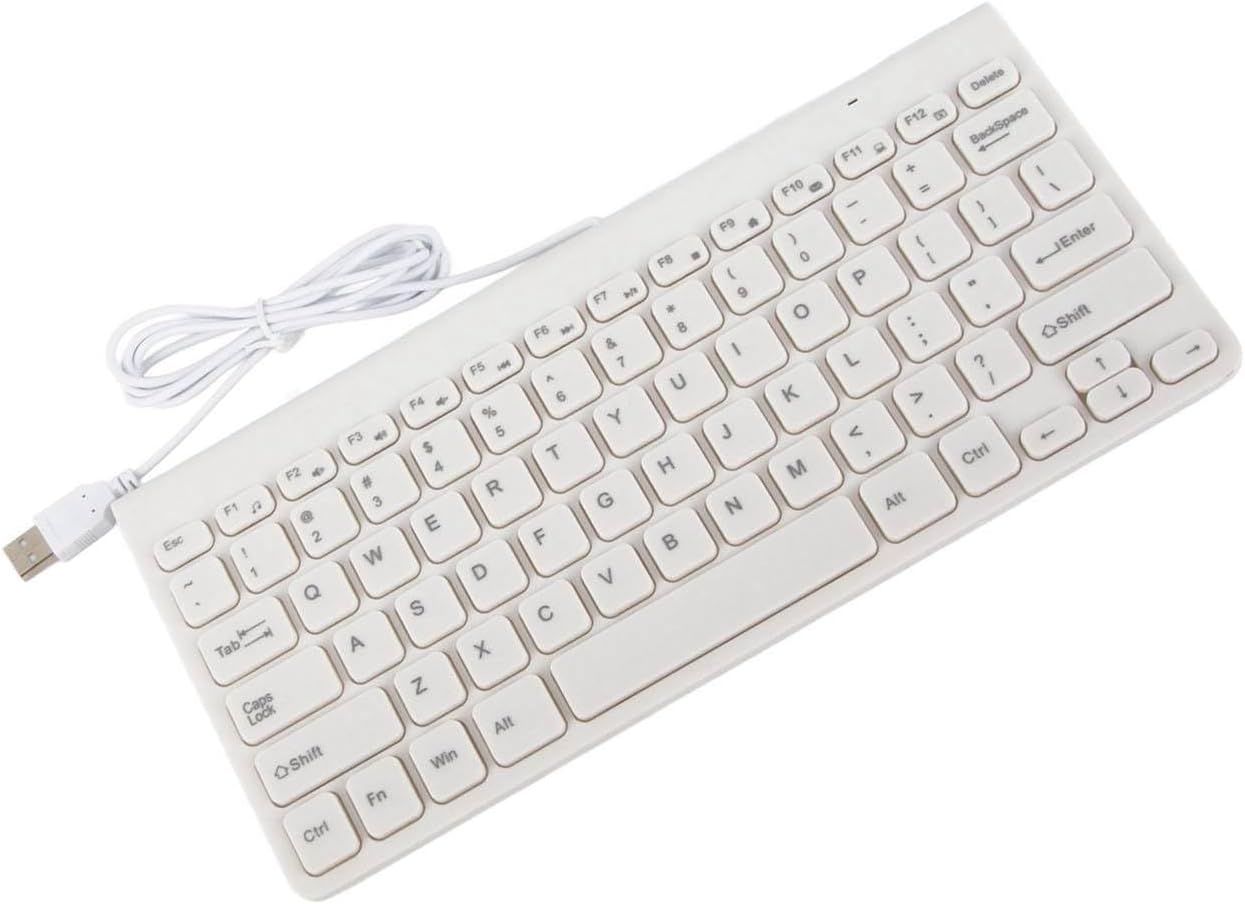 Ultra Thin USB Wired Keyboard Mouse Set Combo for PC Laptop, Compact Design, Plug and Play, 1. Durable Cable, Lightweight and Comfortable (White)