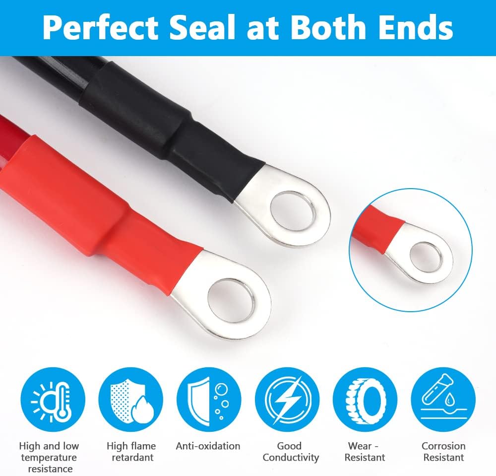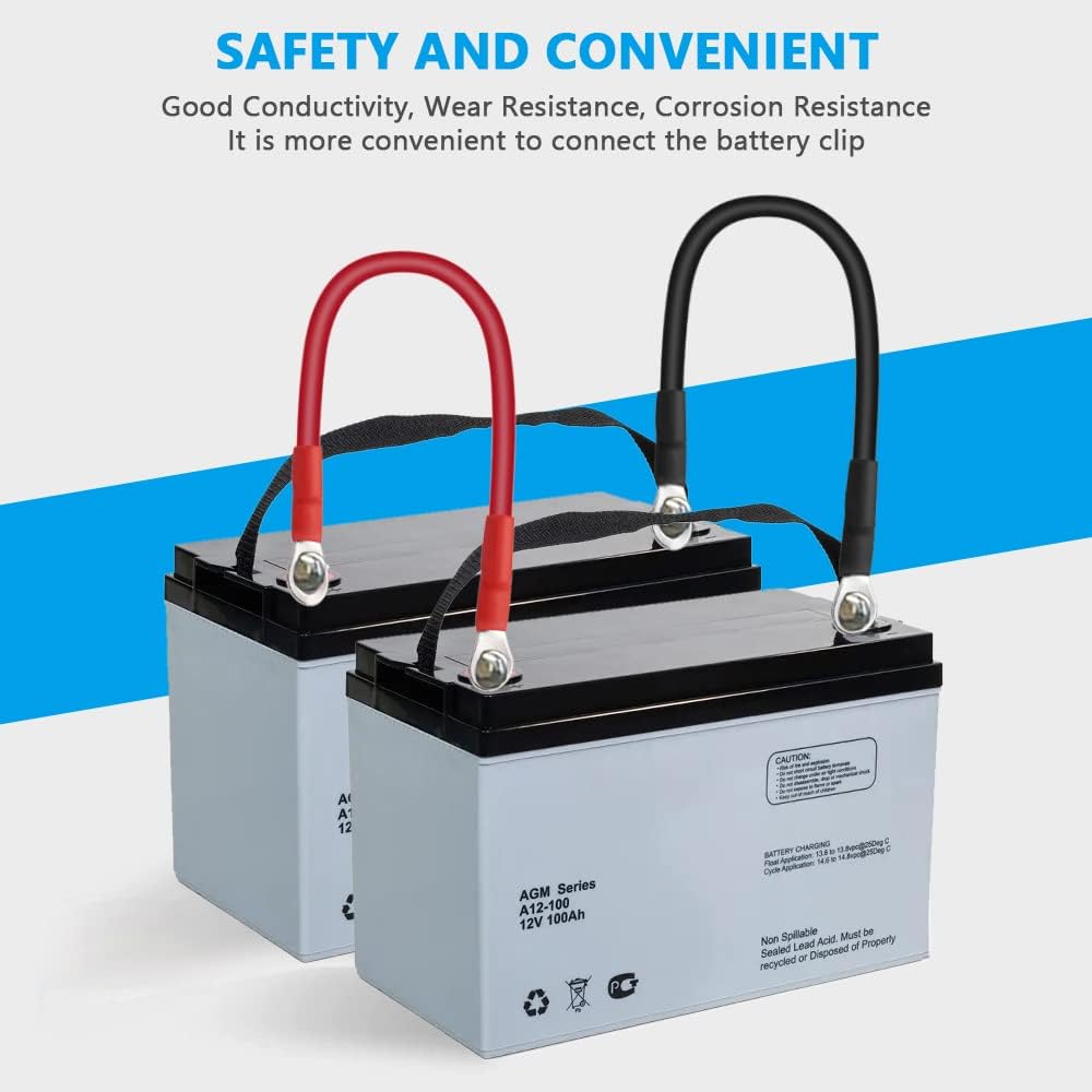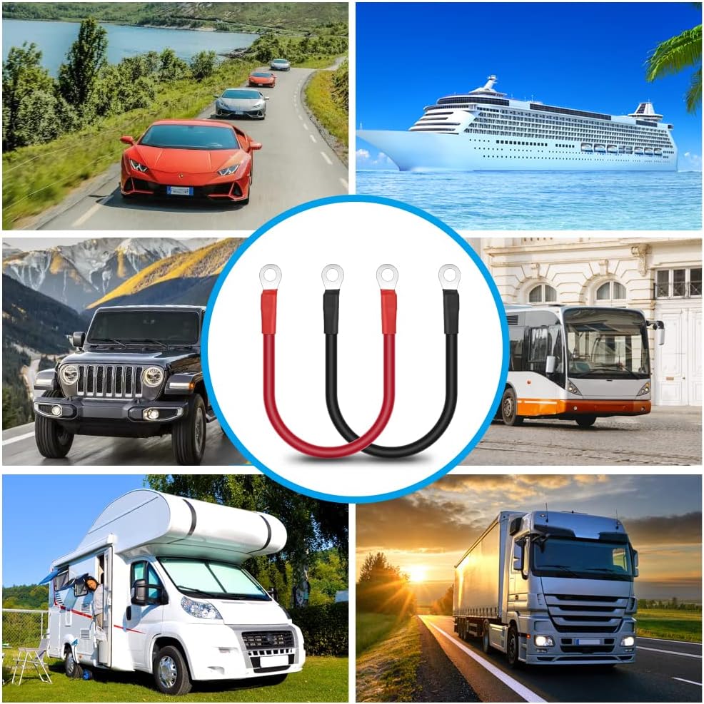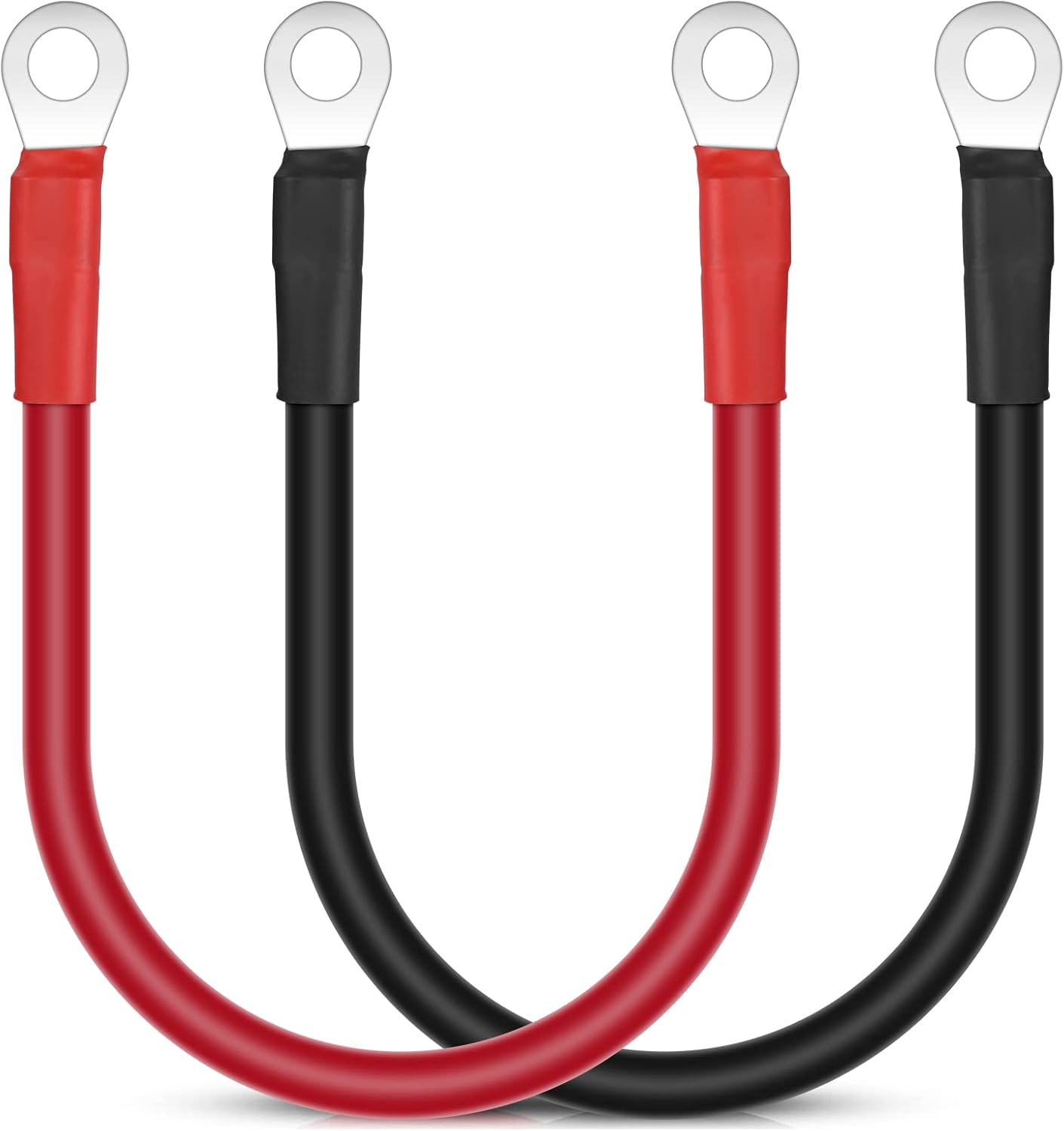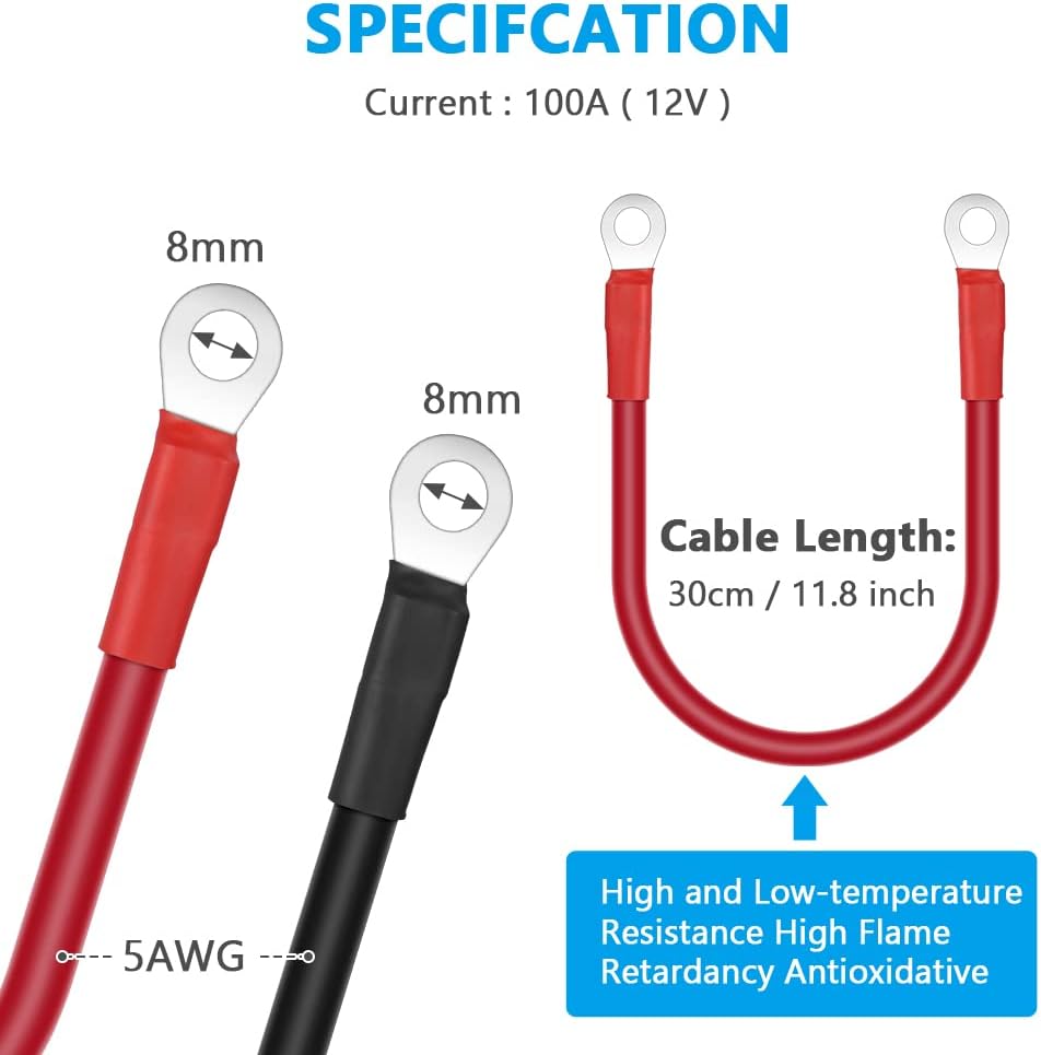 URAQT 30cm Car Battery Cable, 2Pcs 16mm² 5AWG Battery Cable Red and Black Inverter Cable, M10 Car Battery Jump Leads 12V Heavy Duty Copper Wire for Auto, Truck, Motorcycle, Solar, RV, Marine