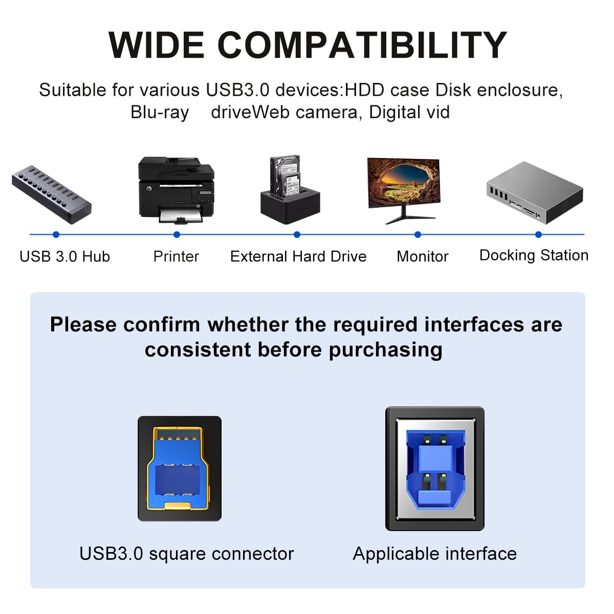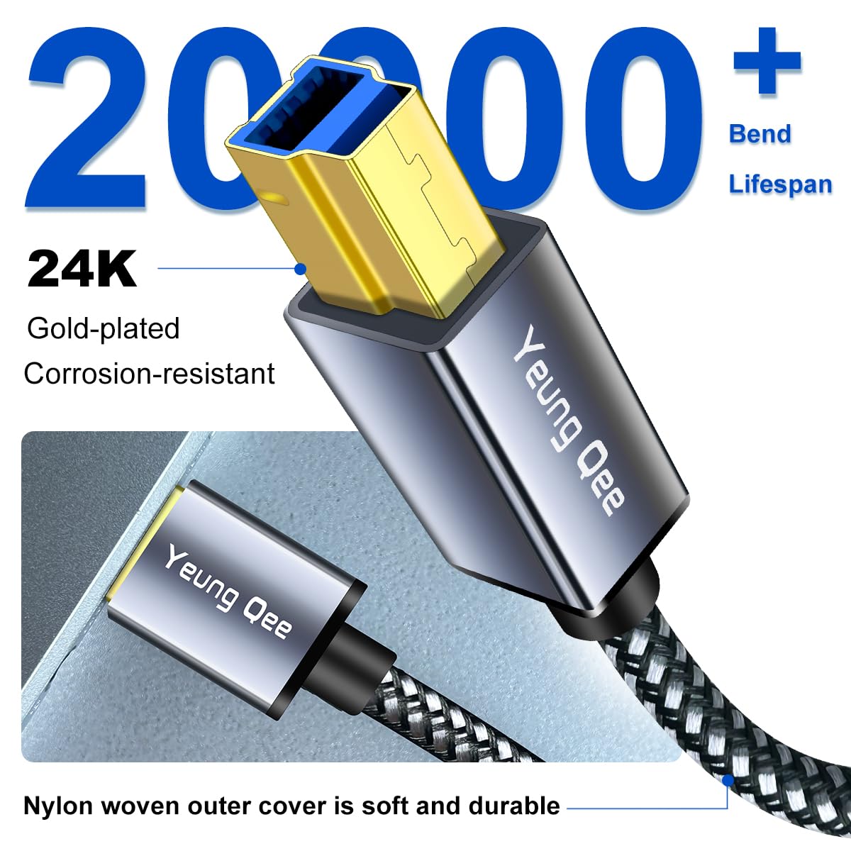 USB 3.0 A to B Cable 0.5M,Nylon Braided USB 3.0 Cable Type A Male to B Male Printer Cord Compatible with Docking Station, External Hard Drivers, Scanner and More (0.5M)