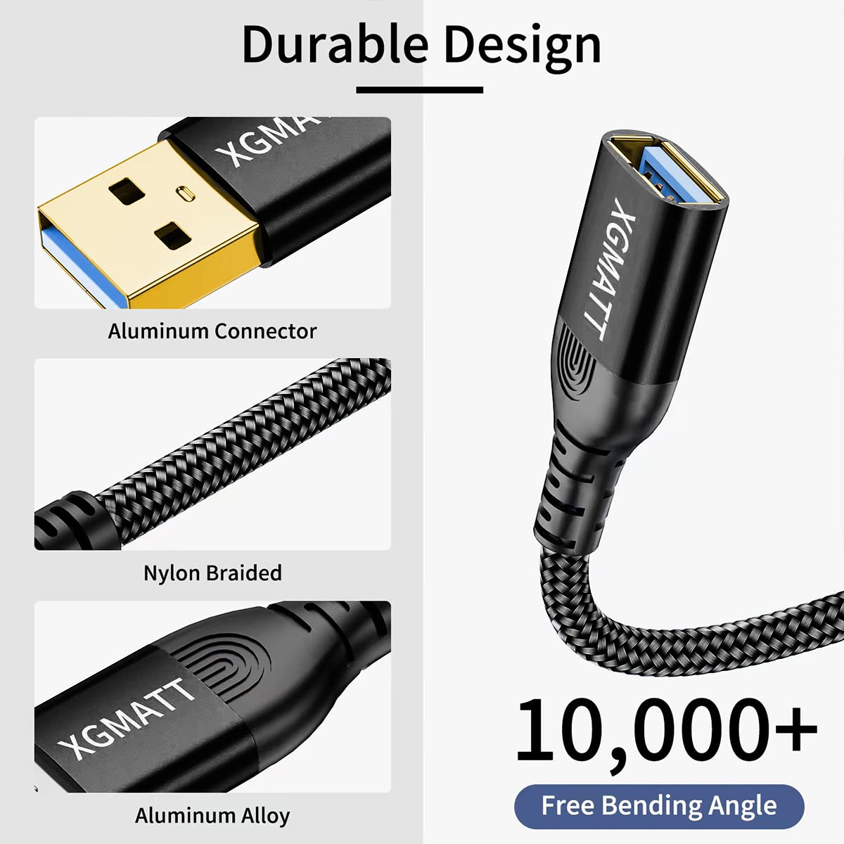 USB 3.0 Extension Cable (1M-2pack), USB Type A Male to Female 5Gbps Data Sync USB Extender Cord Compatible with Printer, Scanner, Keyboard,HTC Vive,Card Reader,Camera, Oculus Rift,PS VR,Black