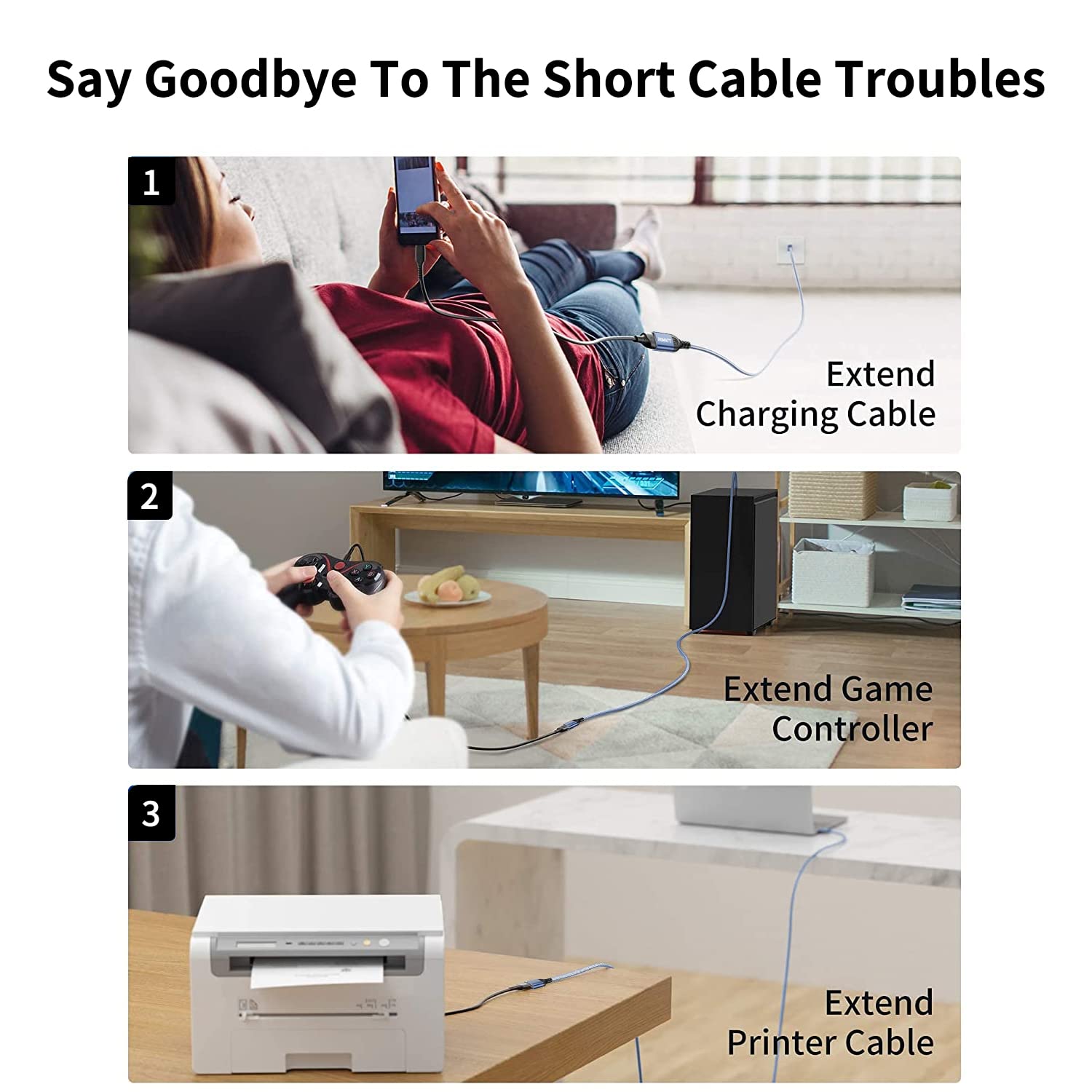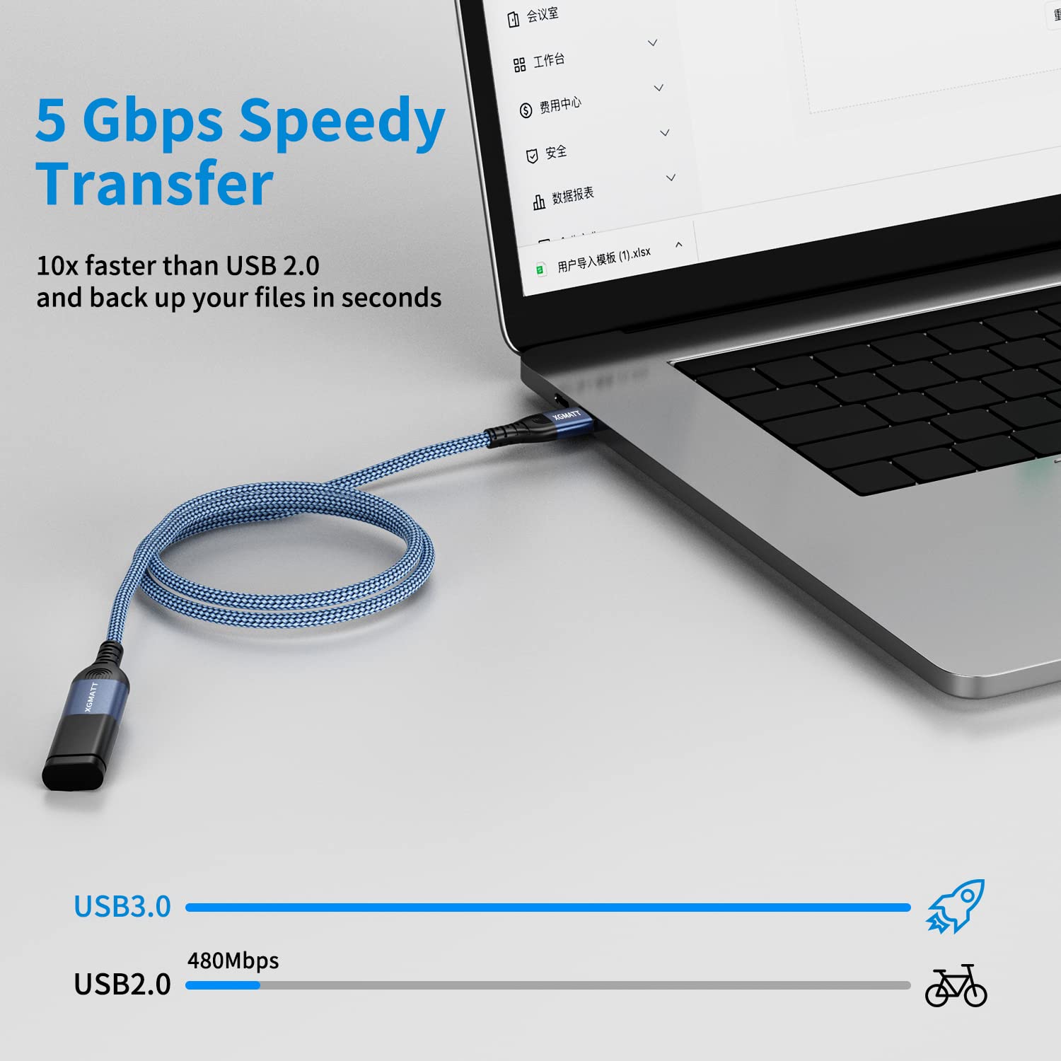 USB 3.0 Extension Cable (2M-2pack), USB Type A Male to Female 5Gbps Data Sync USB Extender Cord Compatible with Printer, Scanner, Keyboard, Oculus Rift,PS VR,HTC Vive,Card Reader,Camera,Blue