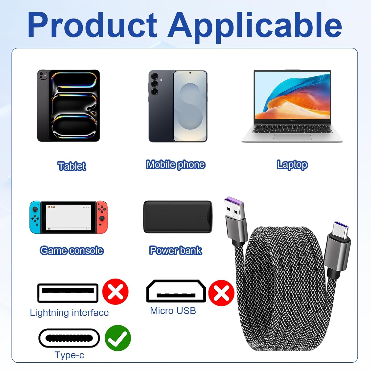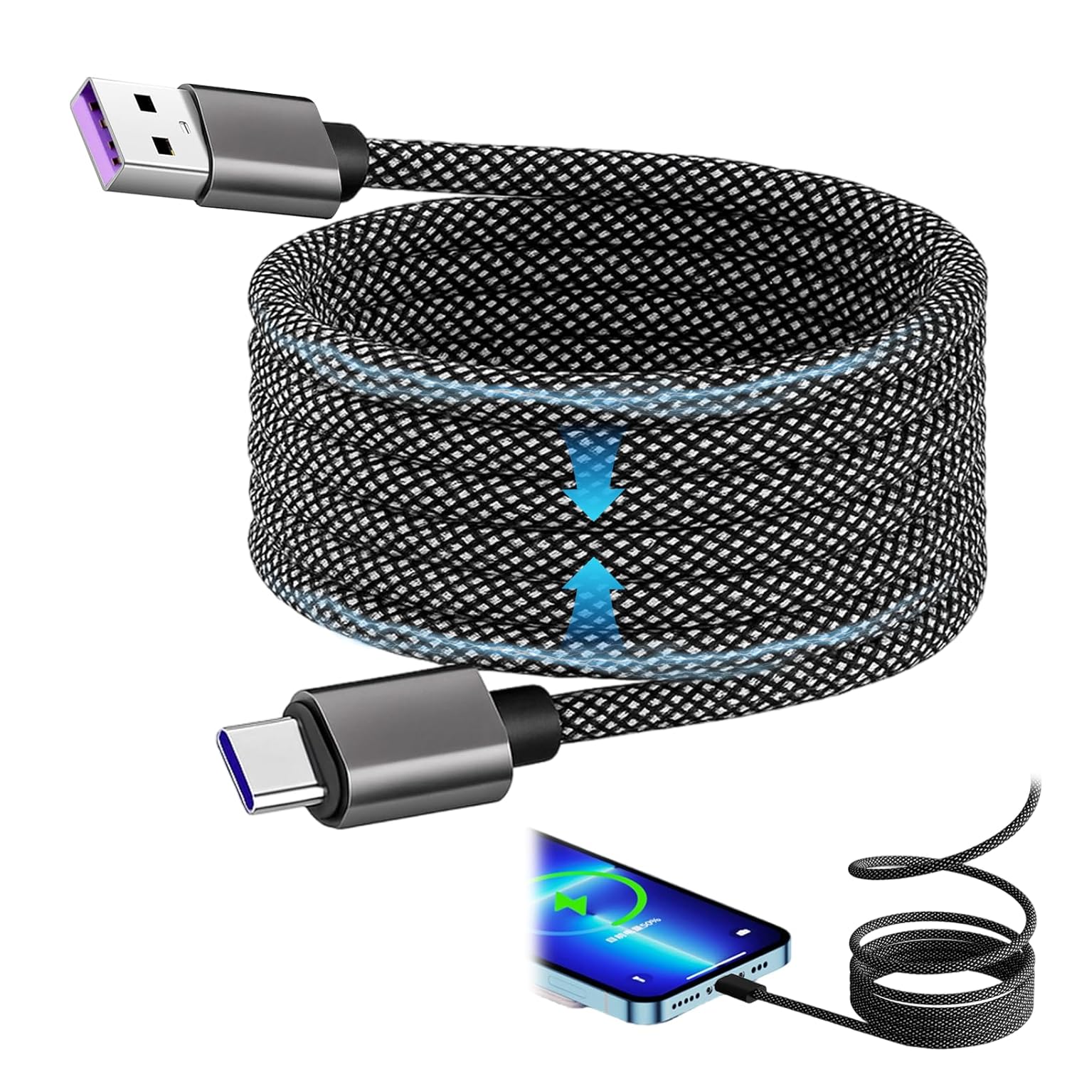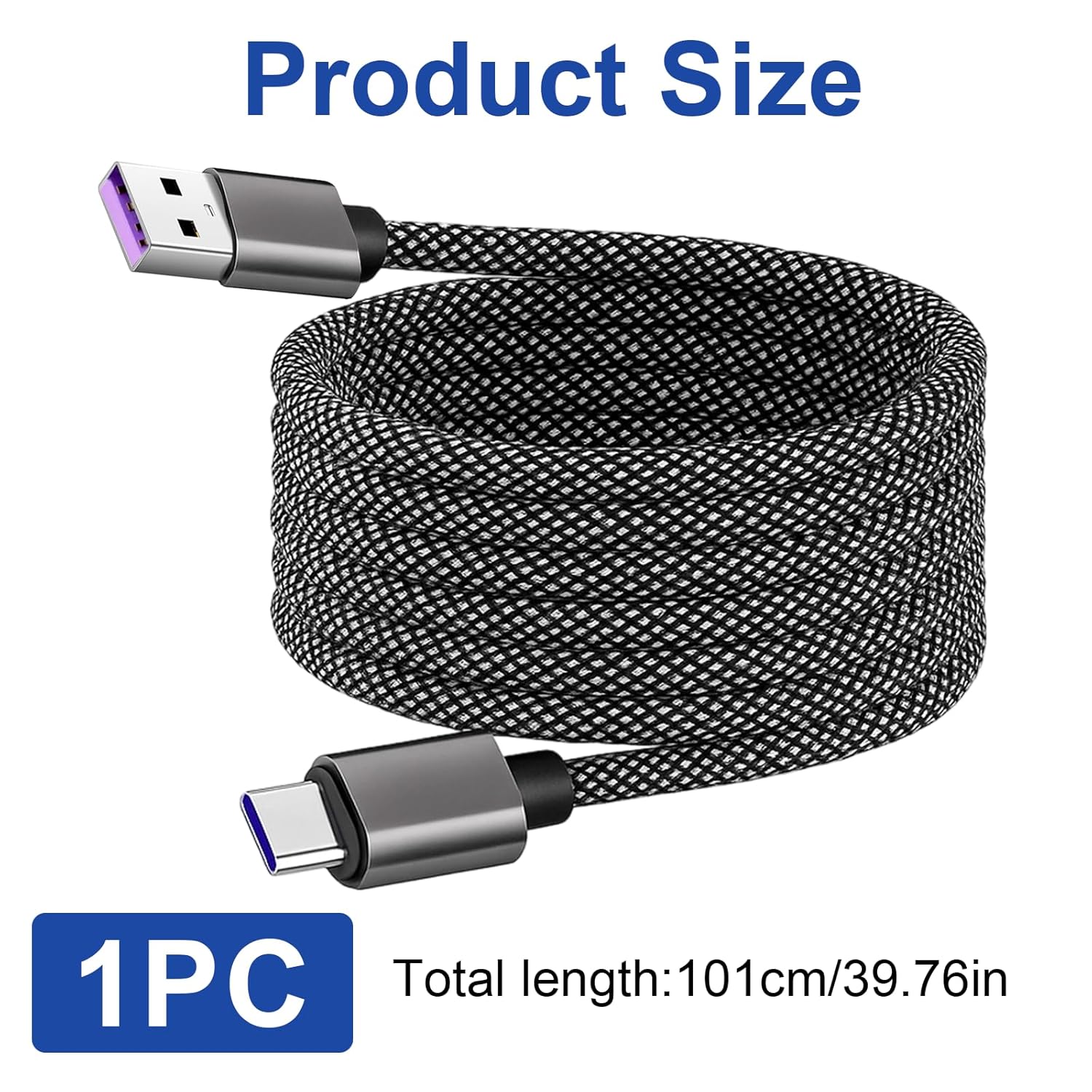 USB A to USB C Magnetic Fast Charging Cable 3.3ft Retractable Coiled Type C Charger Cord 100W Quick Charge Flexible Nylon Cable Compatible with Phone 15 Pro Max, Galaxy, Pad