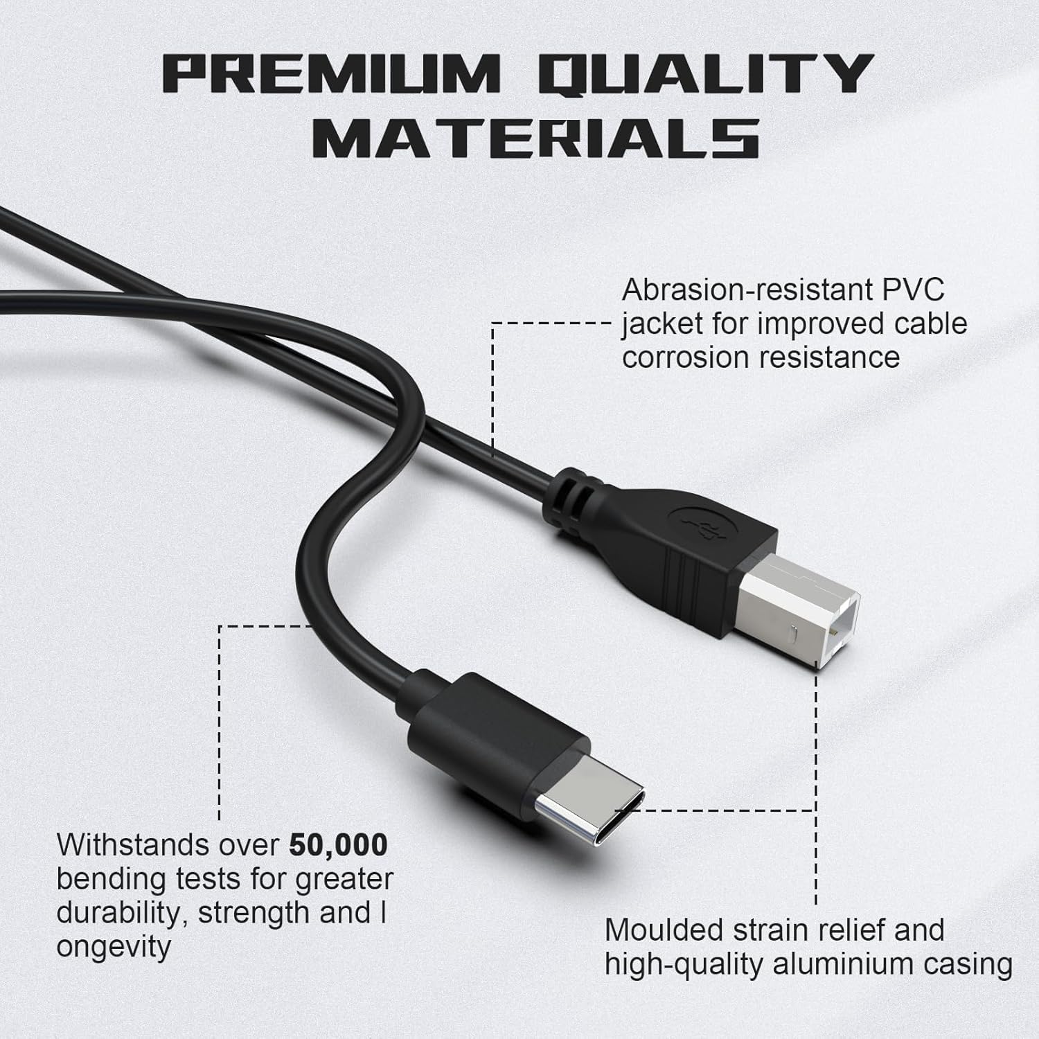 USB B to USB C Printer Cable 1.5M – USB C to USB B Midi Cable – For Printers, Scanners, Digital Pianos, and MIDI Controllers (Black)