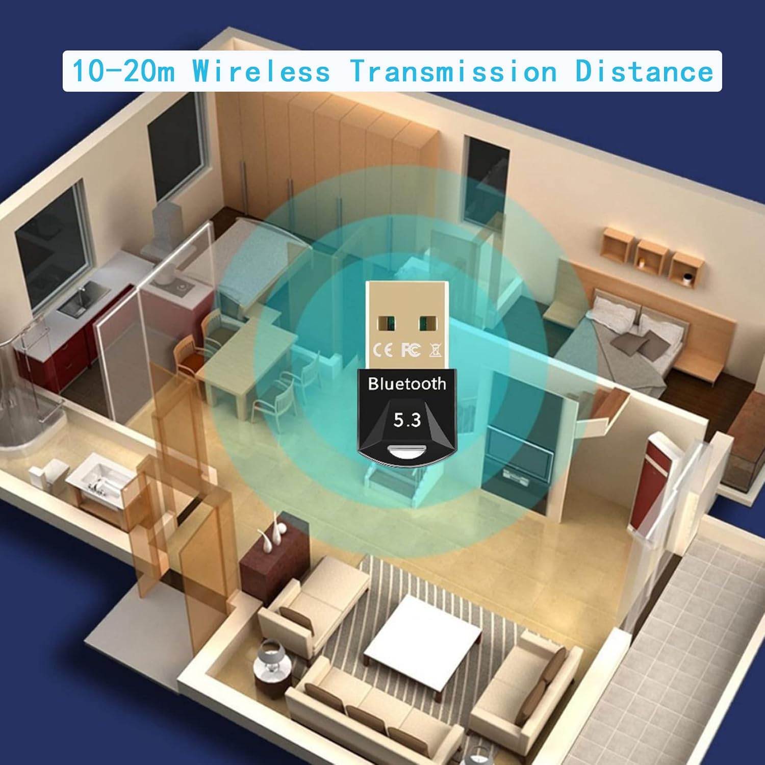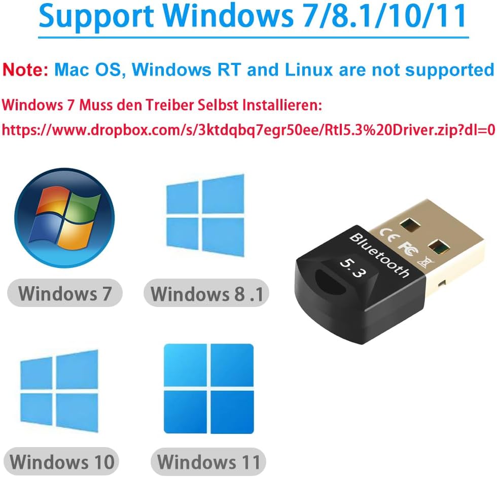 USB Bluetooth Adapter 5.3, Multi-Device Connection, Compatible with Windows 11/10/8.1, No Driver Required, For Game Controller, Headset, Phone, Keyboard, Mouse