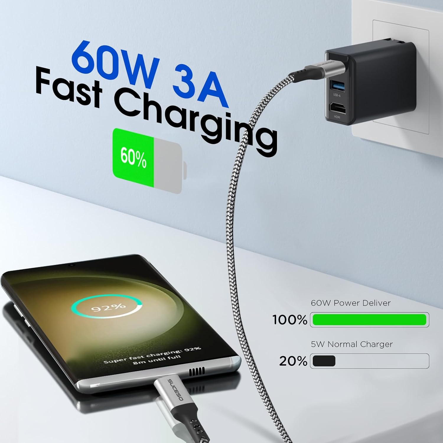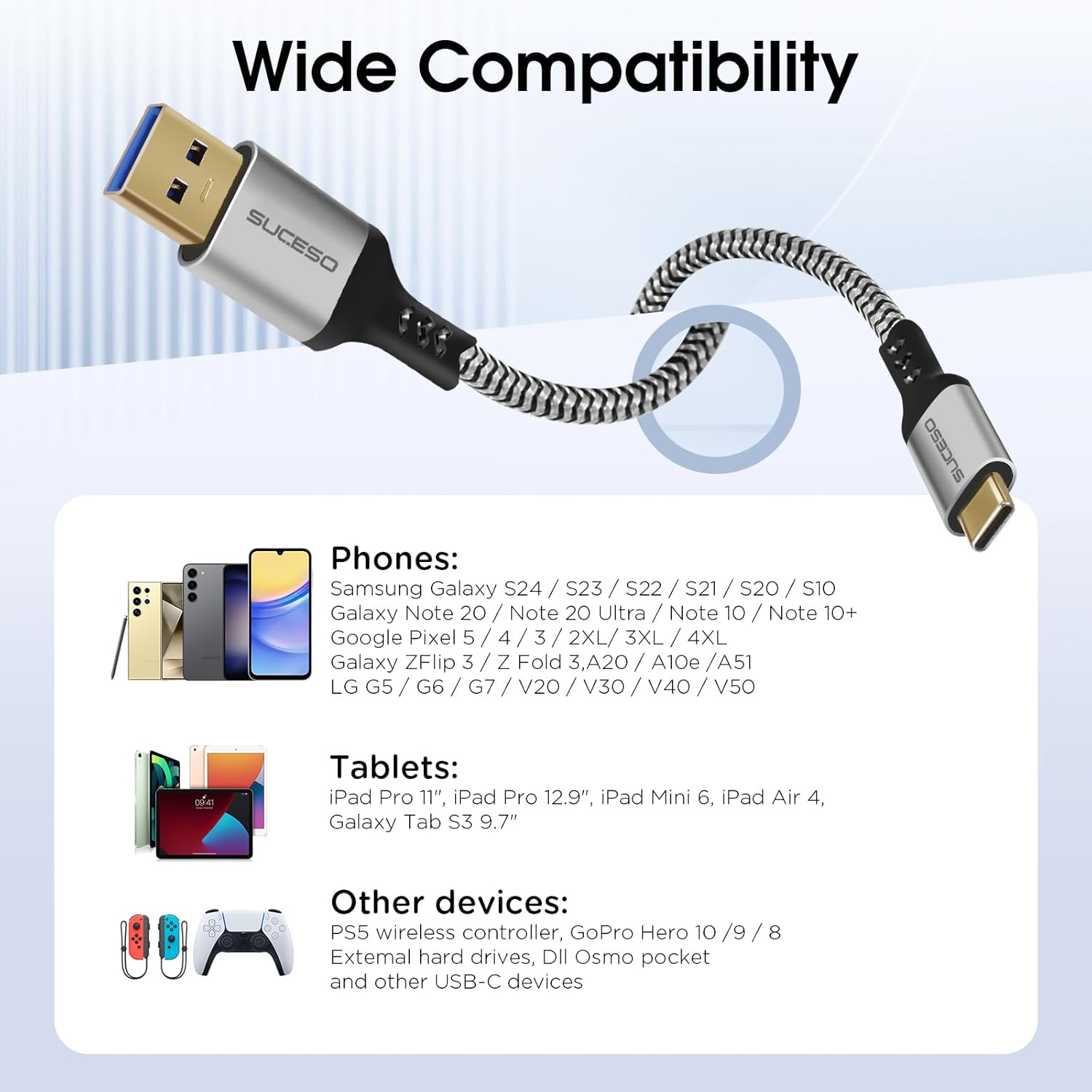 USB-C to USB 3.1 Gen2 1.6FT Data Cable – 10Gbps Transfer & 60W Fast Charging for Galaxy S23/S22, PS5, Huawei, LG V20, Pixel 7, External SSD, CarPlay, Android Auto