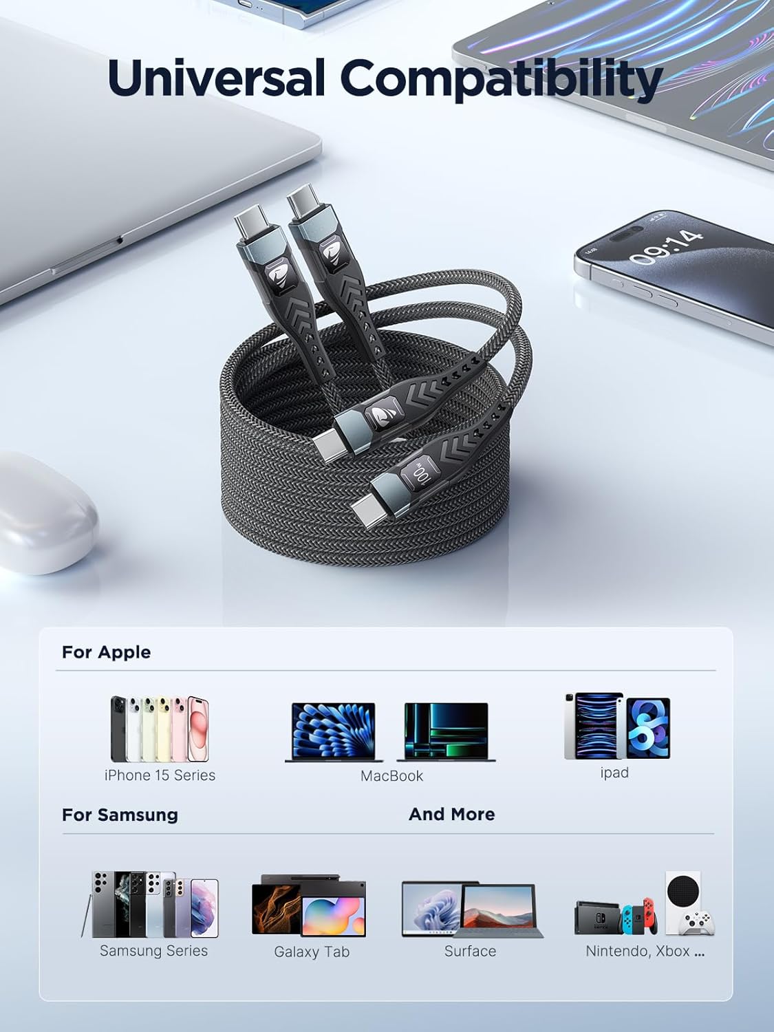 USB C to USB C, 100W 5A Fast Charging Cable [2Pack/2M] USB Type C Charger Fast Charge Lead Usbc to Usbc Cable for iPhone 15 16 17 Pro Max Plus iPad Pro MacBook Samsung Galaxy S23 S22 S24 S25 Ultra etc