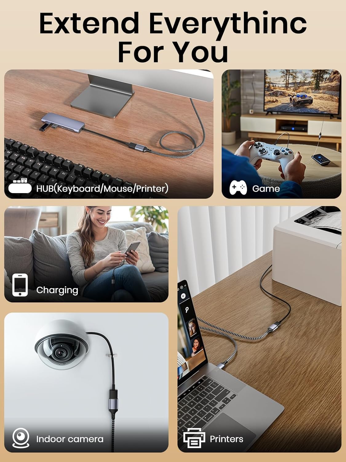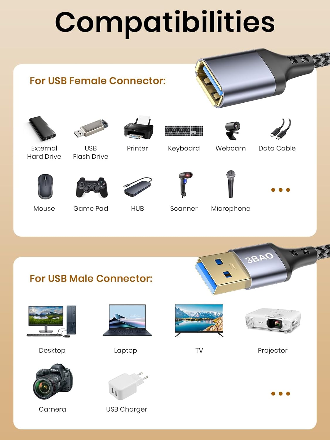 USB Extension Cable 2M, USB3.0 A Male to A Female Cable USB Extension Lead High Speed Data Transfer Compatible for Printer, Scanner, Camera, Keyboard, Card Reader, Hard Drive,Disk