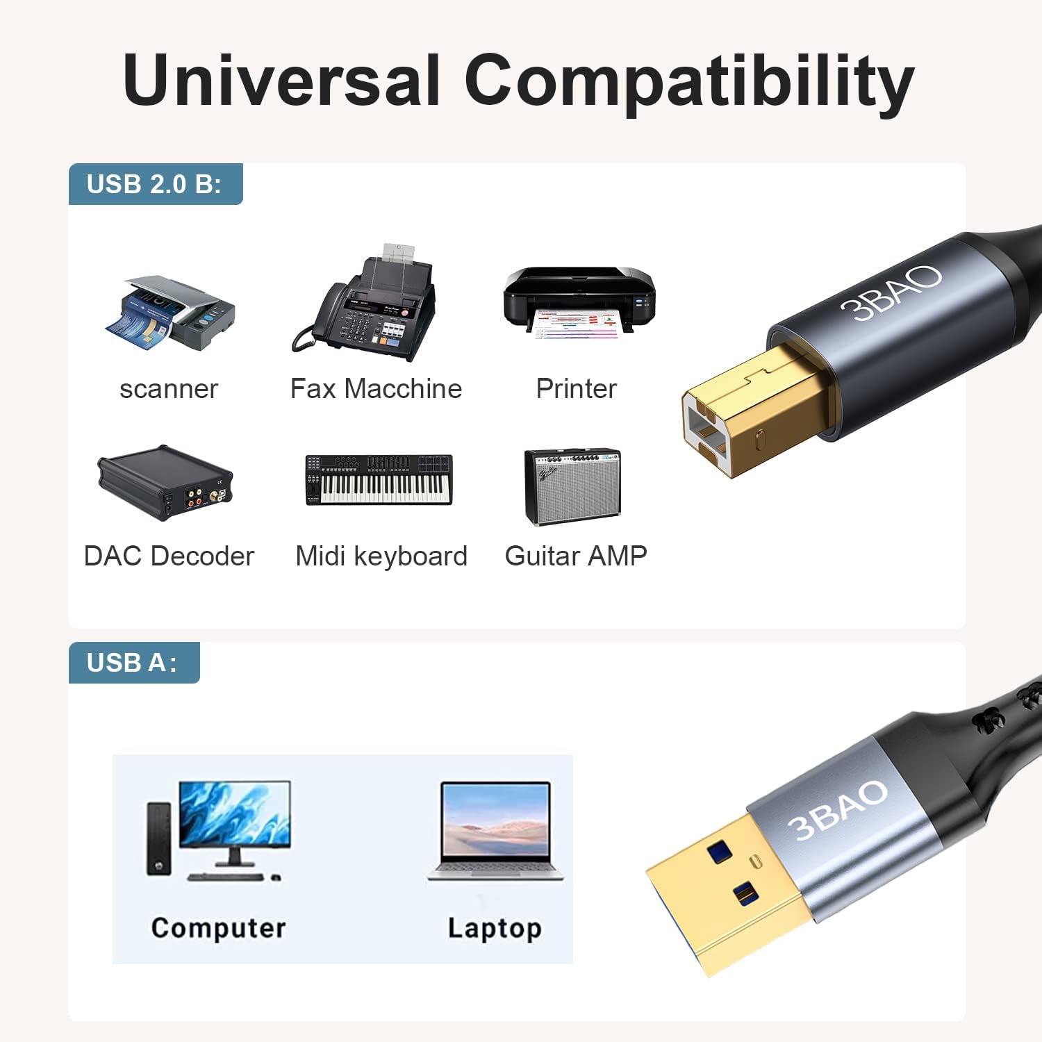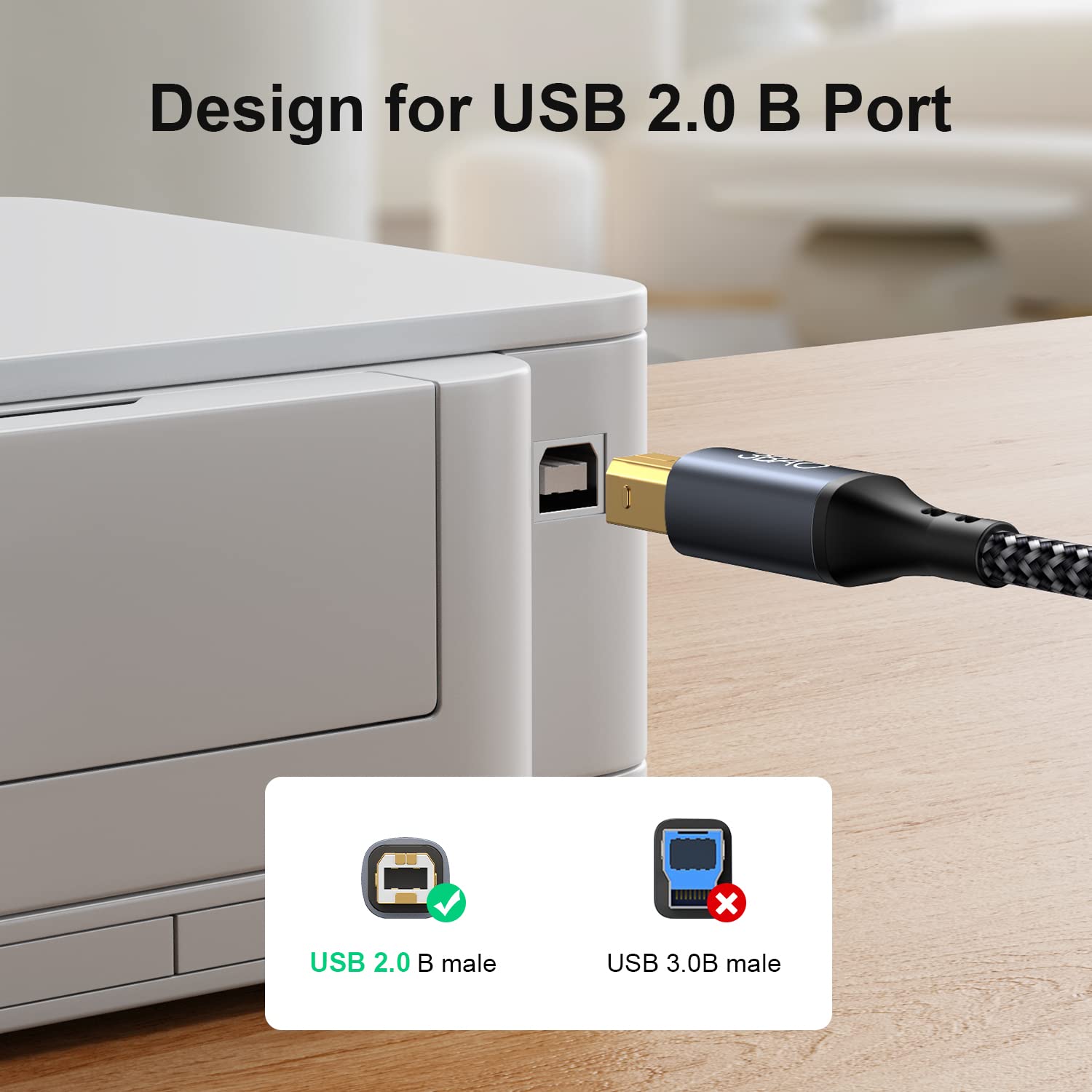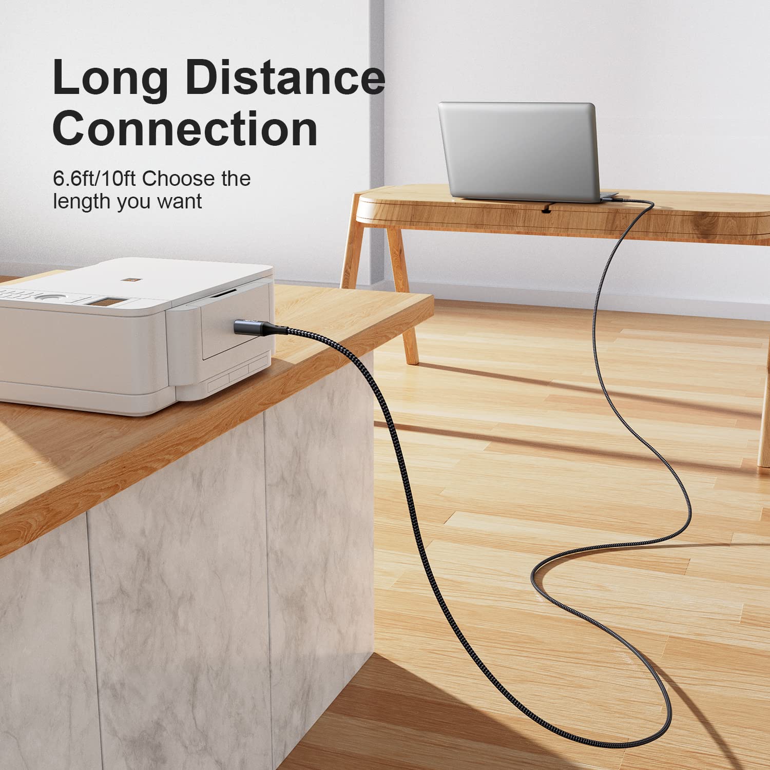 USB Printer Cable 3m, USB 2.0 Type A Male to B Male, Scanner Cord Nylon Braided USB Printer Cable for HP/Dell/Canon/Lexmark/Xerox/Brother/Samsung etc.