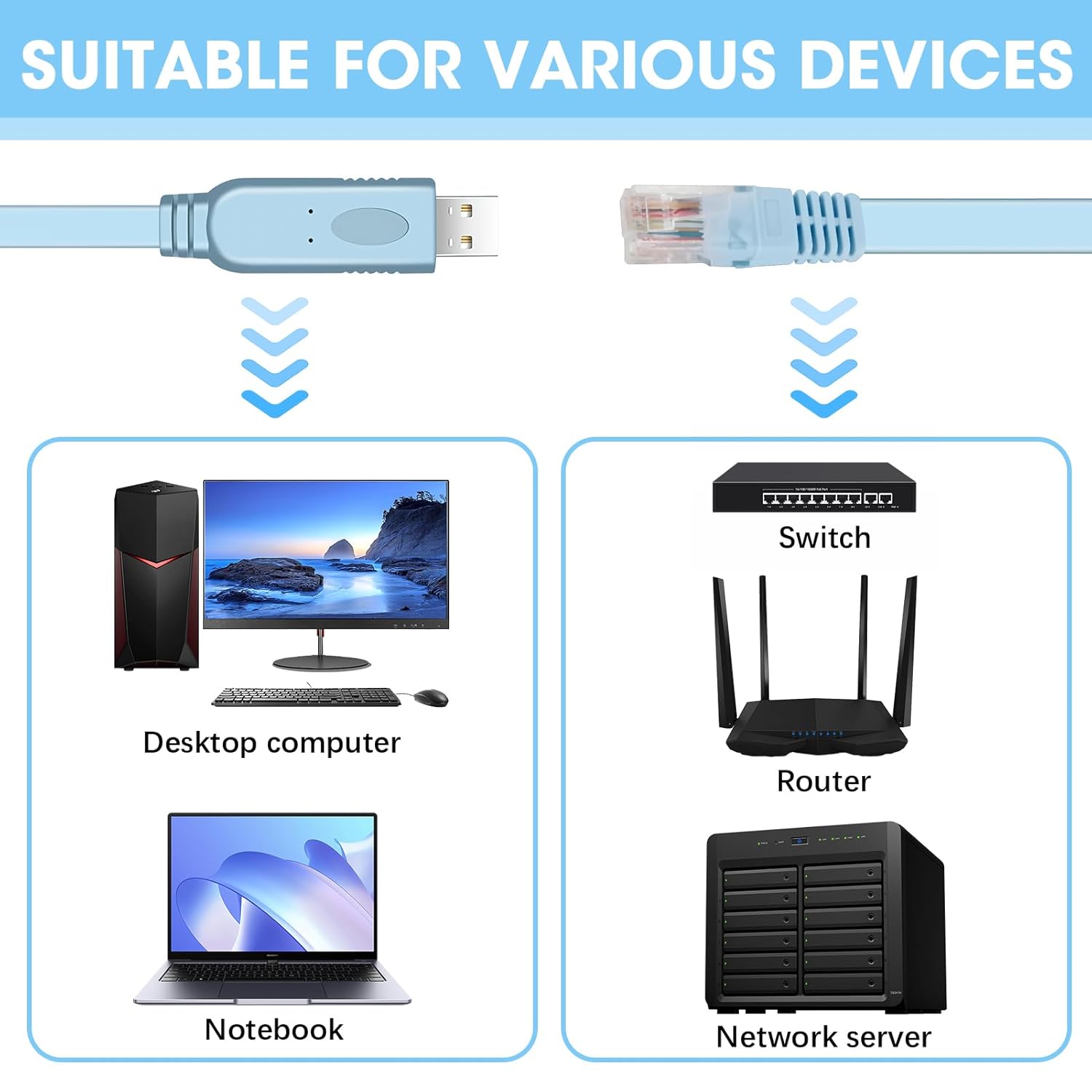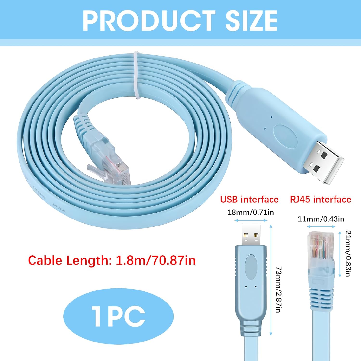 USB to RJ45 Cable for Cisco Console 1.8m with PL2303RA Chip Shielded RS232 Serial Cable for Routers Switches Windows/Mac/Linux Compatible with Cisco, Huawei, HP Networking Equipment, 6Ft Type-A