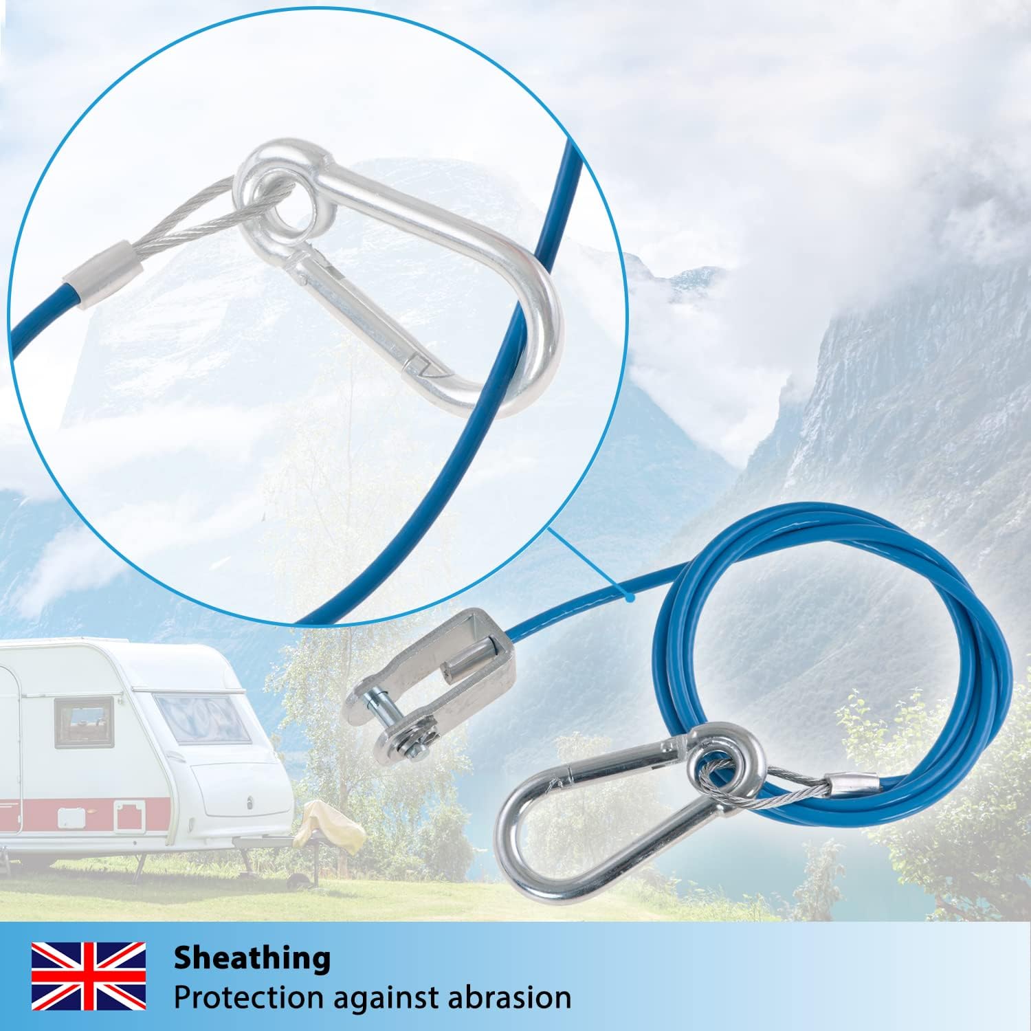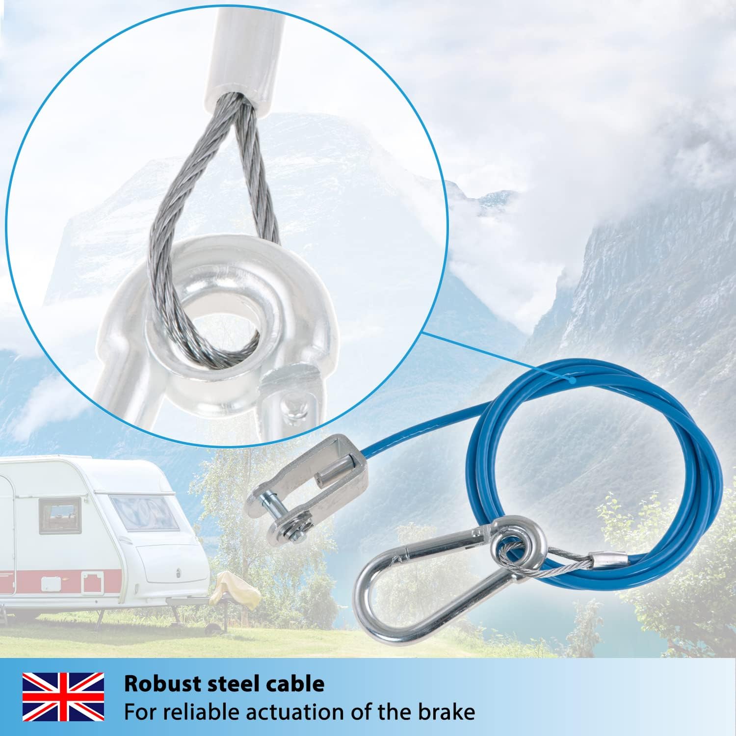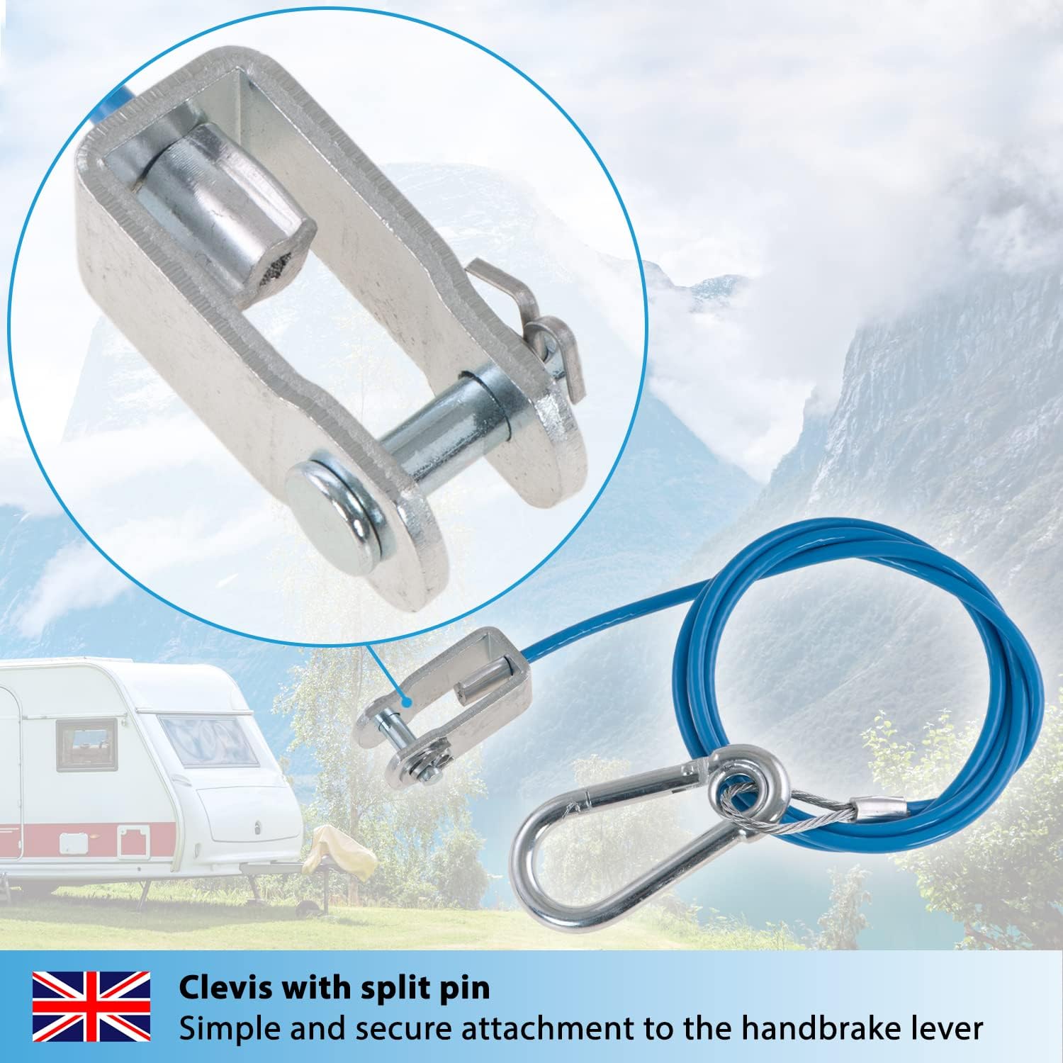 valonic breakaway cable for trailers and caravans, 1m, blue, with carabiner, 250kg breaking load, breakaway cable with fork head (shackle), ripcord