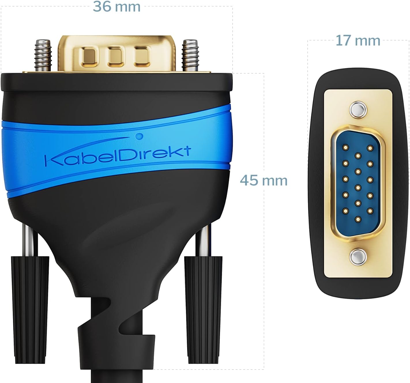 VGA cable – 5m – for maximum video quality thanks to high-purity copper conductors (Full HD, VGA to VGA monitor cable & VGA lead, connects computers to screens/projectors, 15-pin D-Sub) KabelDirekt