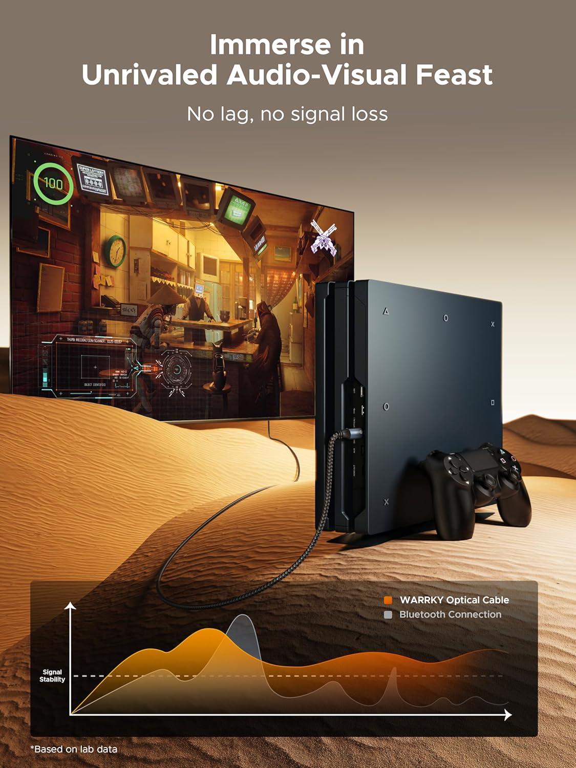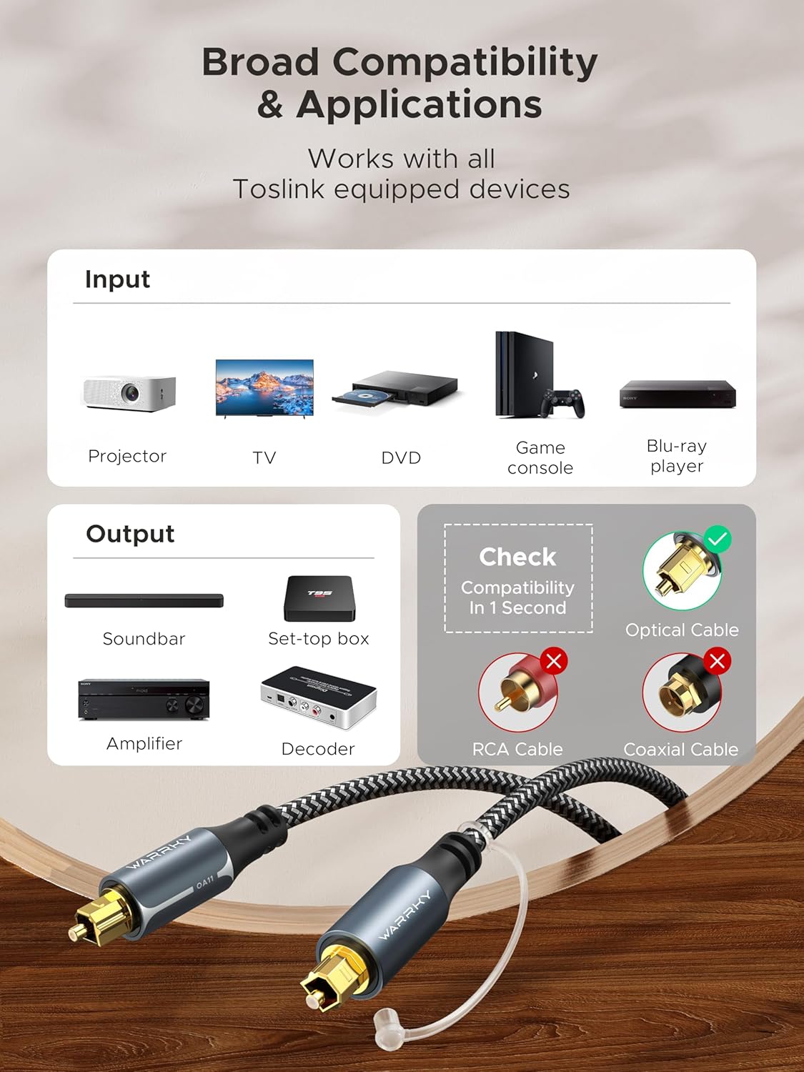 WARRKY Optical Cable for Soundbar to TV, Optical Cable, 1.8M / 6FT [Alloy Case, Nylon Braided, 24K Gold-Plated] Digital Optical Audio Cable Toslink, Compatible with Samsung, LG, Sony, Xbox etc.