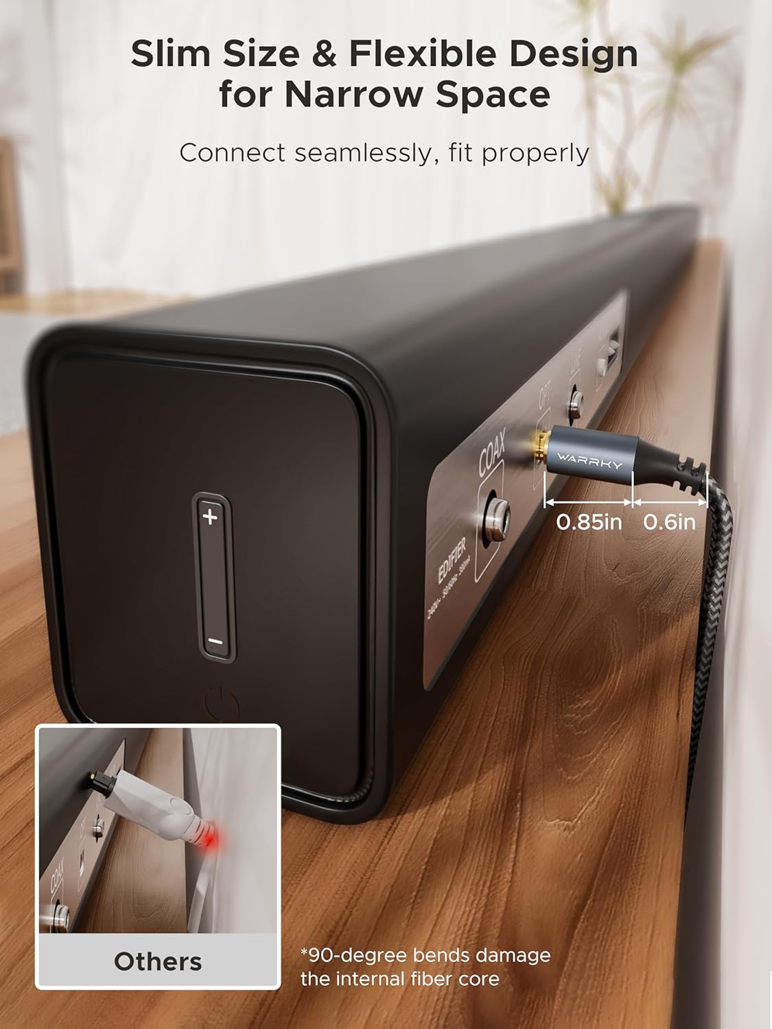 WARRKY Optical Cable, Optical Cable for Soundbar to TV, 1M / 3.3FT [24K Gold-Plated Plug, Metal Case, Braided] Digital Optical Audio Cable Toslink Compatible with LG, Samsung, Sony, Panasonic etc.