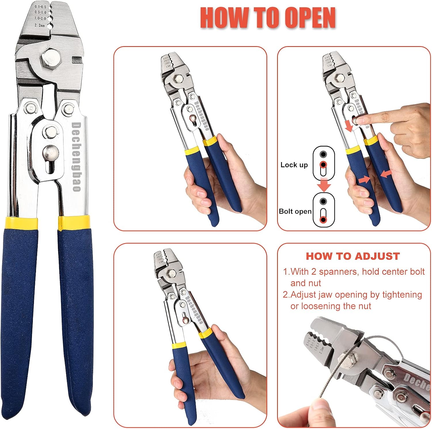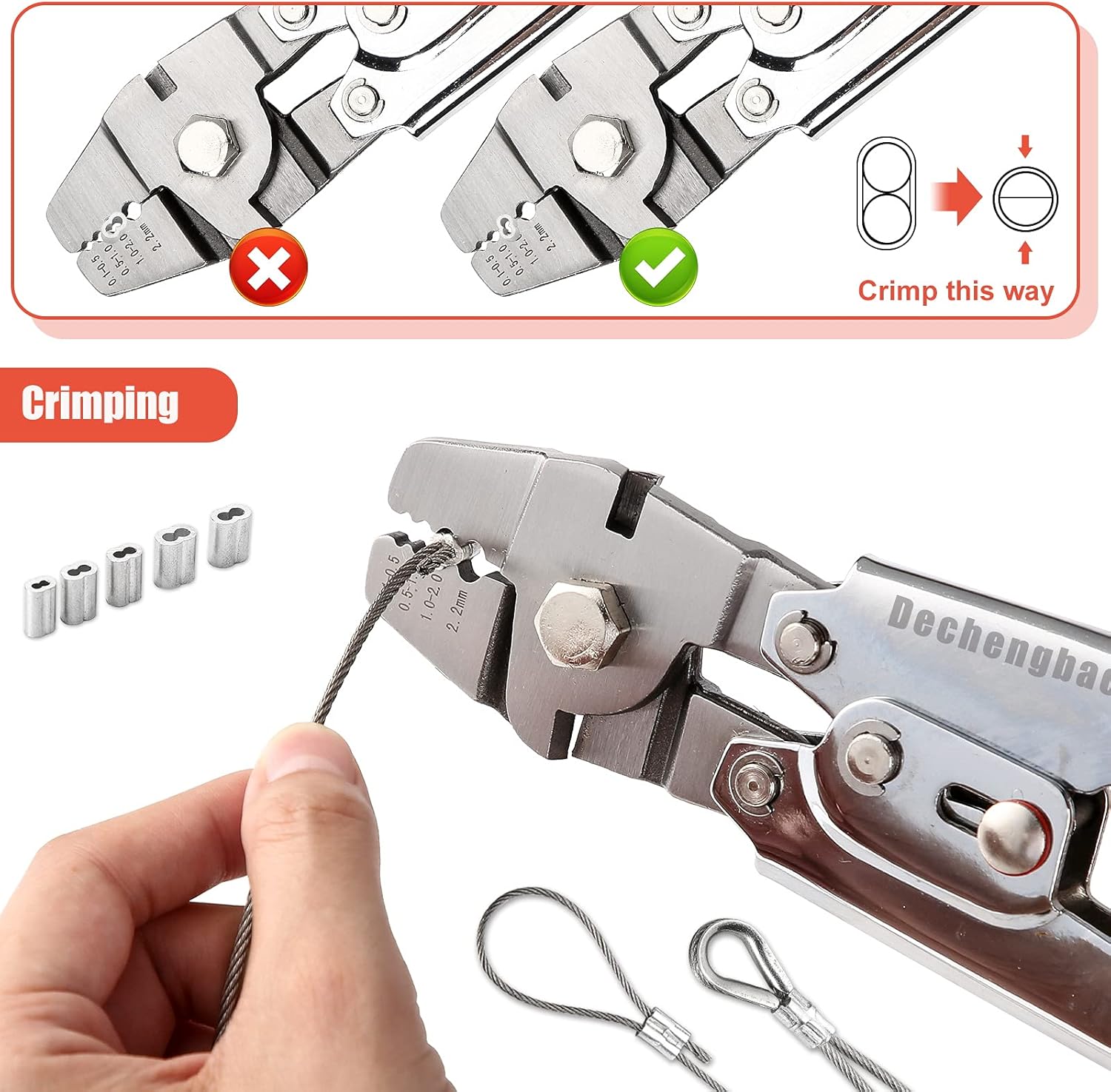 Wire Rope Crimping Swaging Tool, Cable Crimps up to 2.2mm, Stainless Steel Wire Rope Crimping Tool,Wire Crimping Tool, for Aluminum Oval Sleeves, Crimp Ferrules, Crimping Loop Sleeve