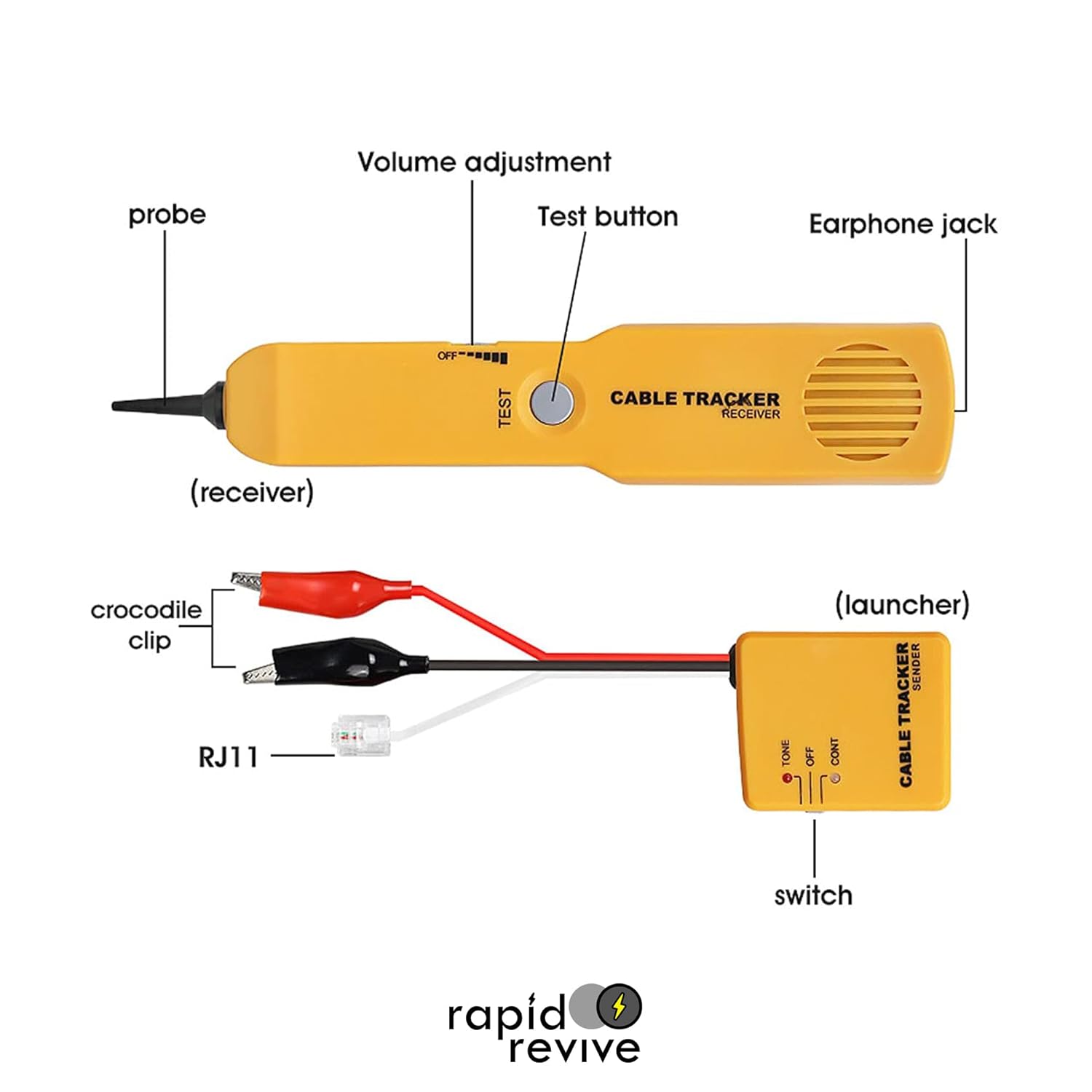 Wire Tracer Cable Finder Tone Generator High Accuracy Inductive Amplifier LAN Cable Tester Kit RJ11 Adjustable Volume Sensitivity – Telephone Line Finder Network Cable Collation