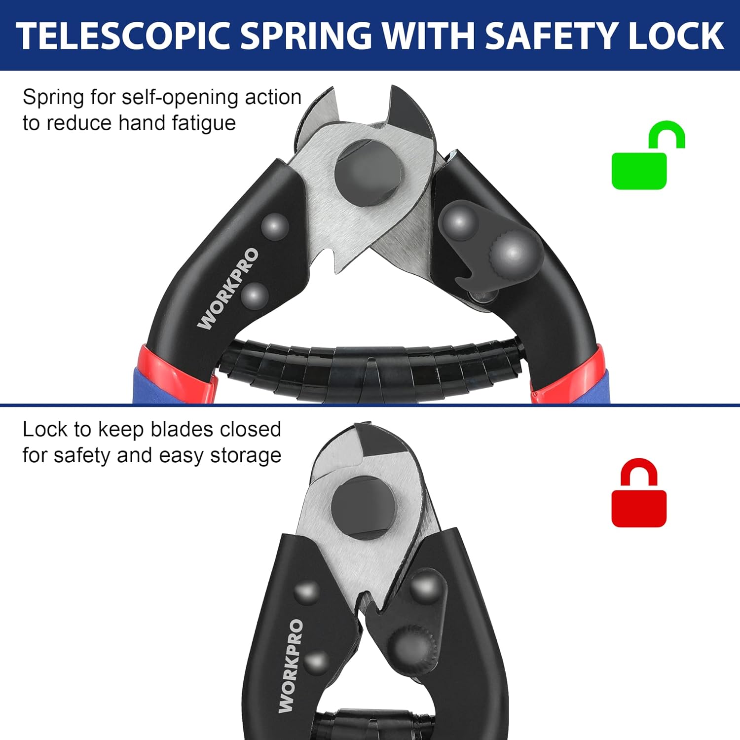 WORKPRO Wire Rope Cutter 190 mm, Wire Rope Scissors, Cr-V Steel Wire Cutters, Cable Cutter Tool for Wire Rope, Stainless Steel Rope and Bicycle Brake Lever Cable Repair